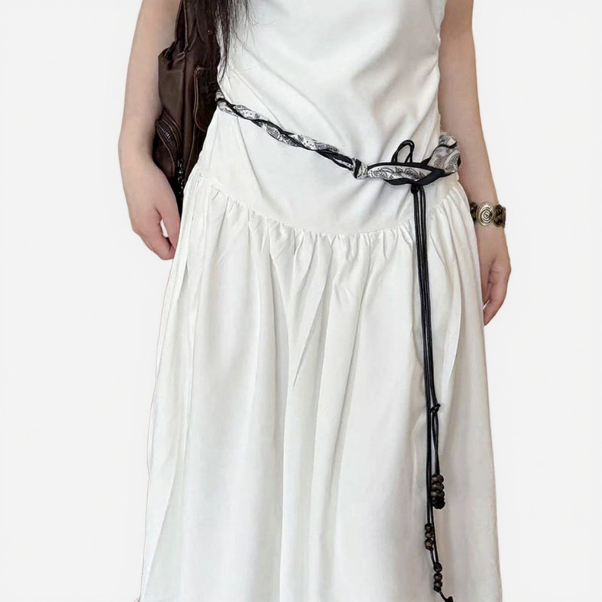 Anna-Kaci Women's Slim Rope Belt with Wood Bead Tassel Ends and Adjustable Knot Design 51in
