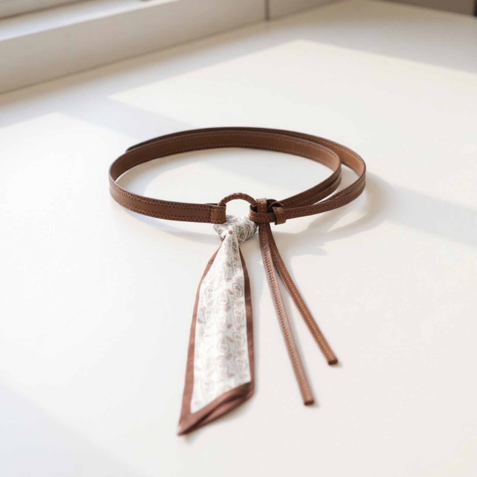 The Anna-Kaci Women's Faux Leather Waist Belt with Printed Scarf Accent and Adjustable Knot Design adds a sophisticated twist to modern accessorizing. Crafted from smooth faux leather, this belt features a unique silk-style scarf tie that drapes elegantly for a touch of luxury. The adjustable knot closure allows for versatile styling, whether cinched at the waist or loosely tied for a relaxed look. Perfect for pairing with dresses, tunics, or high-waisted pants, this accessory brings effortless refinement to any outfit.