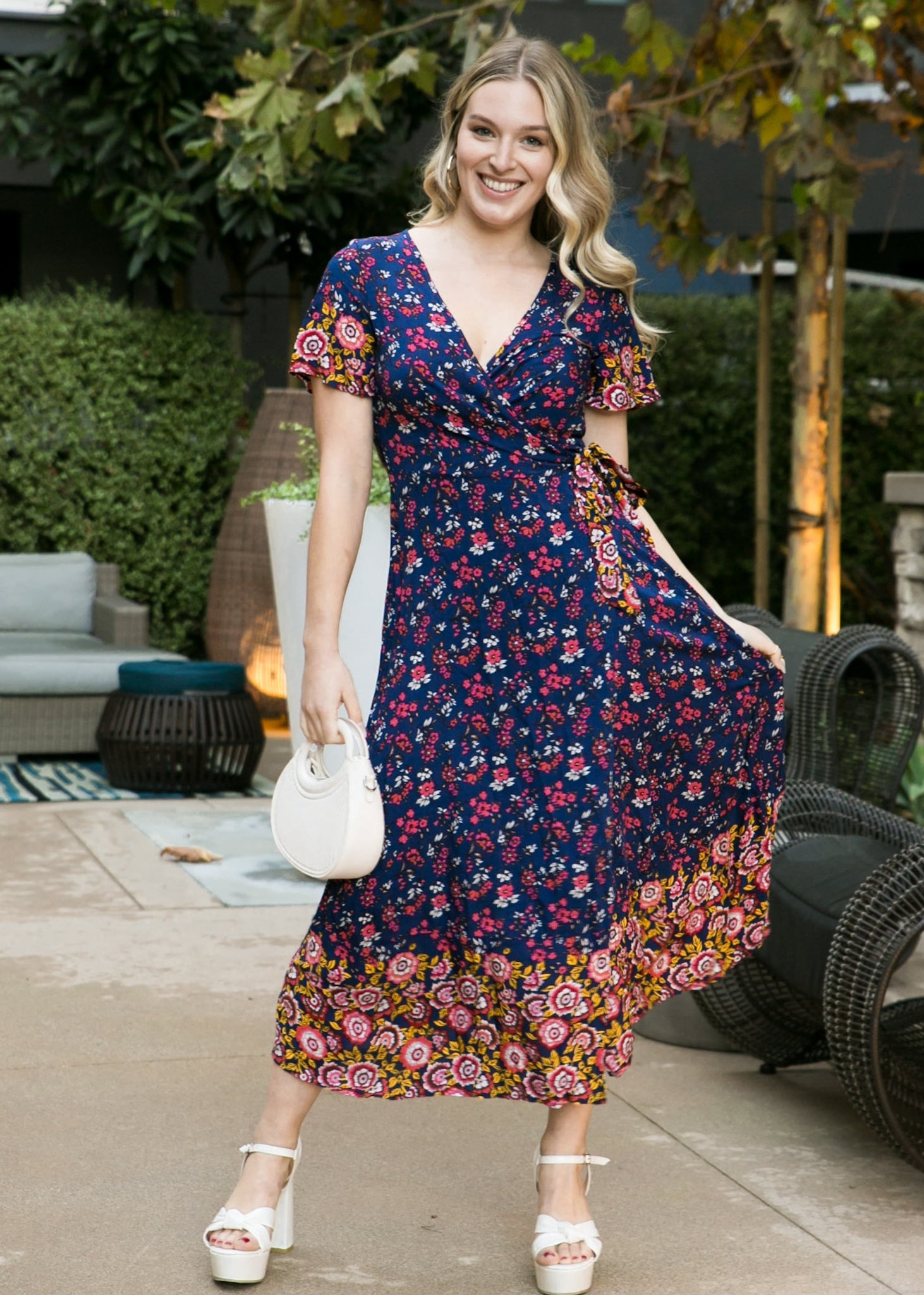 Summer is here and these maxi dresses are a must-have for comfortable easy everyday outfits! This split thigh floral print dress is soft and lightweight making it ideal for the spring and summer. This bohemian patterned maxi ruffle dress is perfect to dress up or down depending on your day. Easily pair this dress with your favorite heels, a matching belt, and a summer clutch.