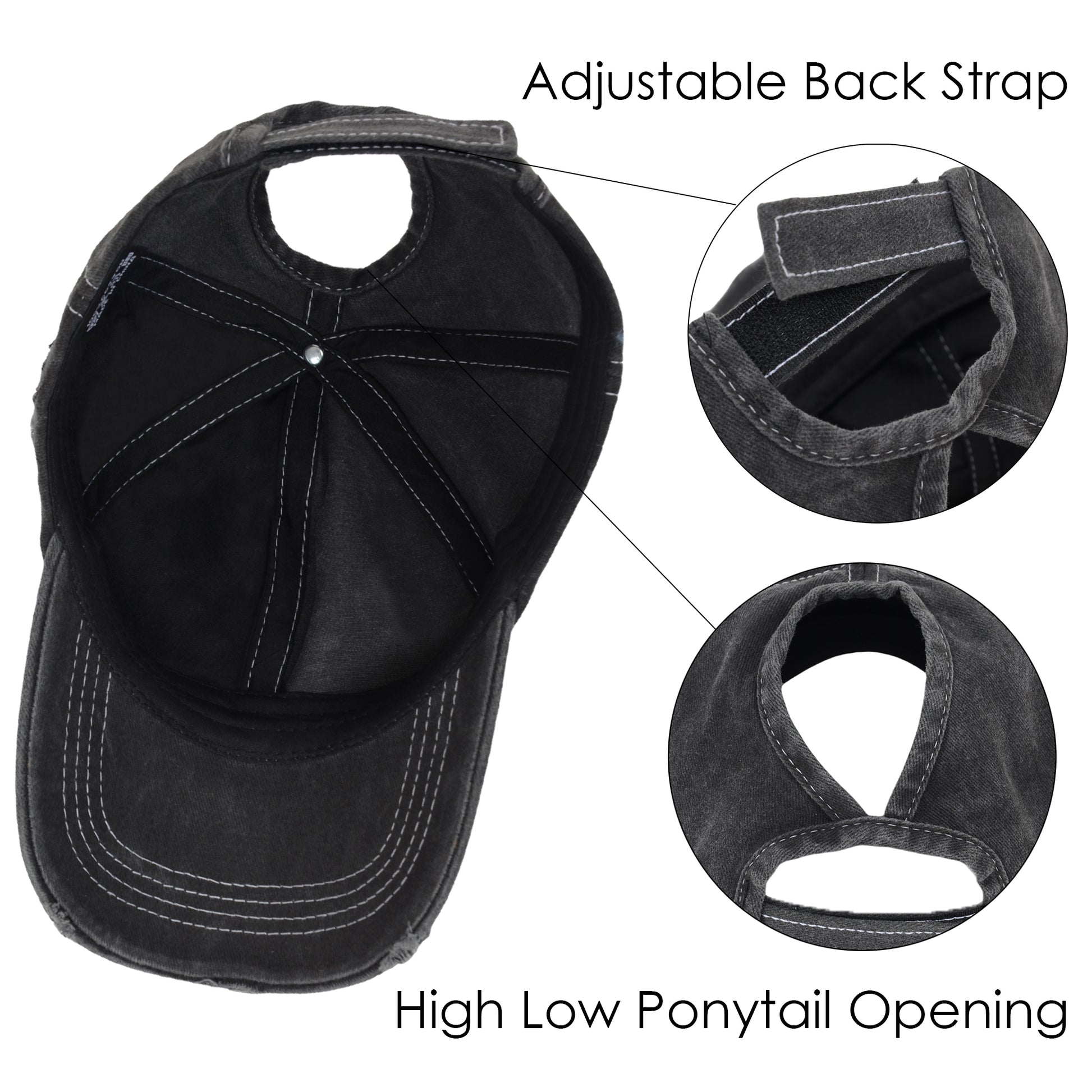 Anna-Kaci Women's Baseball Cap Glitter Star Distressed Ponytail Hat High Messy Bun Ponycap Trucker Dad Hat