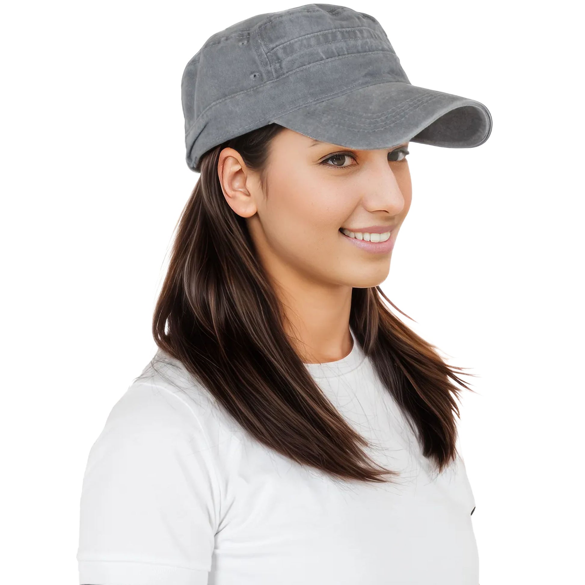 This cadet cap combines rugged charm with comfort, perfect for casual and outdoor wear. It features a vintage wash for a worn-in look, adding character to any outfit. The adjustable back strap ensures a secure and comfortable fit, accommodating various head sizes. Ideal for adding a stylish edge to your wardrobe, this cap effortlessly pairs with casual ensembles for a laid-back vibe.