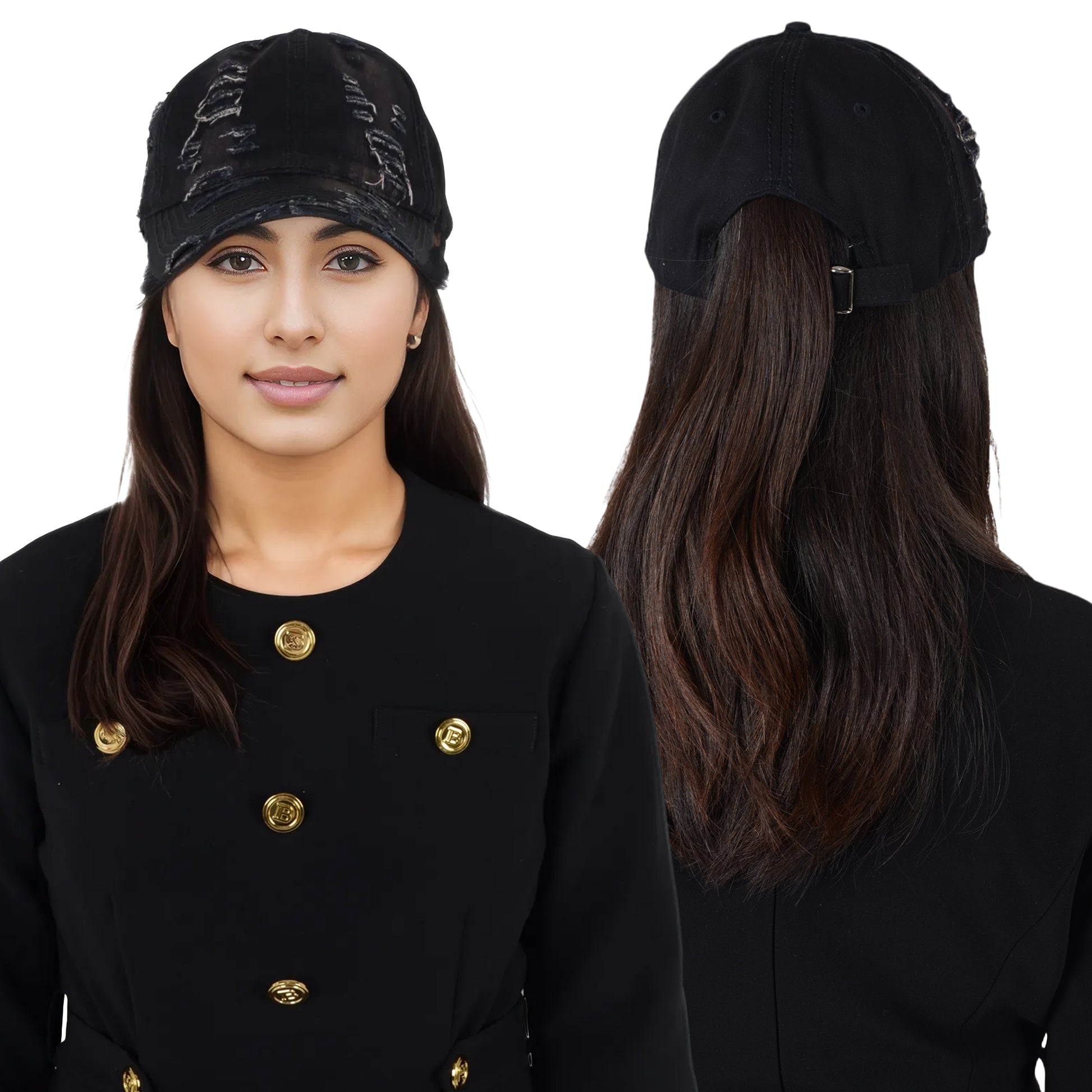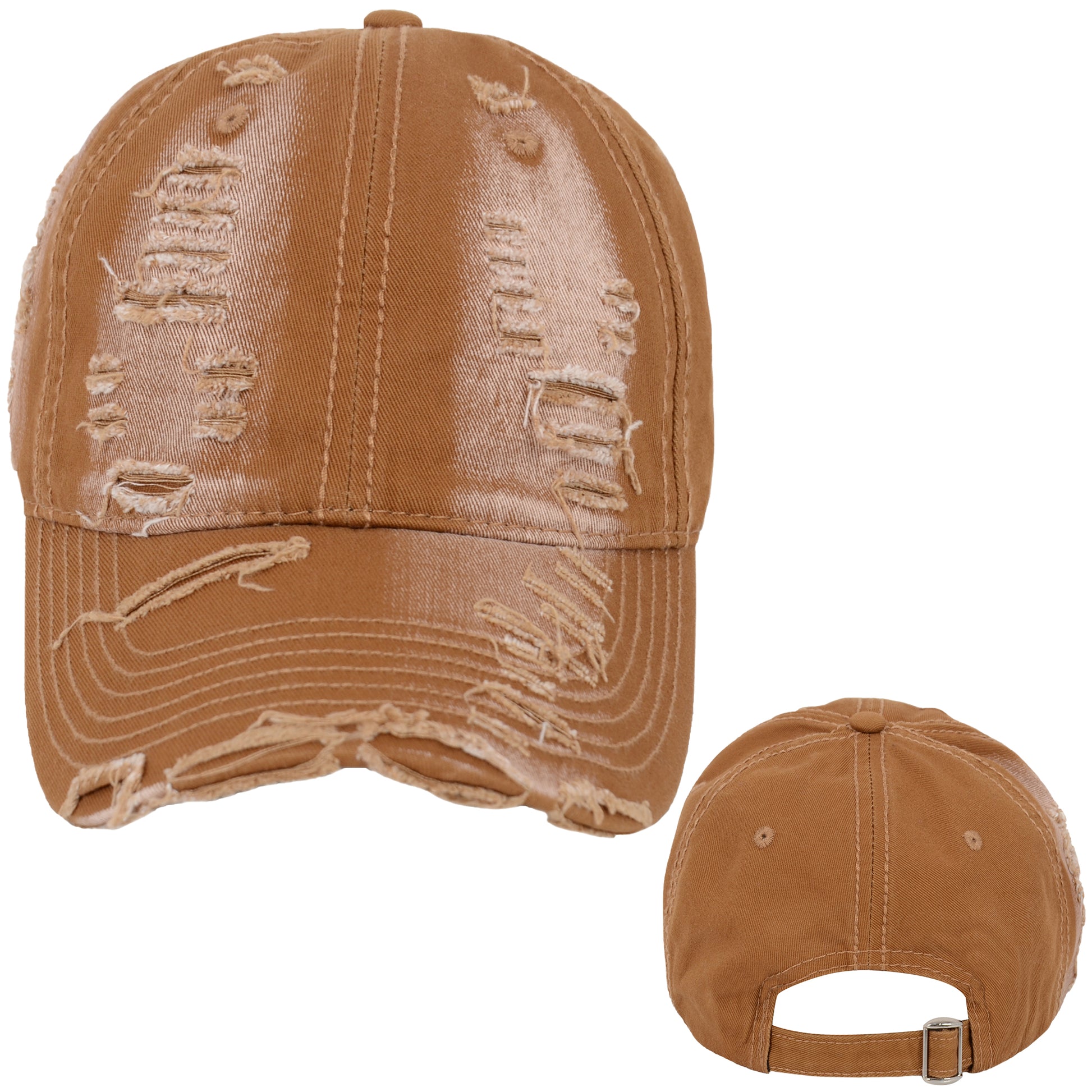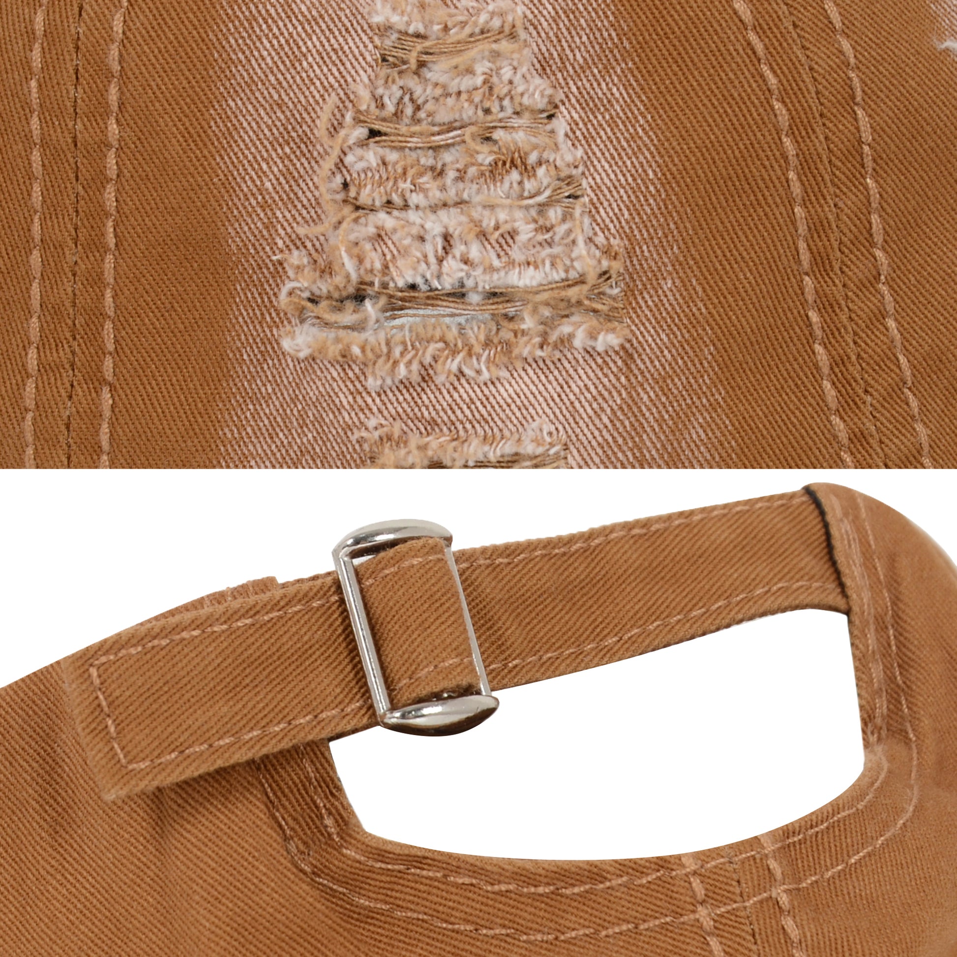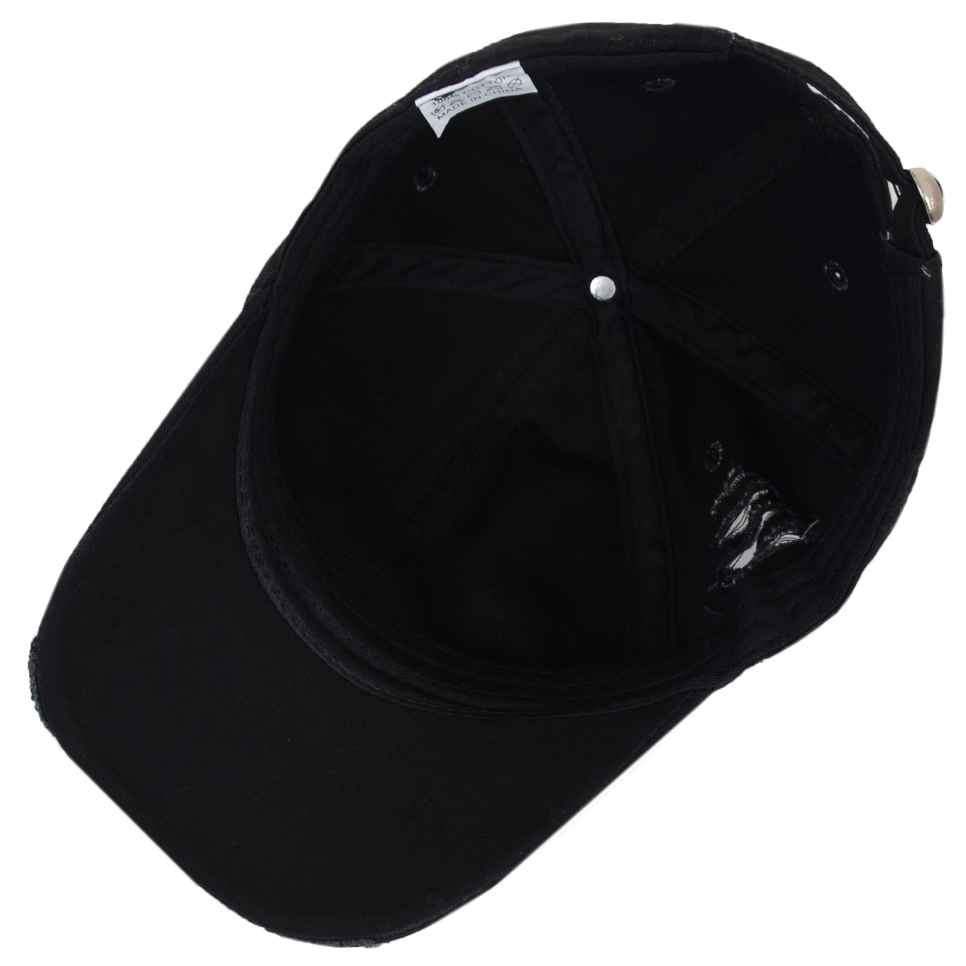 This edgy baseball cap features a distressed design with ripped detailing, adding a bold touch to any casual outfit. Made from durable, comfy cotton fabric, this cap offers both style and comfort, with an adjustable back strap for a customized fit.