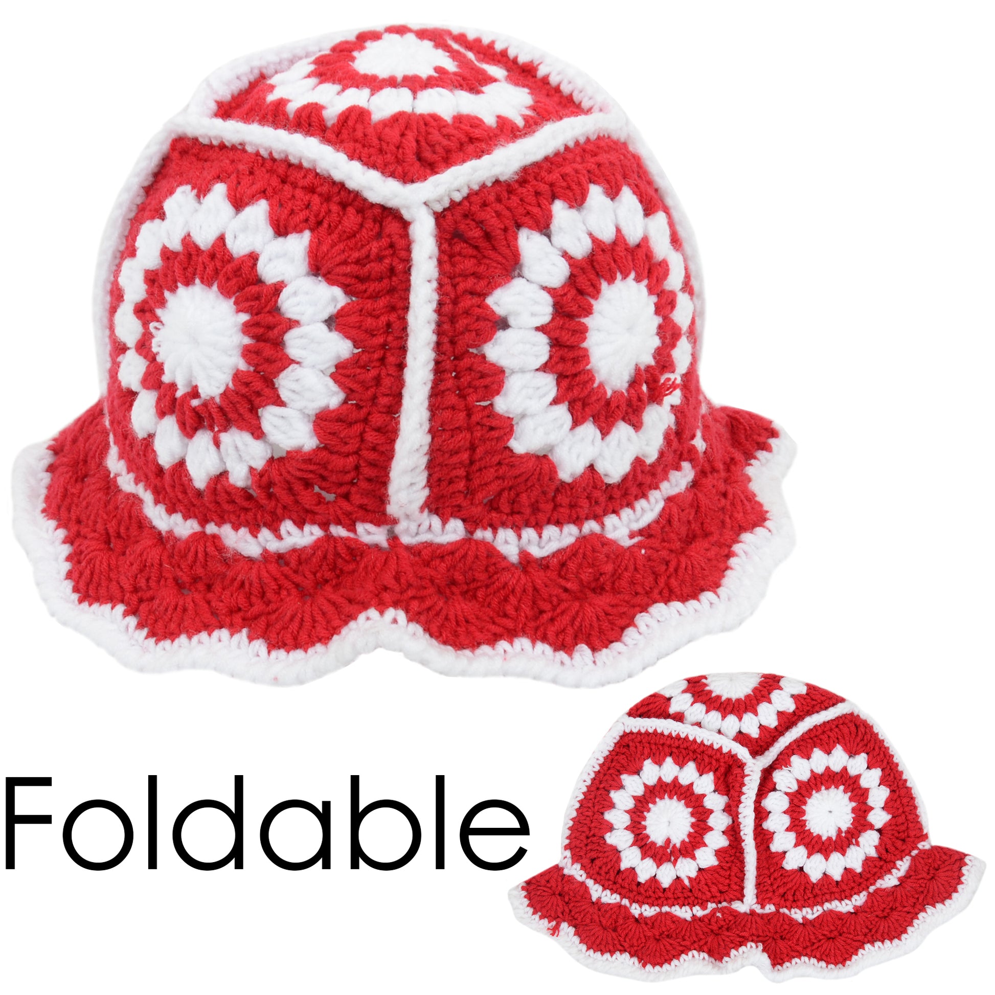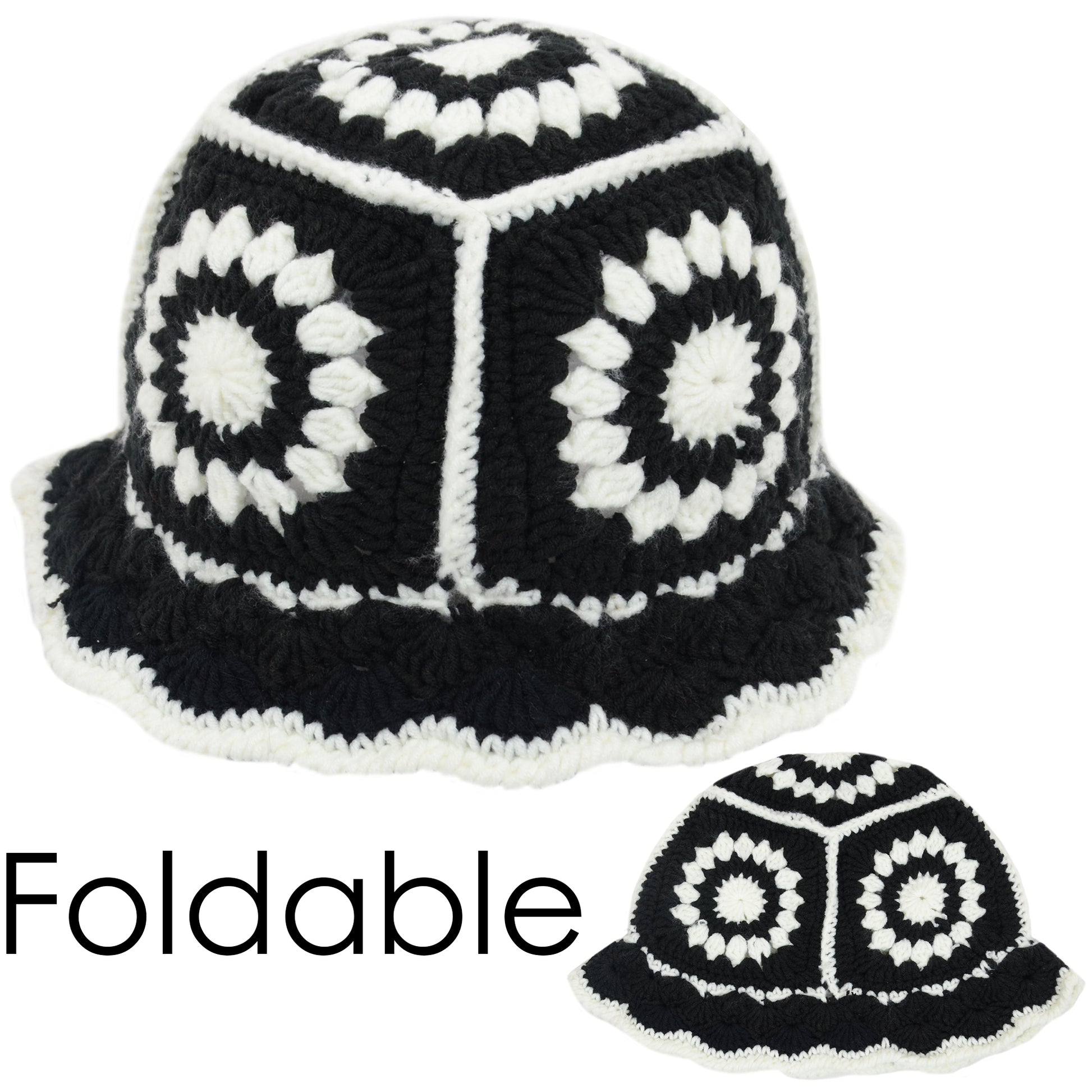 Anna-Kaci Women's Crochet Bucket Hat Retro Sunburst Pattern Knit Handmade Foldable Floppy Beach Hat