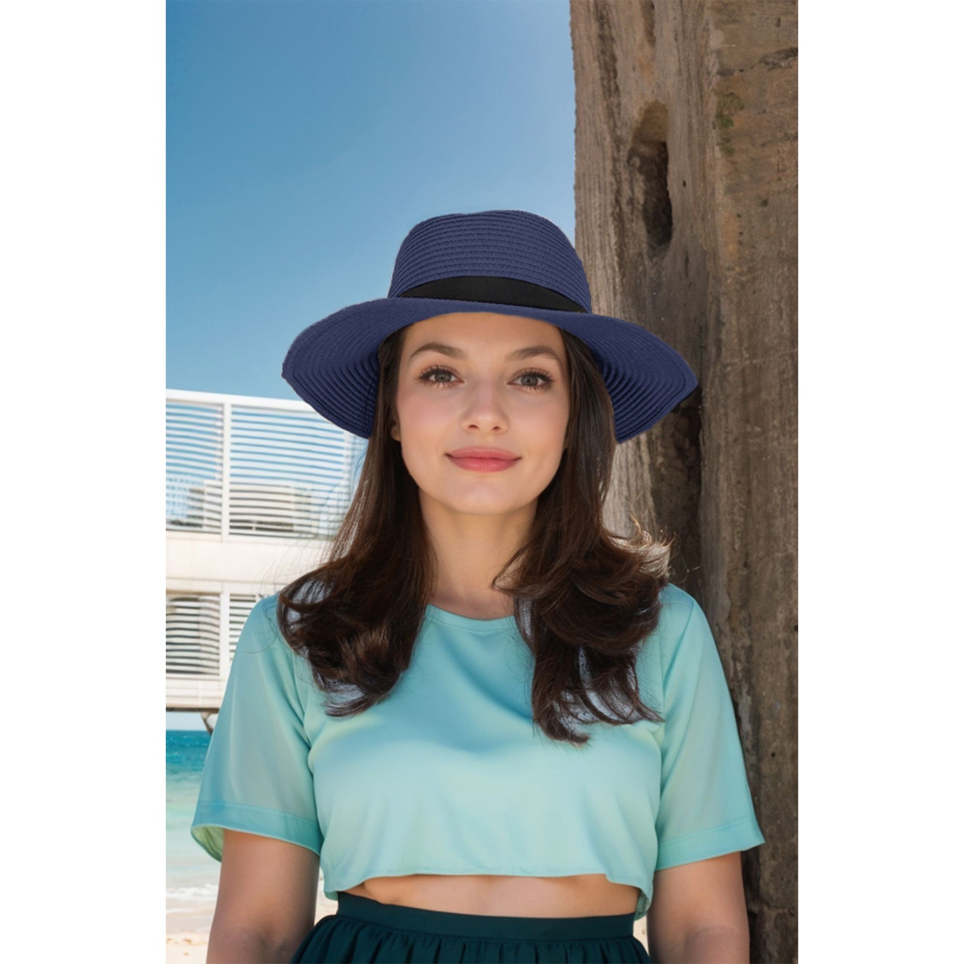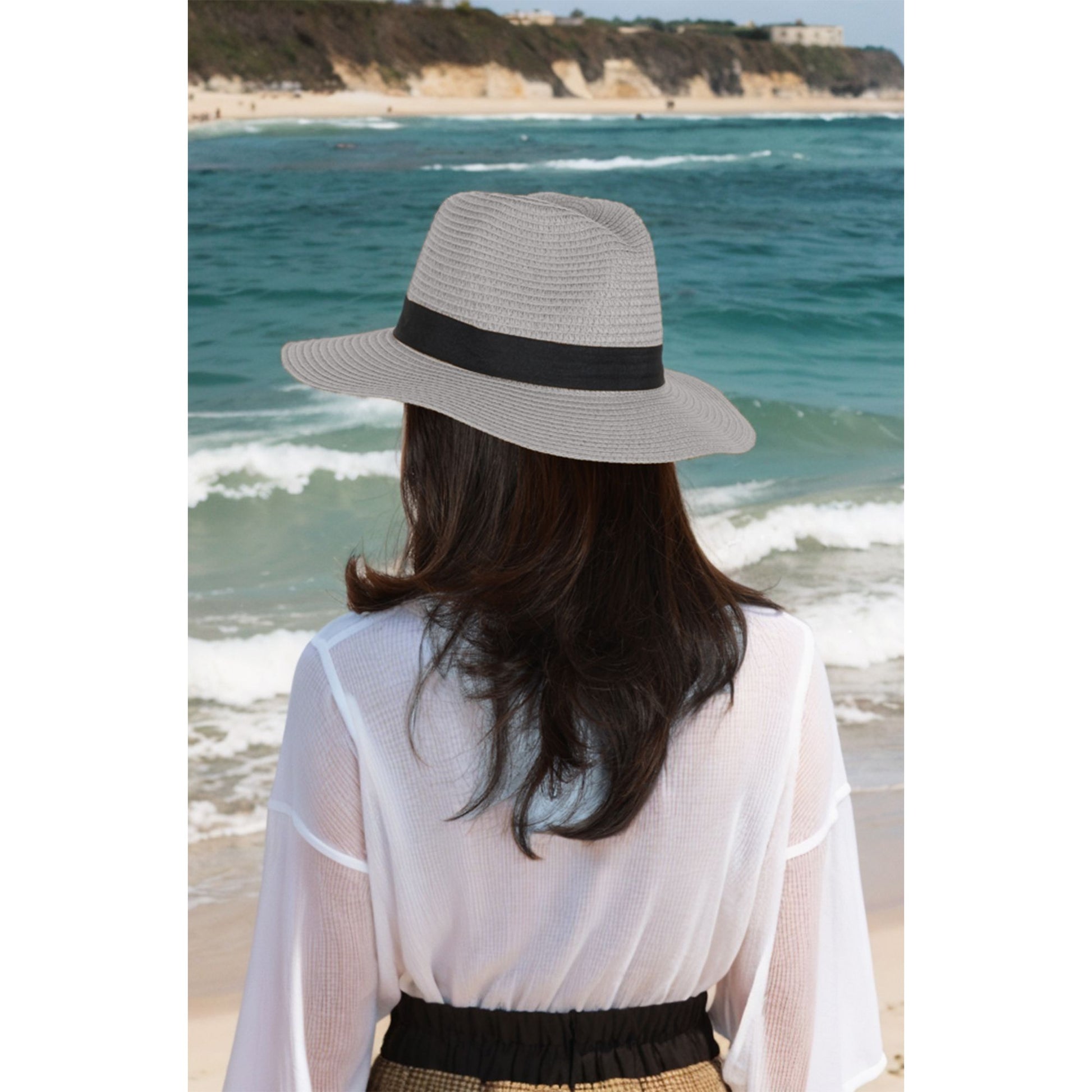 This wide-brim straw fedora offers a classic and stylish look while providing excellent sun protection. Featuring a structured design with a black band detail, this lightweight hat ensures breathability and comfort for all-day wear. Its packable and durable construction makes it an ideal choice for vacations, beach outings, and outdoor adventures. Elevate your summer style with this versatile and timeless sun hat.