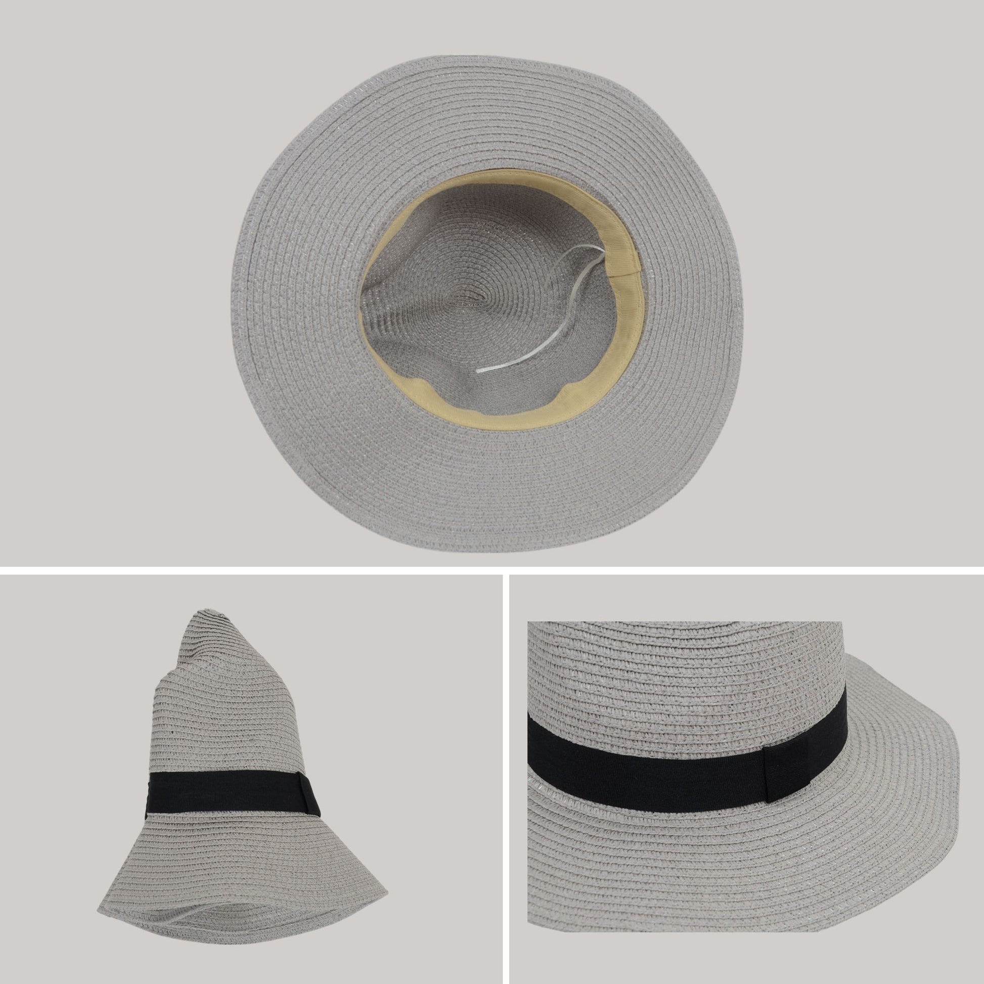 Anna-Kaci Wide Brim Straw Fedora Sun Hat with Black Band Lightweight Packable Summer Panama Hat for UV Protection