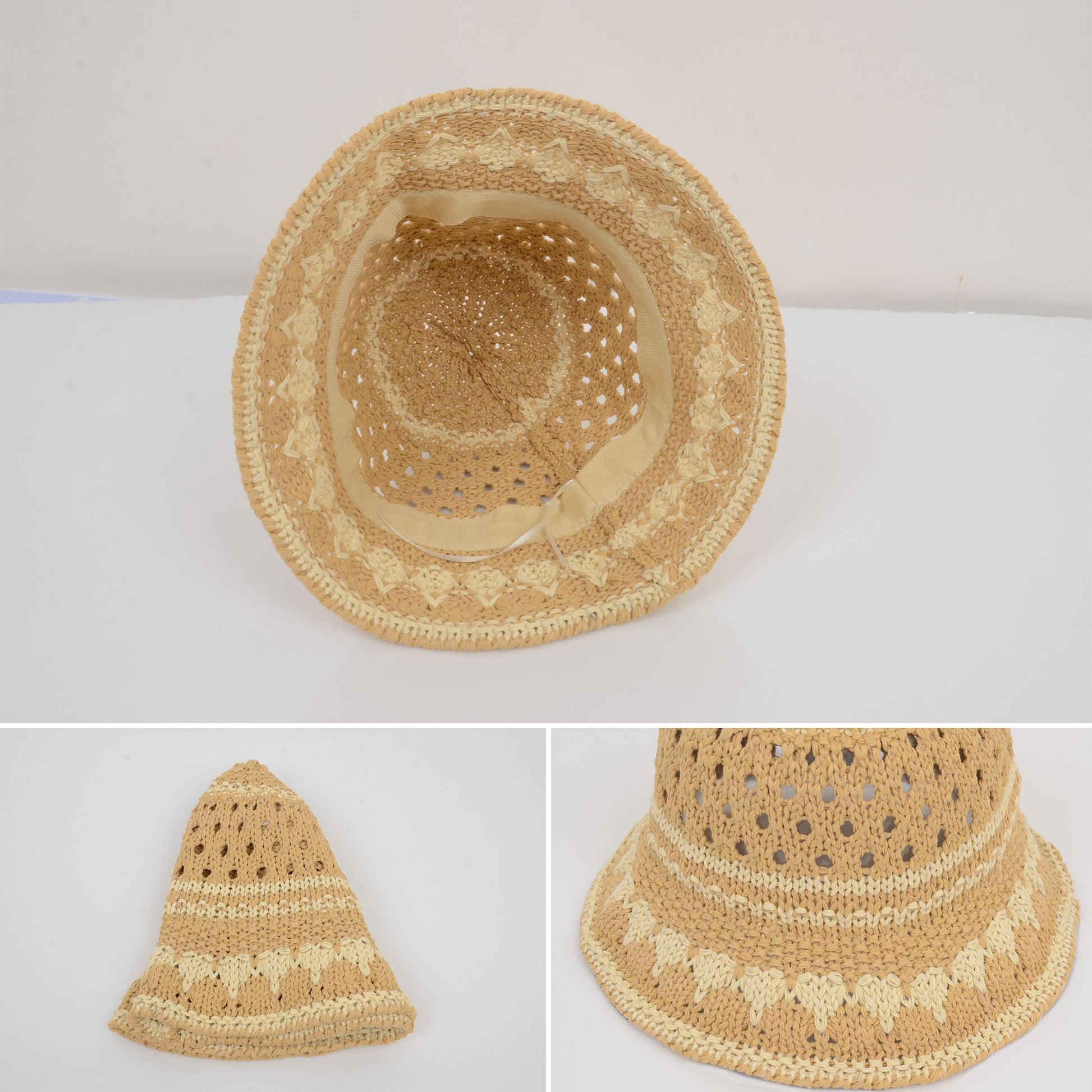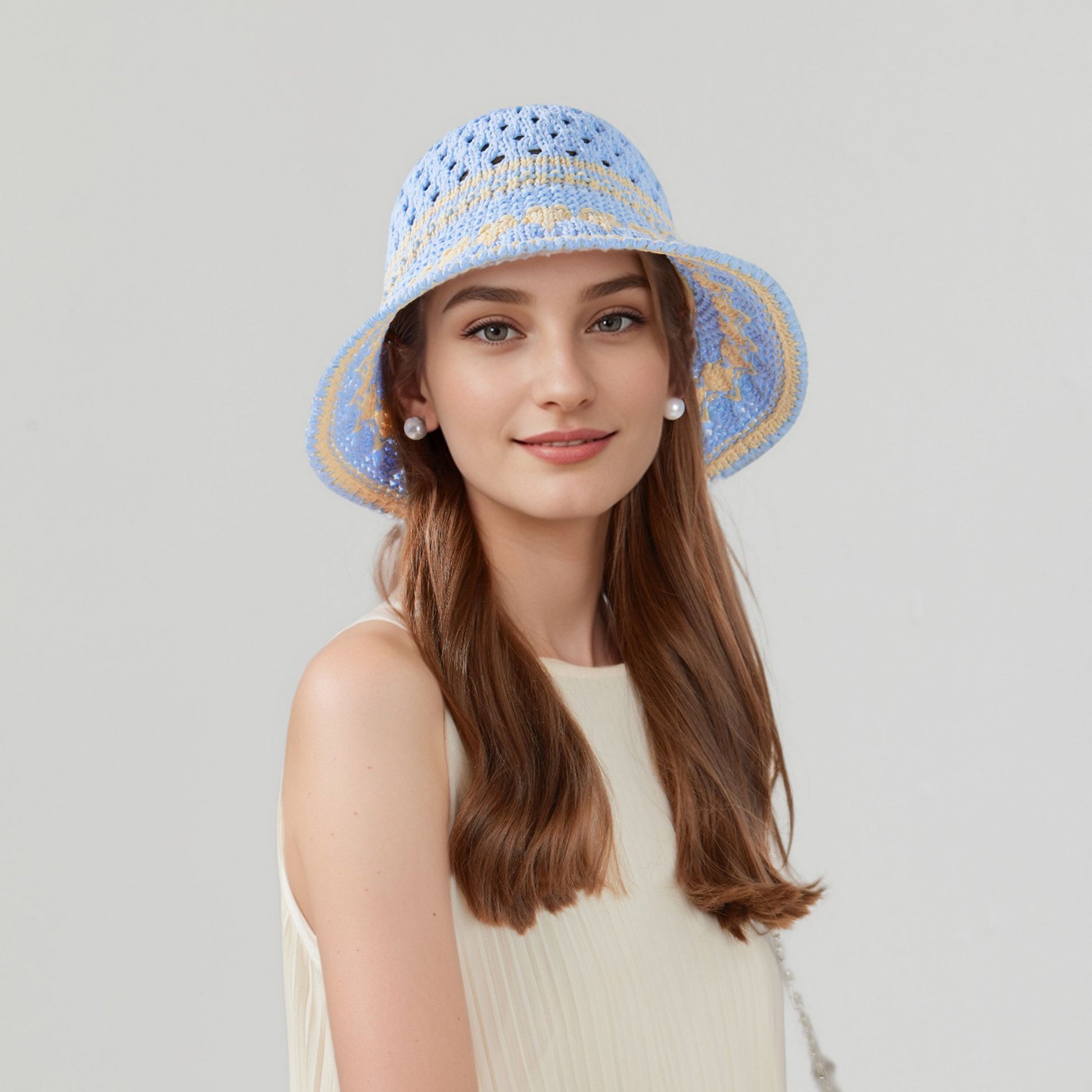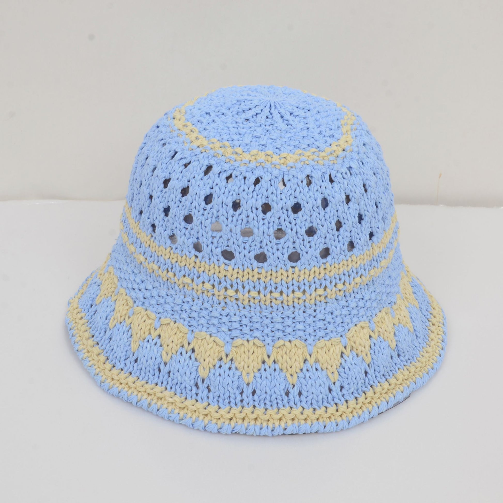 Anna-Kaci Crochet Knit Bucket Hat with Openwork Floral Pattern and Rolled Brim for Lightweight Summer Style