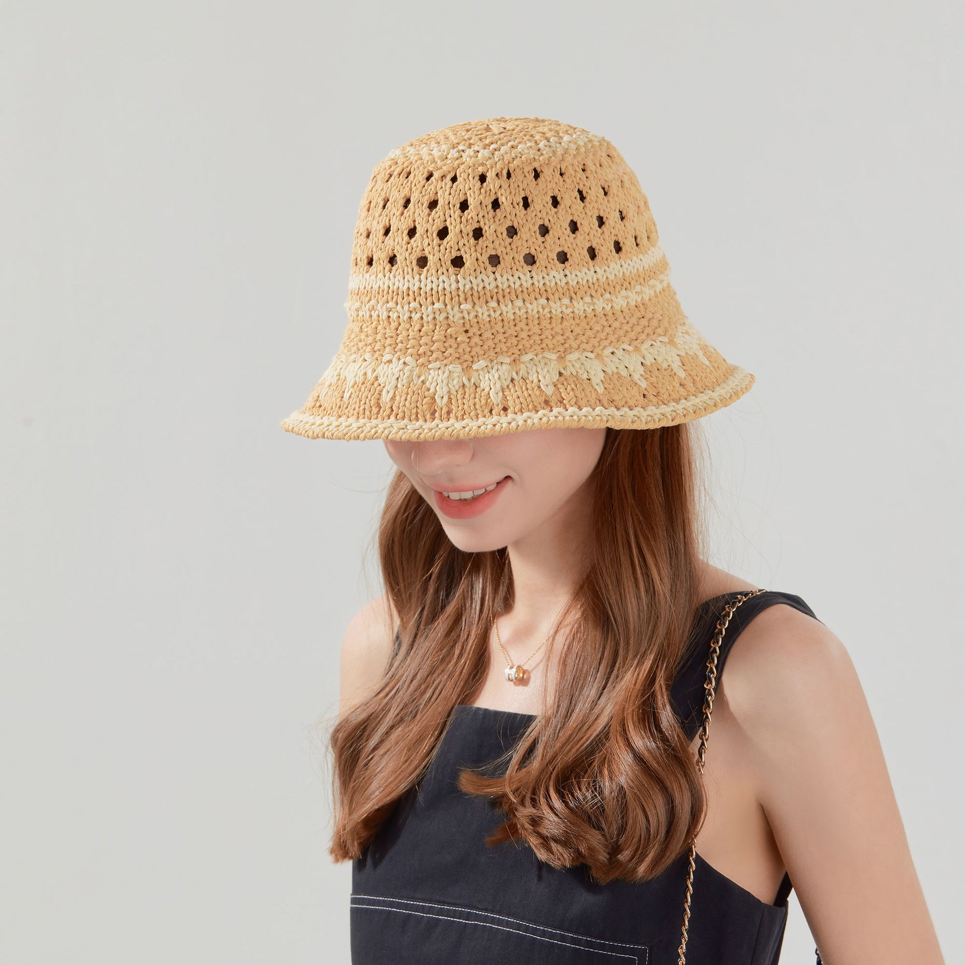 This crochet knit bucket hat is a breezy, stylish staple crafted for sunny days. Featuring intricate open weave patterns and a soft rolled brim, it offers breathable comfort with a touch of bohemian flair. Lightweight and easy to pair with casual looks, it¡¯s perfect for warm weather.