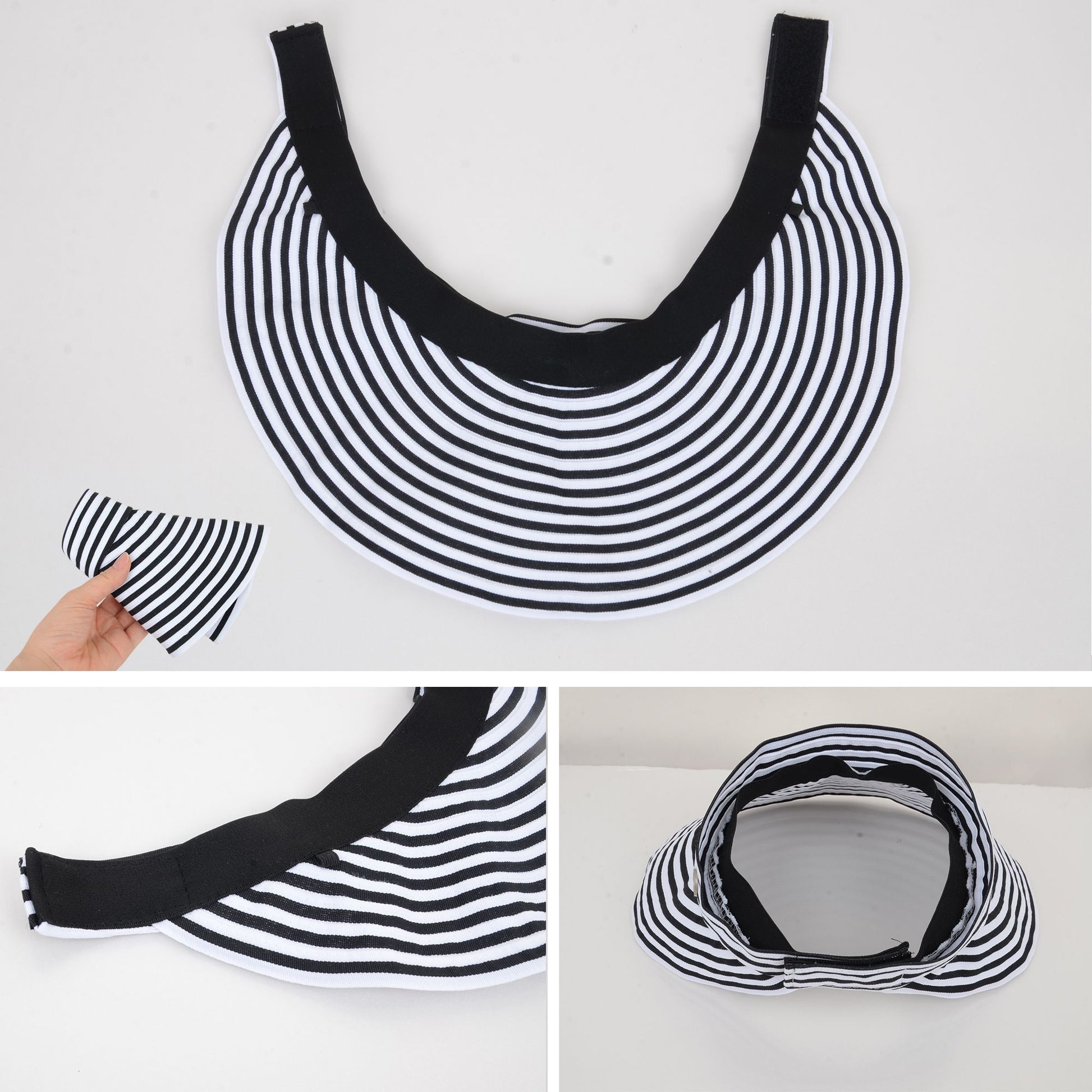 Stay shaded and stylish with this striped wide brim sun visor hat. Designed with a foldable structure and adjustable fit, it provides excellent sun protection while remaining lightweight and breathable. Ideal for beach days, hikes, and vacations.