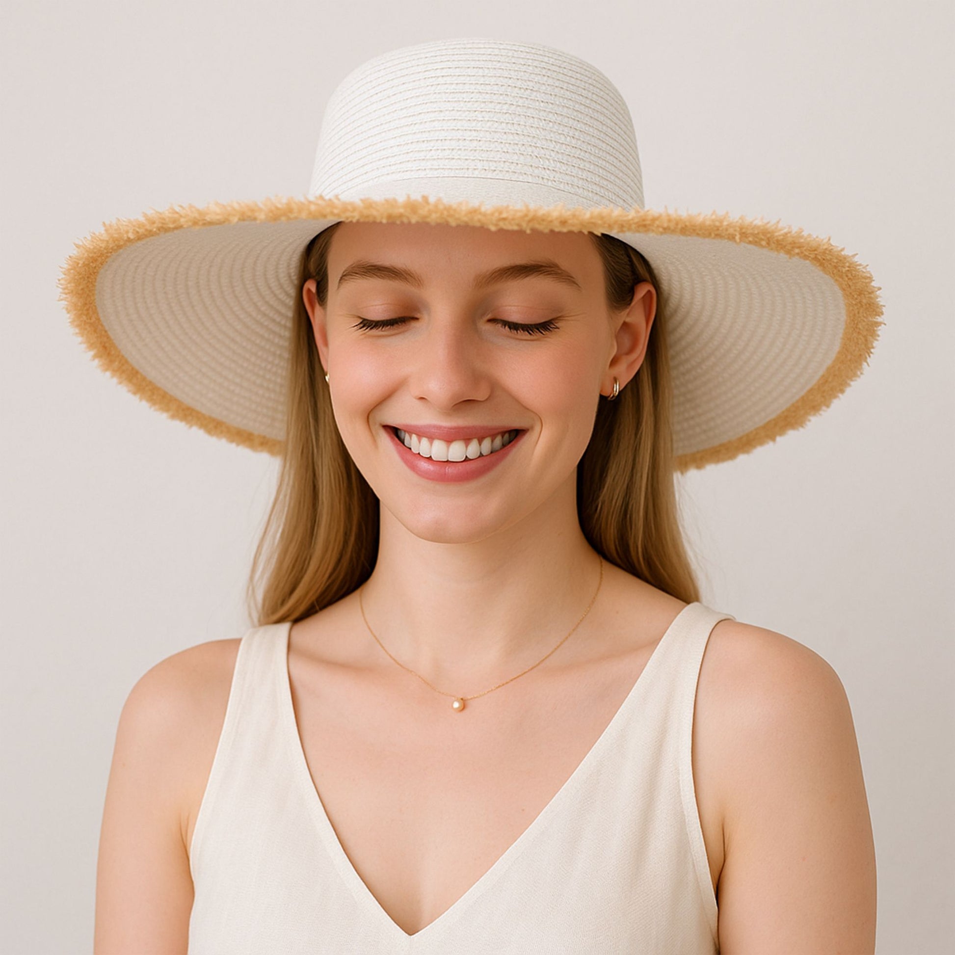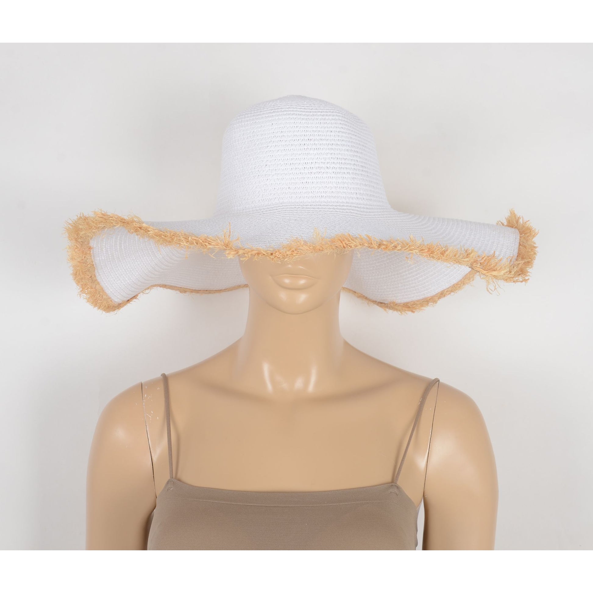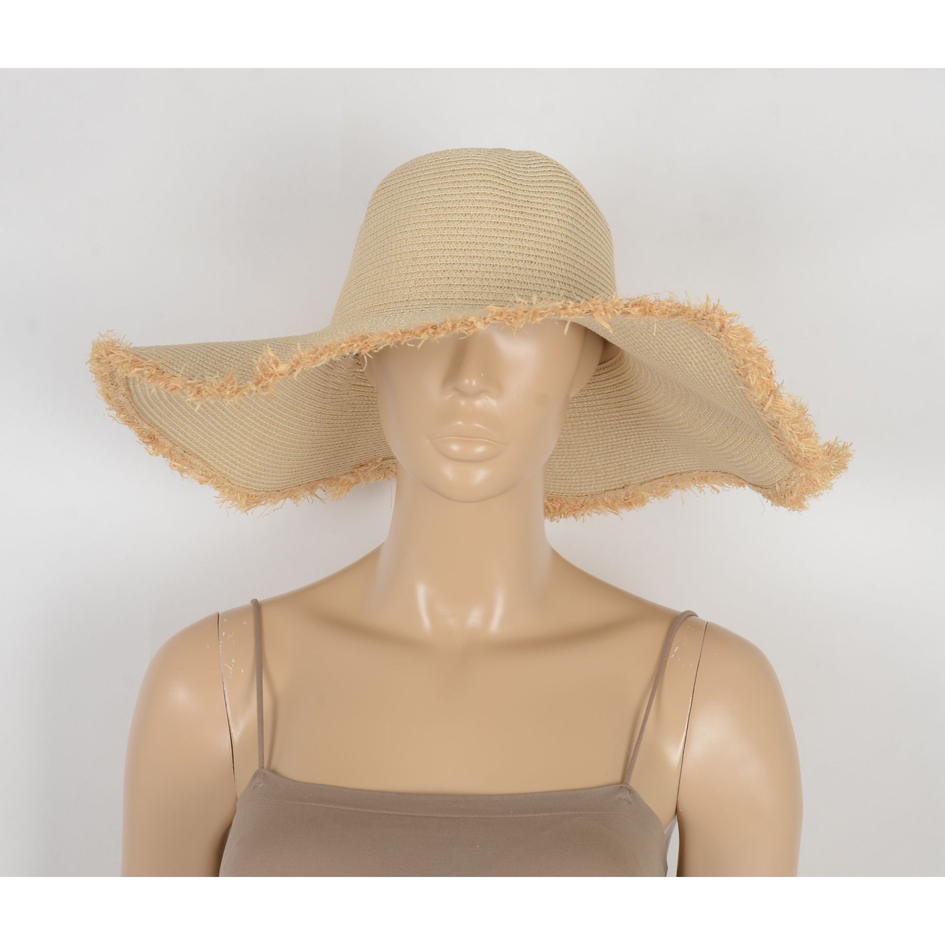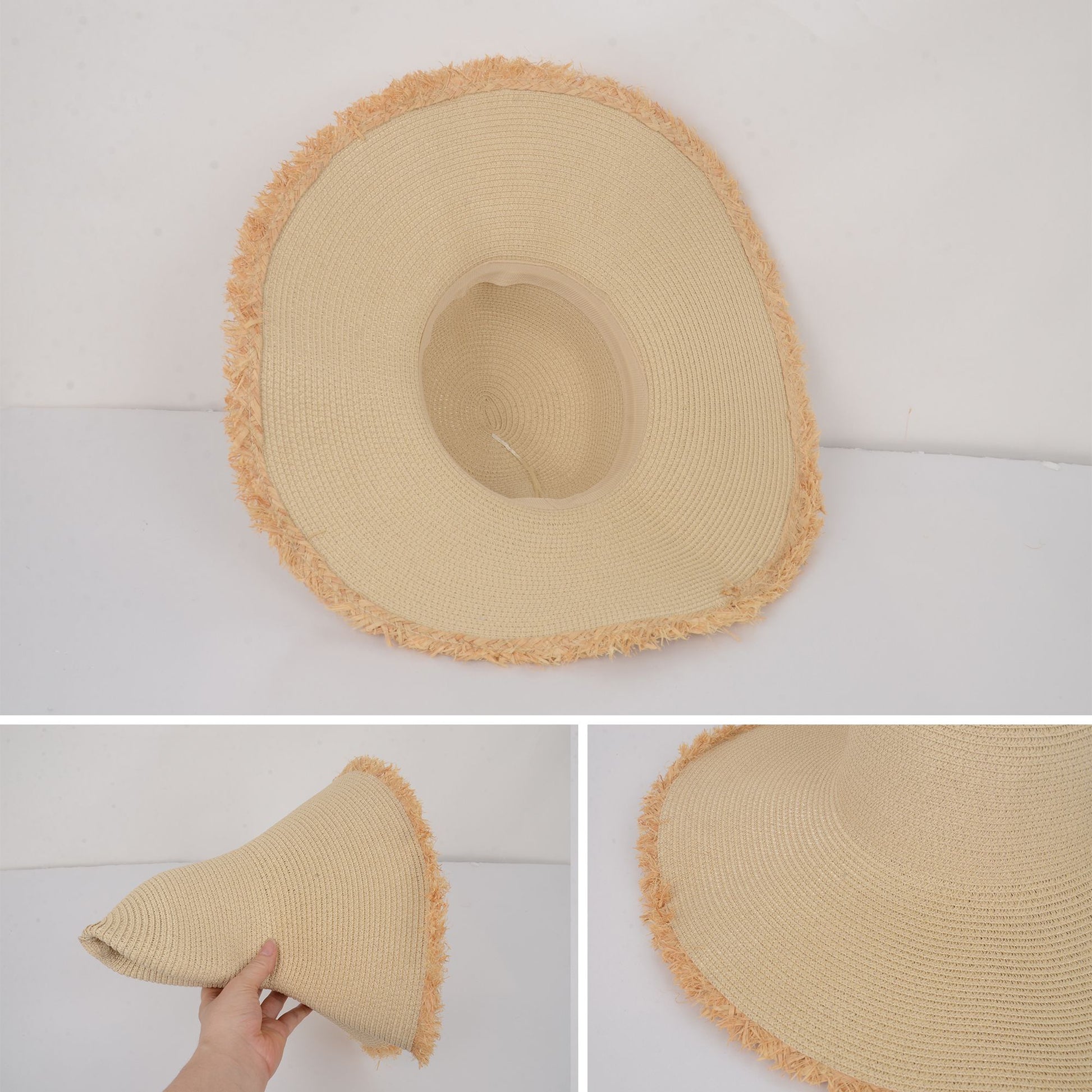 Anna-Kaci Wide Brim Straw Floppy Hat with Frayed Edges Lightweight Sun Protection for Beach Vacation Outdoor Travel Style