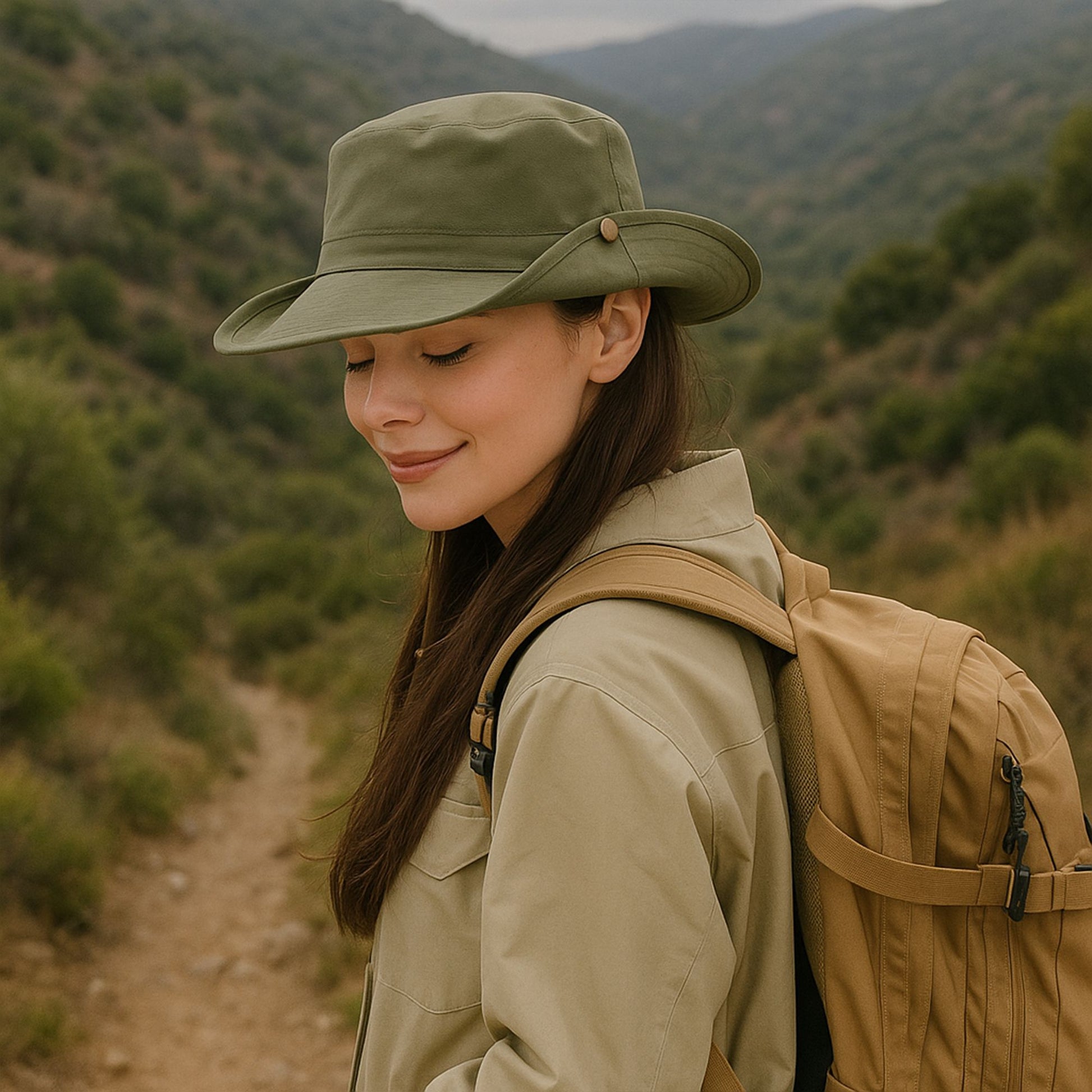 This foldable wide brim bucket hat offers lightweight sun protection with a clean, minimalist design and adjustable chin strap. Its soft, breathable fabric and flexible structure make it ideal for outdoor use, including hiking, travel, beach days, and camping.