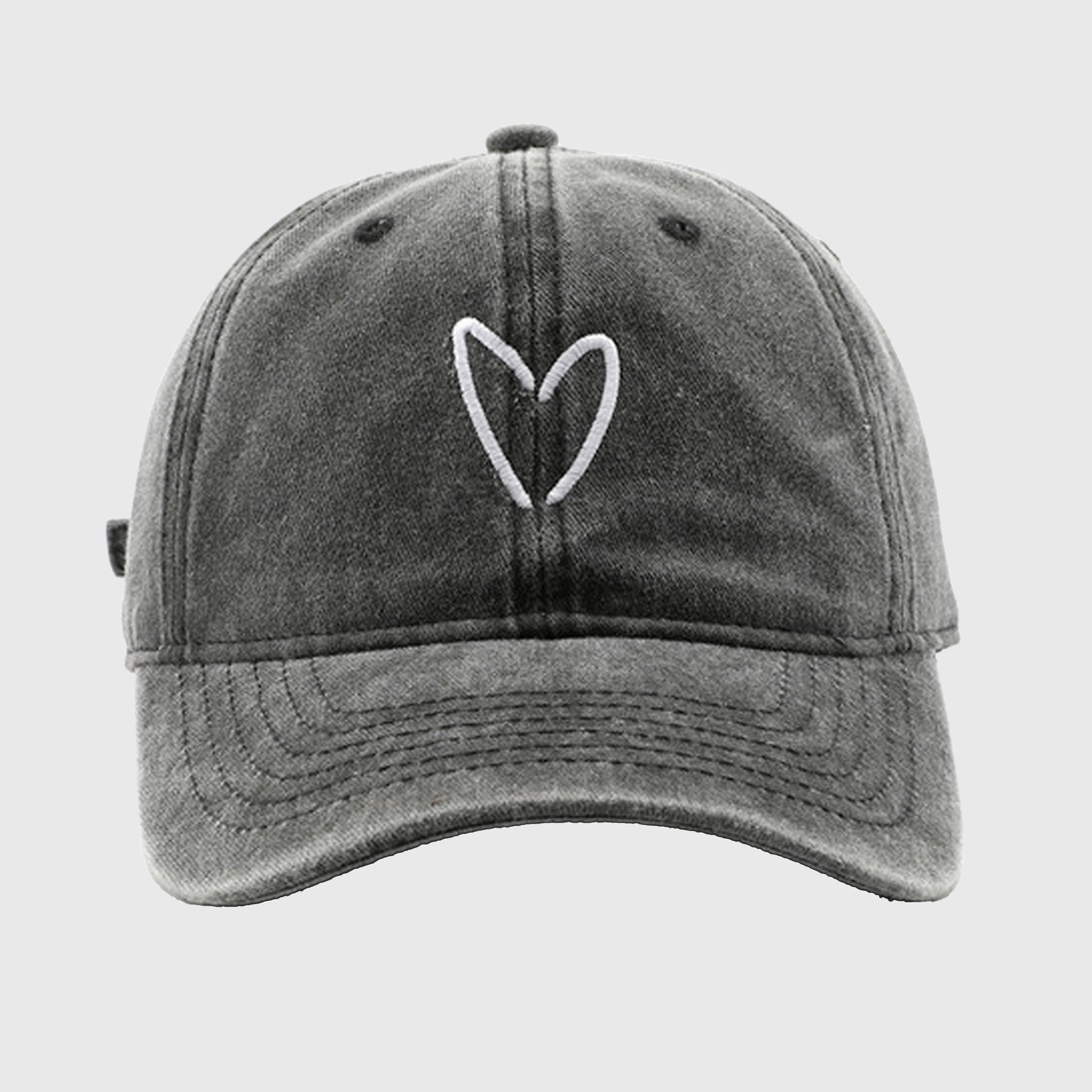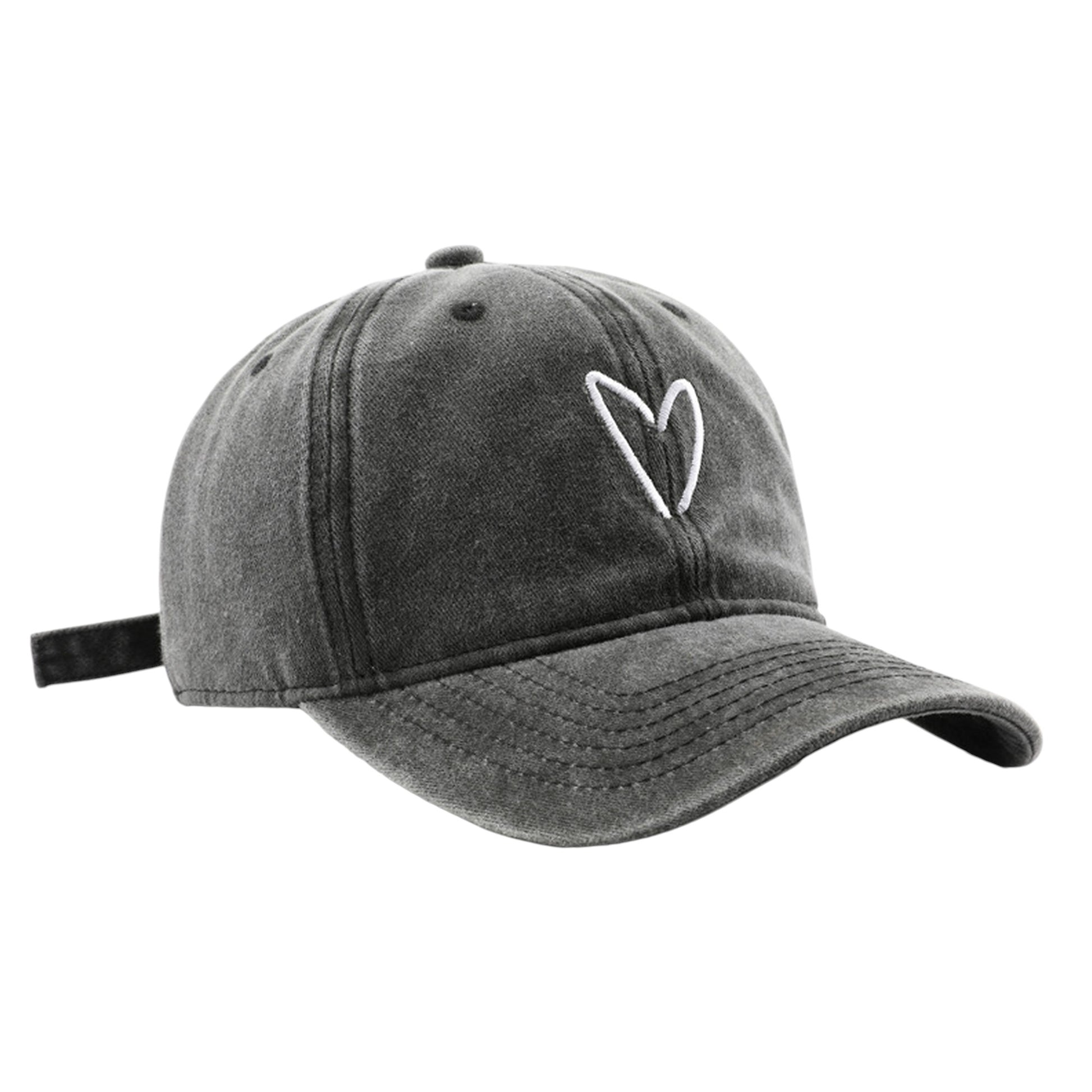 Anna-Kaci Women's Vintage Washed Baseball Cap with Heart Embroidery