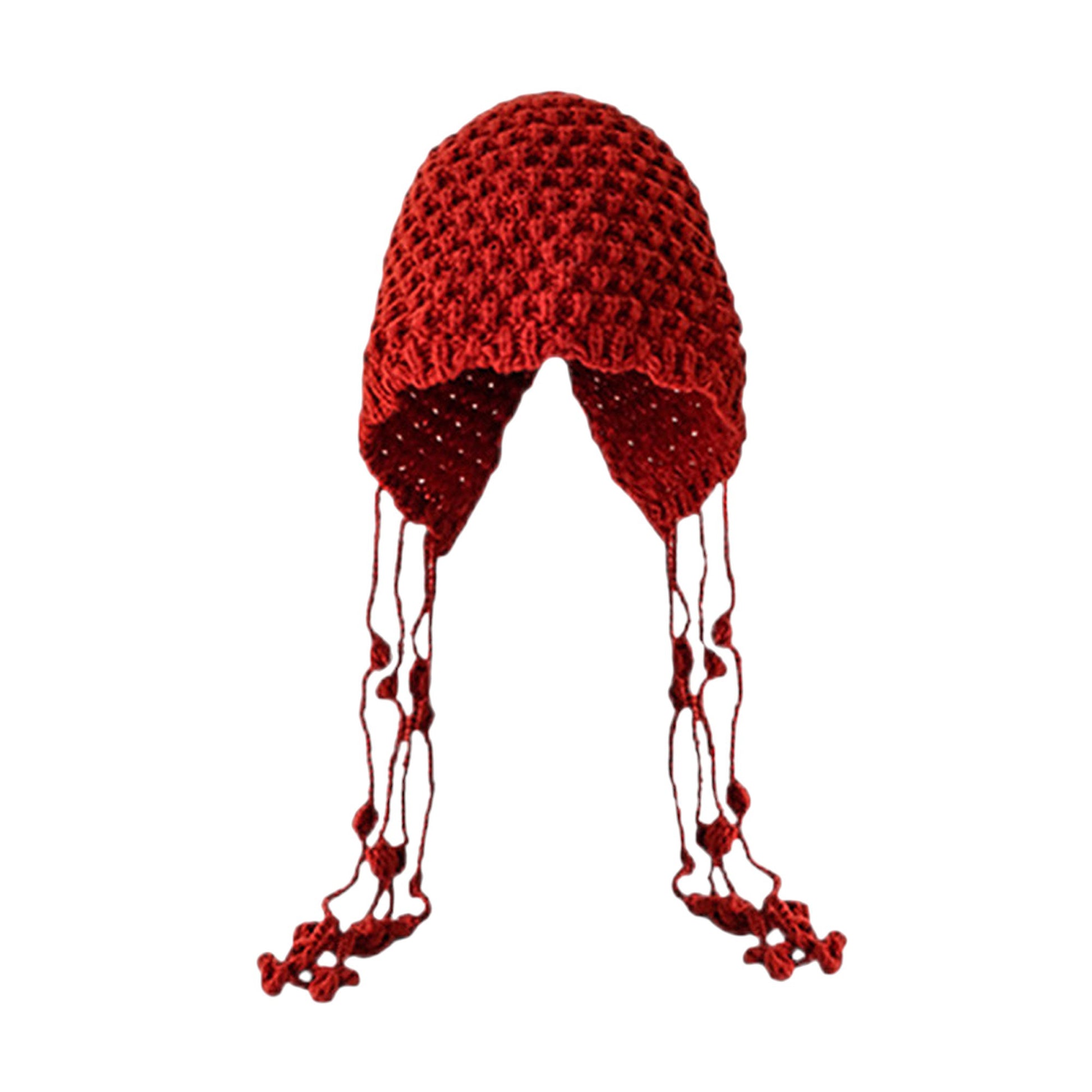 Anna-Kaci Women's Crochet Beanie with Tassel Details