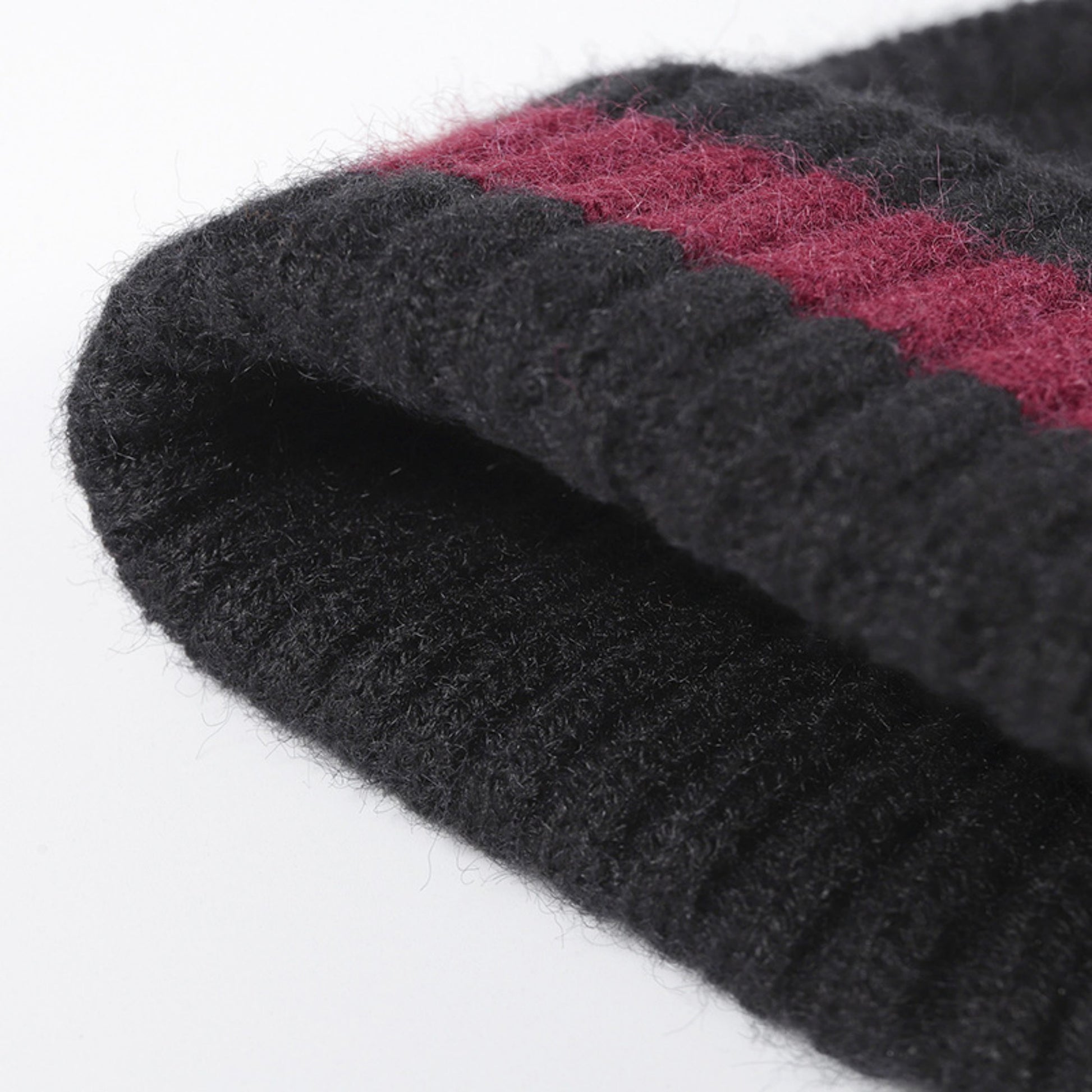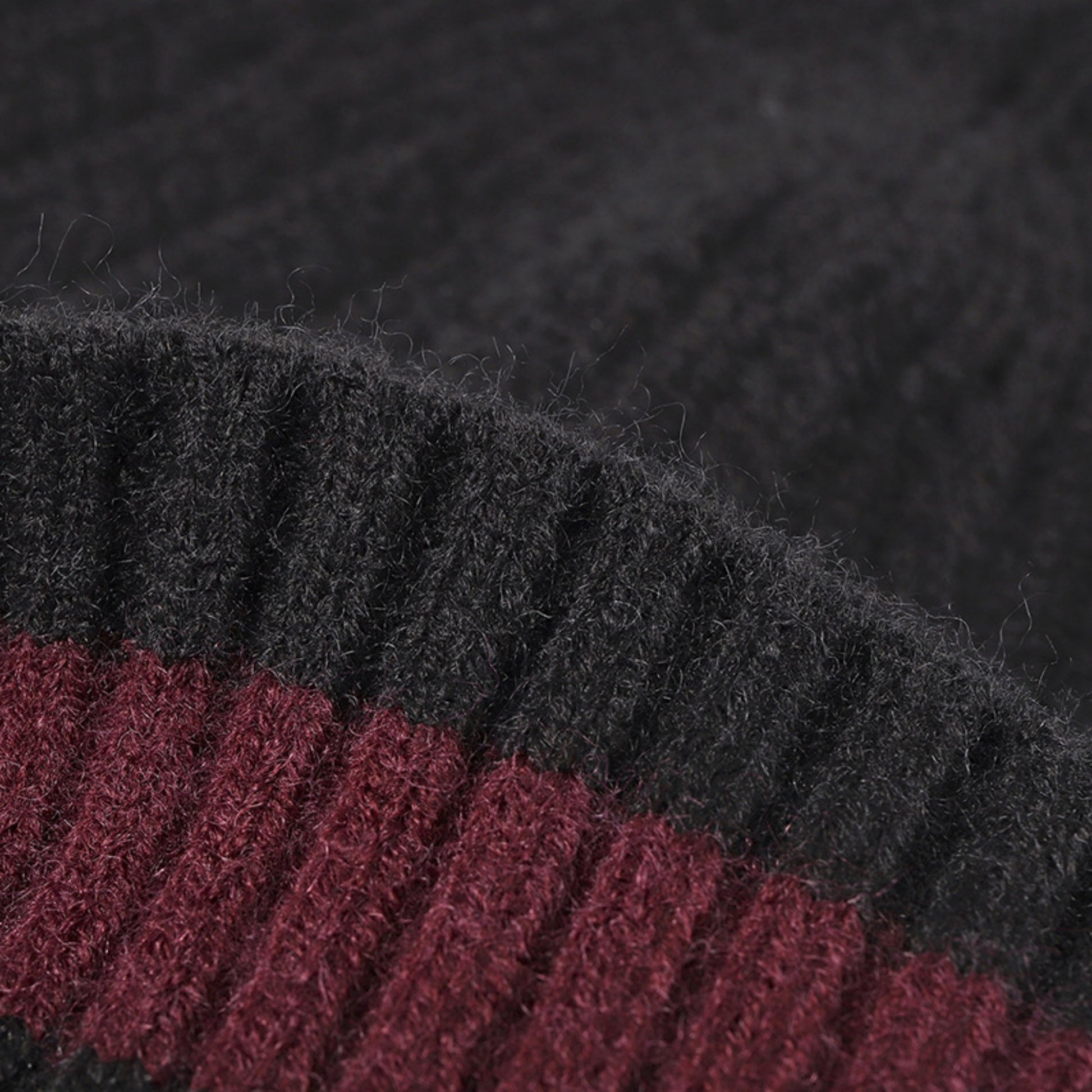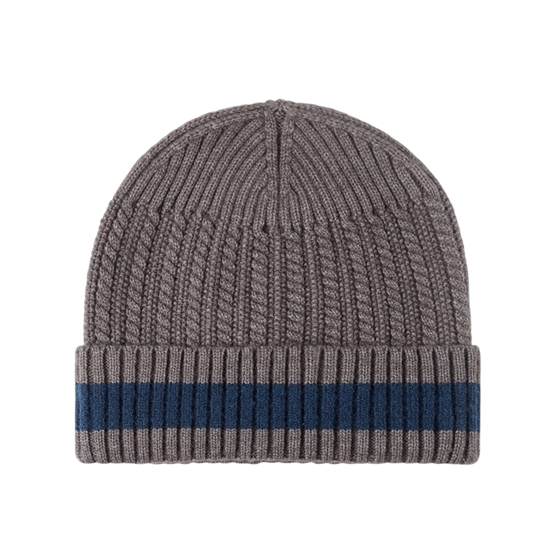 Anna-Kaci Unisex Rib Knit Beanie with Folded Cuff and Contrast Stripe Detail