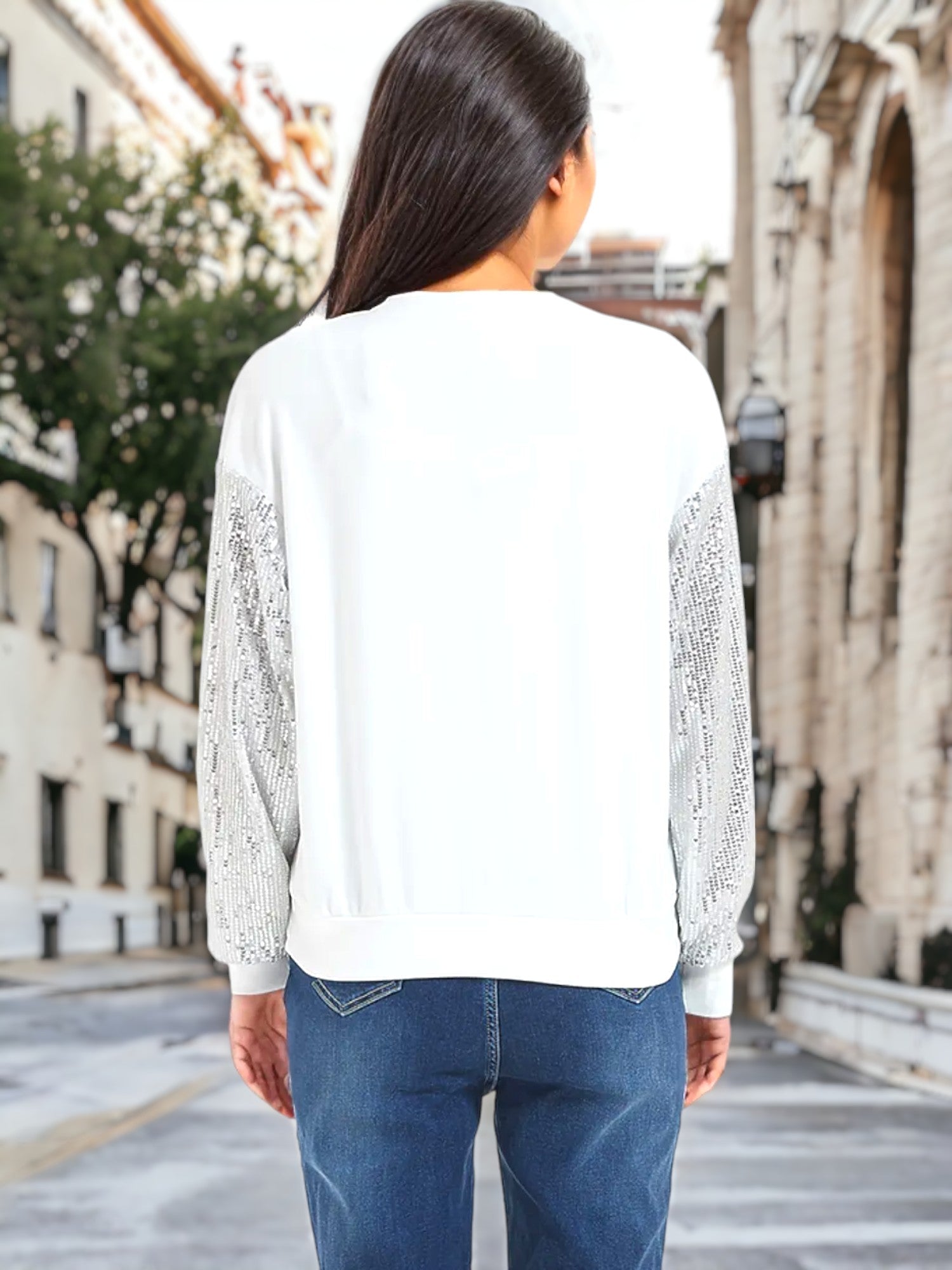 Illuminate your style with our Sparkle Sequin Tops Sweatshirt featuring long lantern sleeves. This exquisite piece blends comfort with glamour, adorned with a dazzling sequin pattern that catches every eye. The long lantern sleeves add a touch of sophistication and drama, making it a perfect choice for evenings out, special occasions, or whenever you want to shine. Elevate your wardrobe with this glamorous sweatshirt, designed to make you stand out and sparkle with every move. Embrace the magic of sequins and showcase your radiant elegance in this must-have fashion statement.