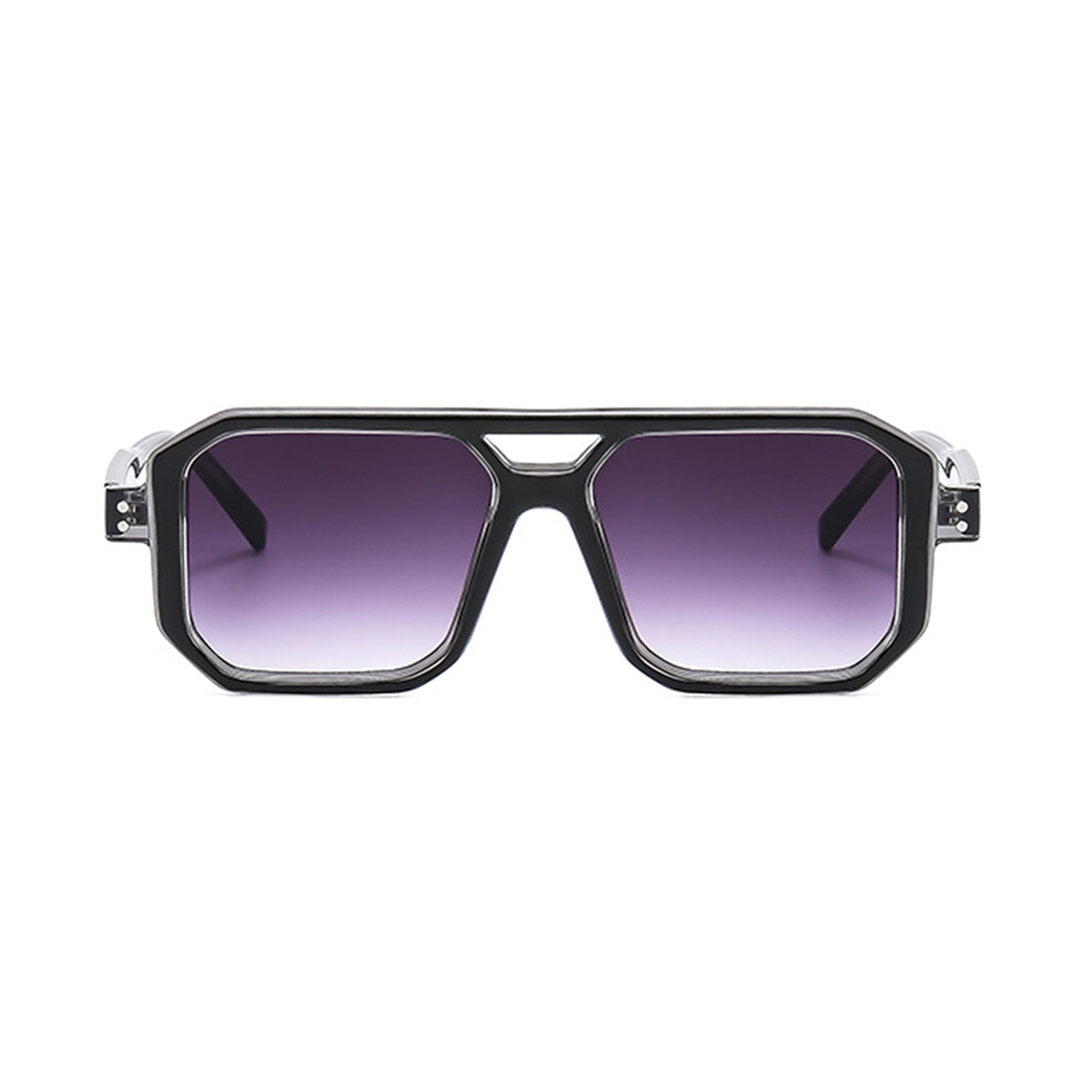 These unisex oversized angular sunglasses feature a futuristic shield-inspired frame with dramatic edges and bold styling. The geometric silhouette is paired with gradient-tinted lenses for a stylish fade effect that offers UV400 protection. A thick frame and wide arms enhance the streetwear aesthetic while ensuring durability and comfort. A must-have accessory for those looking to make a bold fashion statement.