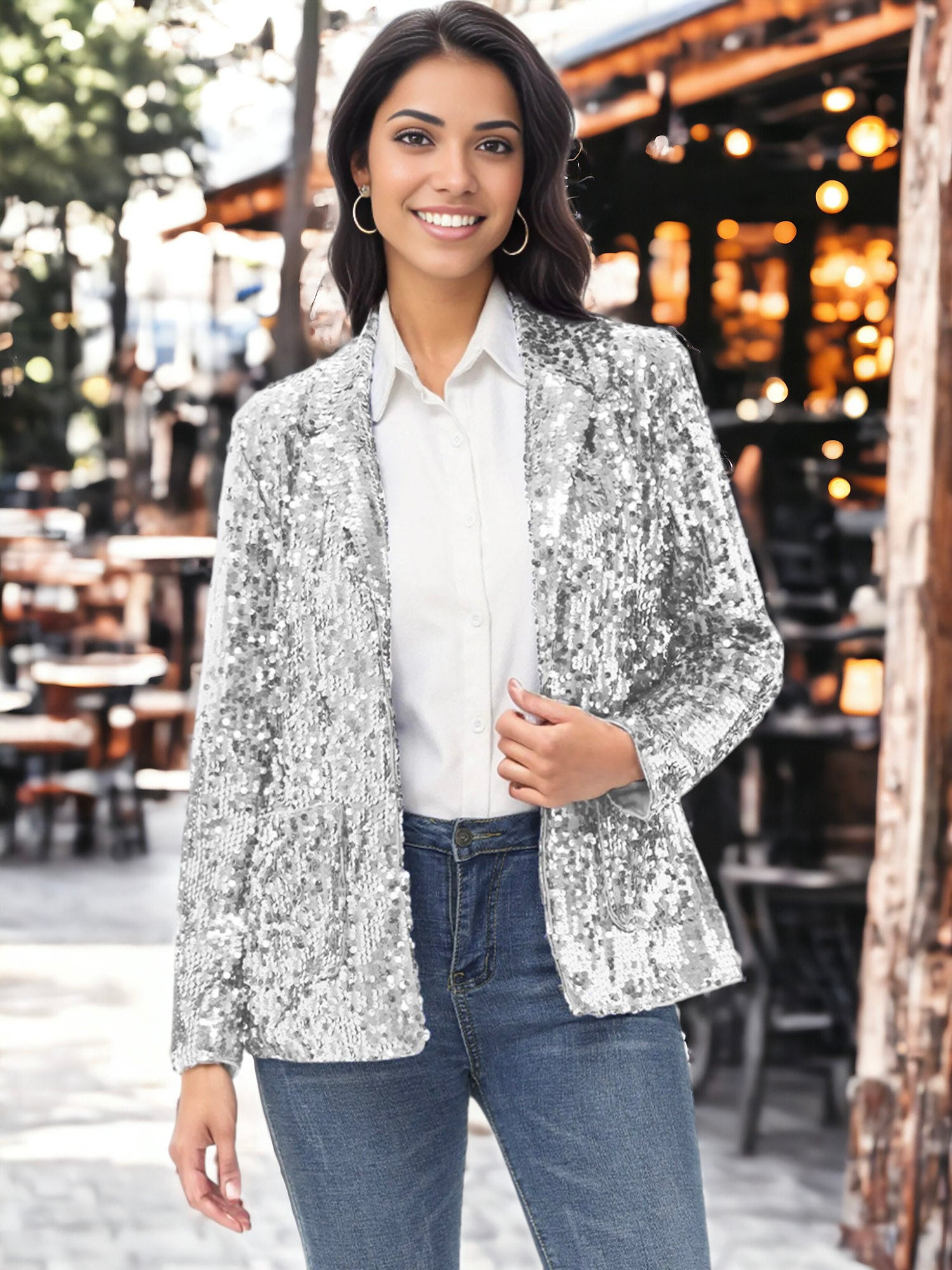 Glitter Long Sleeve Open Front Sparkle Party Blazer Jacket