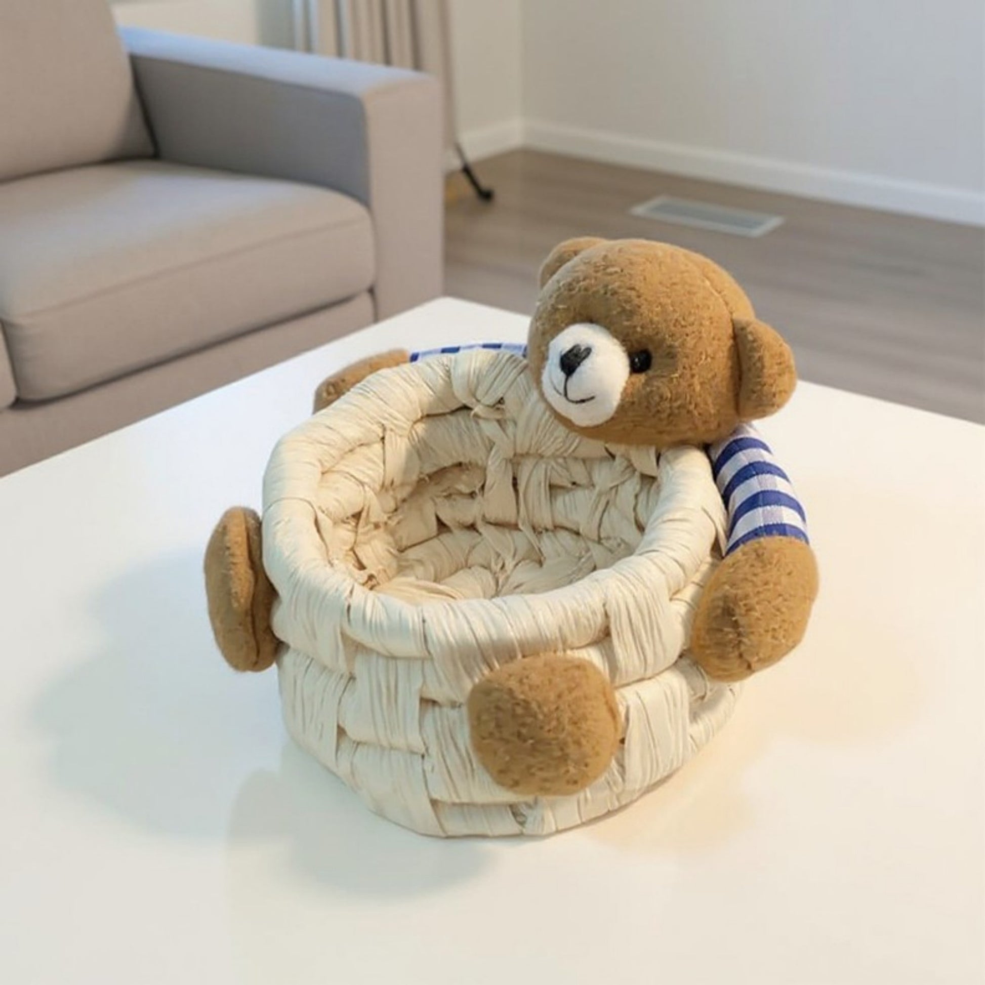 Anna-Kaci Woven Storage Basket with Plush Bear Accent and Handcrafted Design