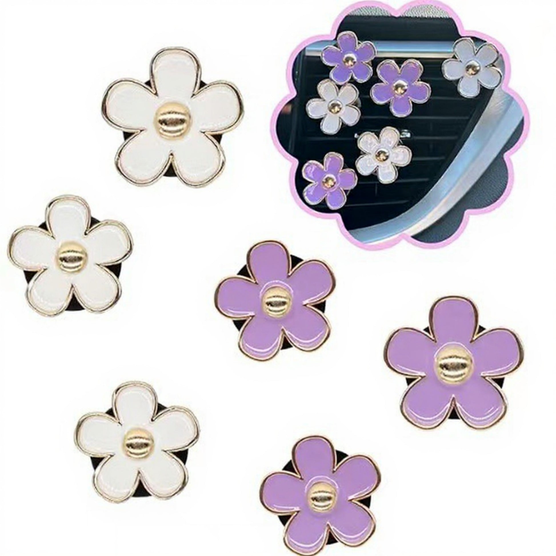 The Anna-Kaci 6-Piece Pink Flower Car Air Vent Clip Set adds a cheerful and elegant touch to your car interior. Each clip features glossy pink petals outlined in gold with a smooth golden center, creating a fresh and feminine aesthetic. Designed to fit securely onto standard car vents, these clips are easy to install and remove without causing damage. Perfect for brightening your dashboard, they bring a playful yet refined style to every drive.