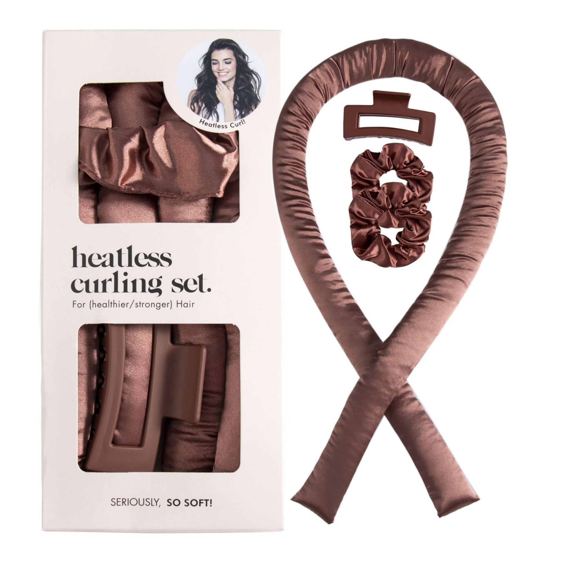 Anna-Kaci No-Heat Curling Ribbon Set with Satin Scrunchies and Hair Clip