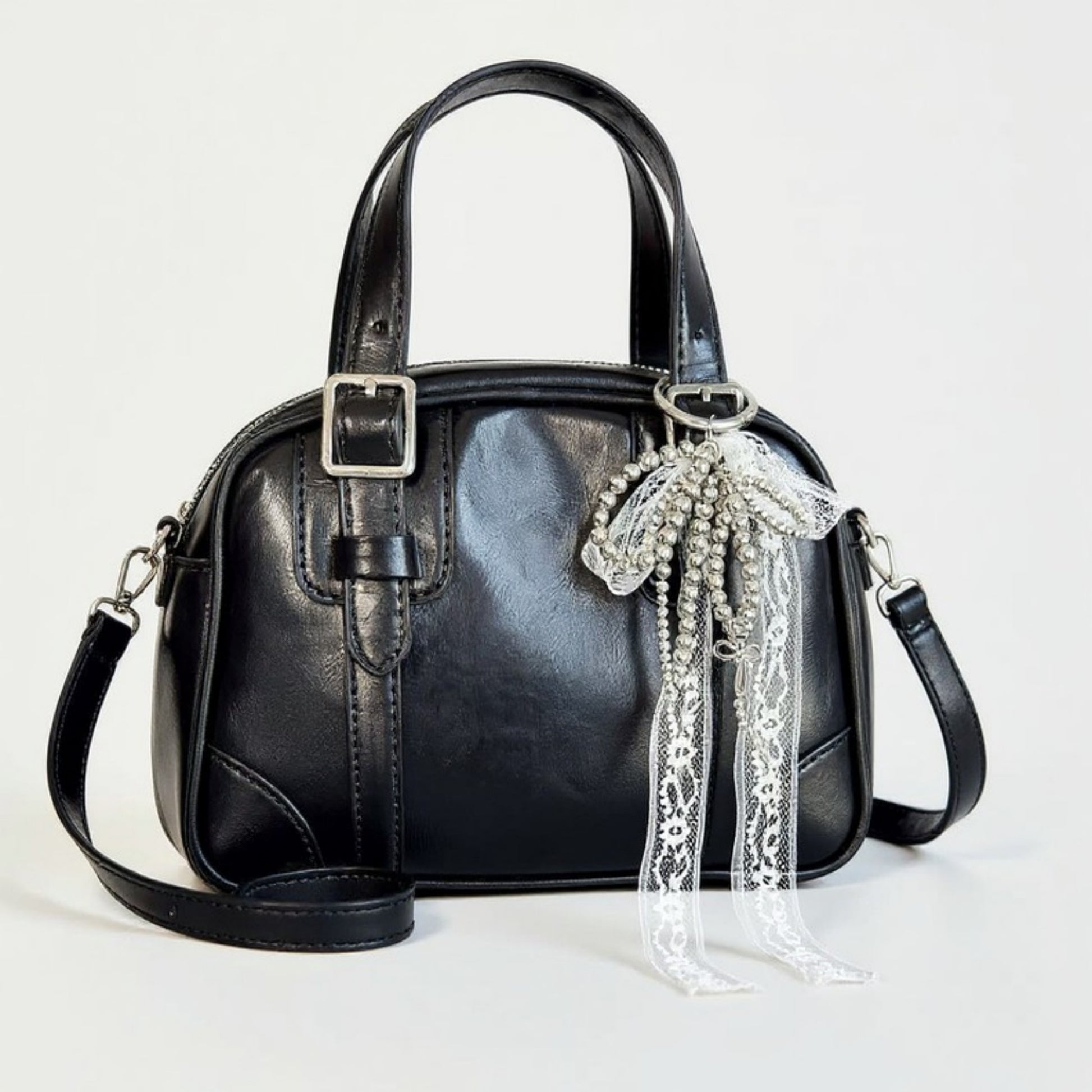 The Anna-Kaci Pearl and Lace Bow Keychain is a beautiful blend of elegance and charm. Designed with layered strands of lustrous faux pearls and delicate lace ribbons, it adds a romantic and sophisticated touch to your accessories. The dainty silver bow charm and sturdy metal ring make it both decorative and functional, perfect for attaching to handbags, totes, or keys. This feminine accessory captures timeless grace, elevating any look with its intricate detailing and refined style.