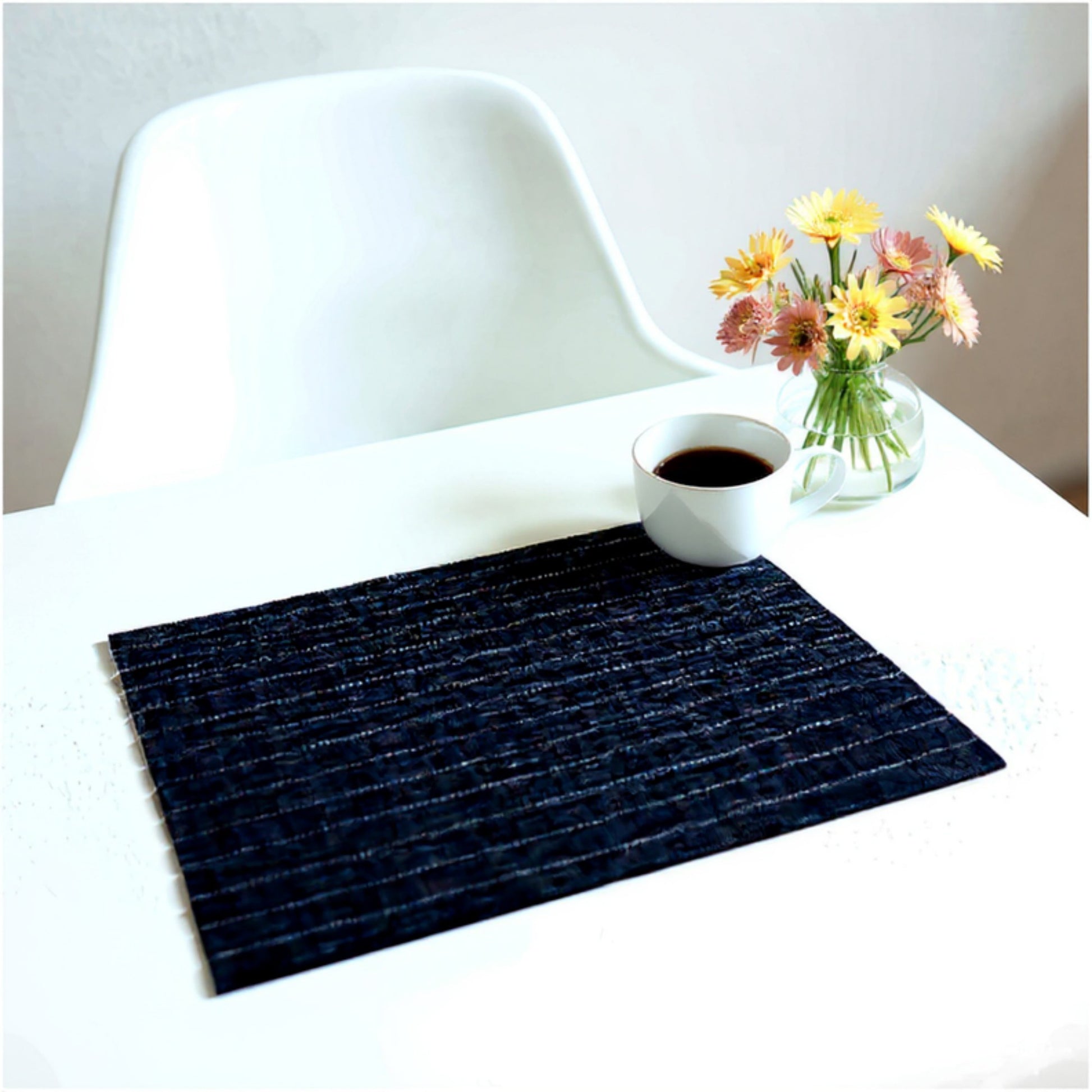 Anna-Kaci 2-Piece Rectangular Woven Placemat with Subtle Horizontal Stripe Texture