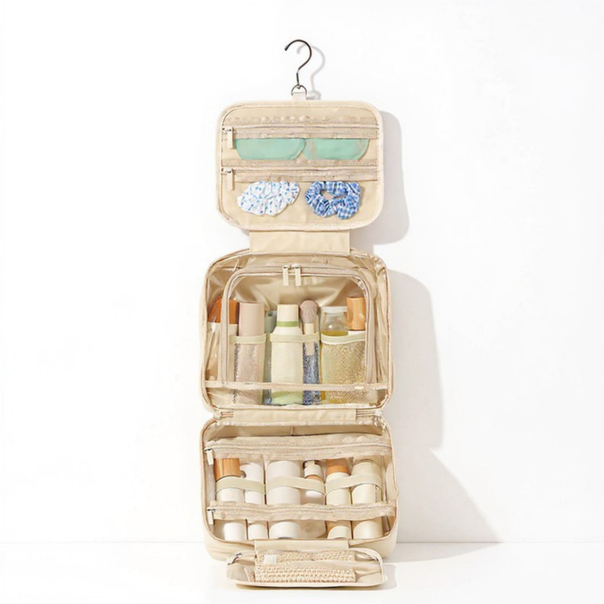 The Anna-Kaci Hanging Toiletry Bag offers a spacious, organized way to store all your beauty and grooming essentials. Designed with multiple transparent mesh compartments, it allows for quick visibility and easy access to your skincare, cosmetics, and travel accessories. The sturdy metal hook enables convenient hanging in bathrooms or closets, while the water-resistant material protects contents from moisture and spills. Perfect for travel or everyday organization, this bag combines practicality with modern elegance.