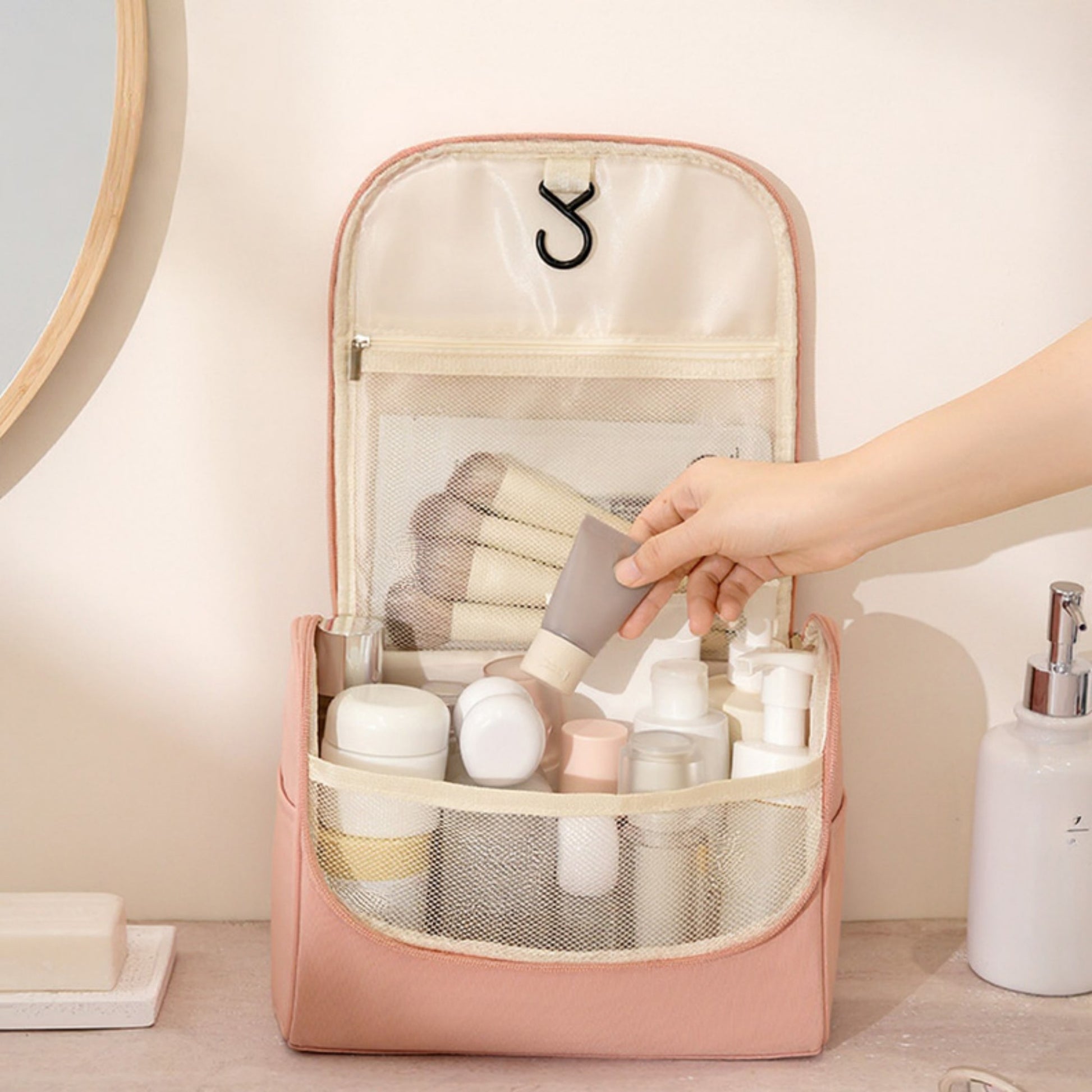 The Anna-Kaci Hanging Toiletry Bag offers generous storage and a clean, minimalist design to keep your essentials neatly arranged. Designed with wide mesh compartments and a sturdy hanging hook, this organizer provides easy visibility and quick access to skincare, cosmetics, and toiletries. The durable water-resistant fabric protects your items from spills, while the foldable structure makes it easy to pack for travel or home use. A perfect balance of functionality and elegance for modern lifestyles.