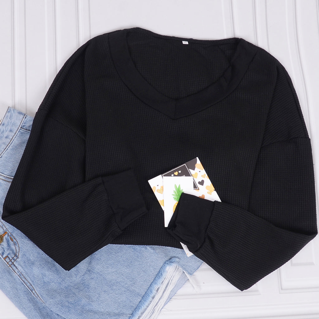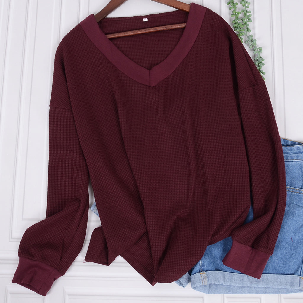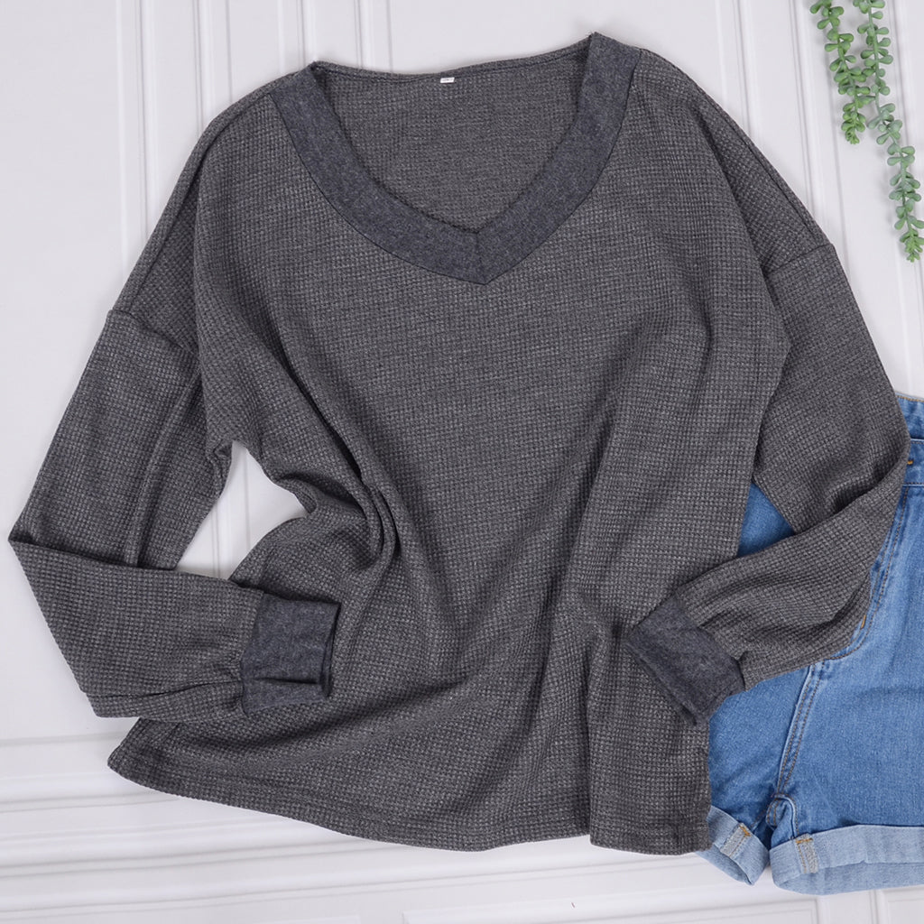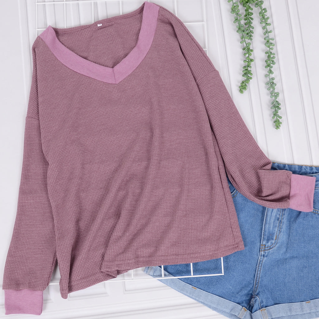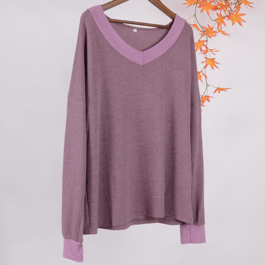 The Anna-Kaci sweater is detailed with a flirty asymmetric neck line with a one shoulder detail. Features a v neck line laid flat, long sleeves, waffle knit texture, solid color, and an oversized fit. Pair it with denim shorts and knee-high boots for a magnificent look.