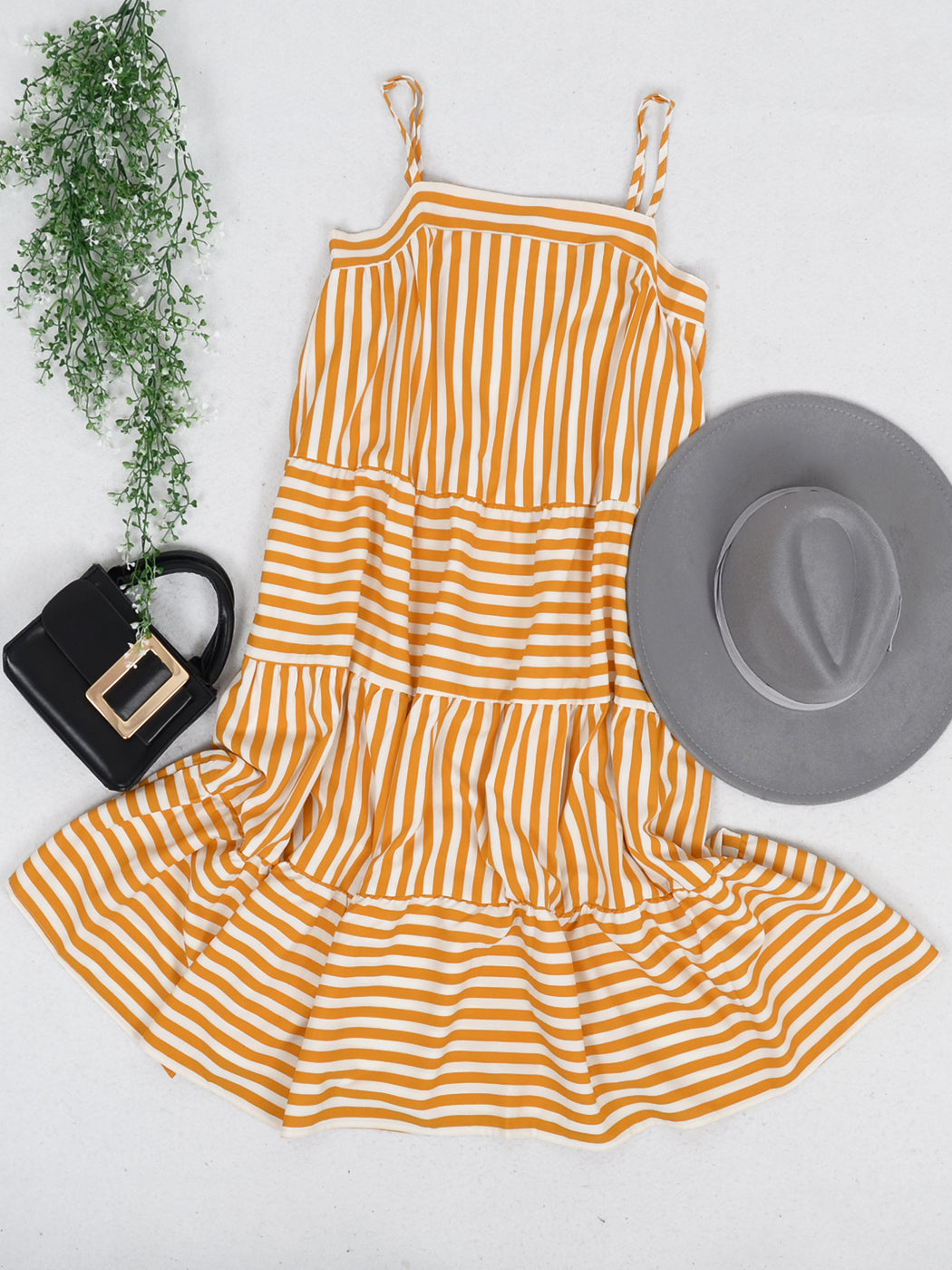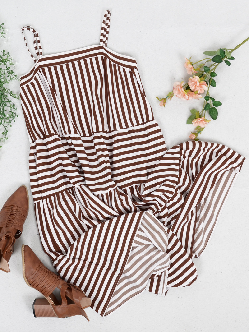 This tunic ruffle dress is perfect to dress up or down depending on your day. Detailed with a mixed pattern of vertical and horizontal stripes for a fun unique look. Lightweight, airy, and soft to the touch, the mini strap dress and its bright colors is ideal for spring and summer. Features a back button closure and 2 front side pockets large enough to fit a phone. Fits & flares like a baby doll dress so runs larger than most dresses.
