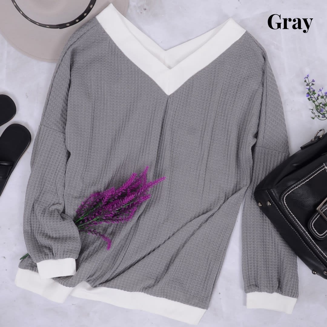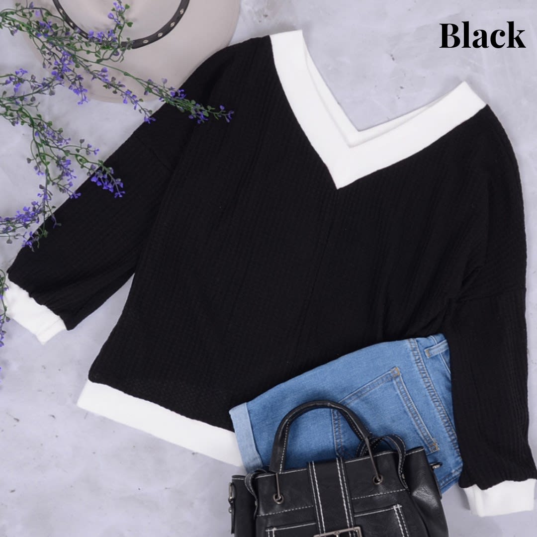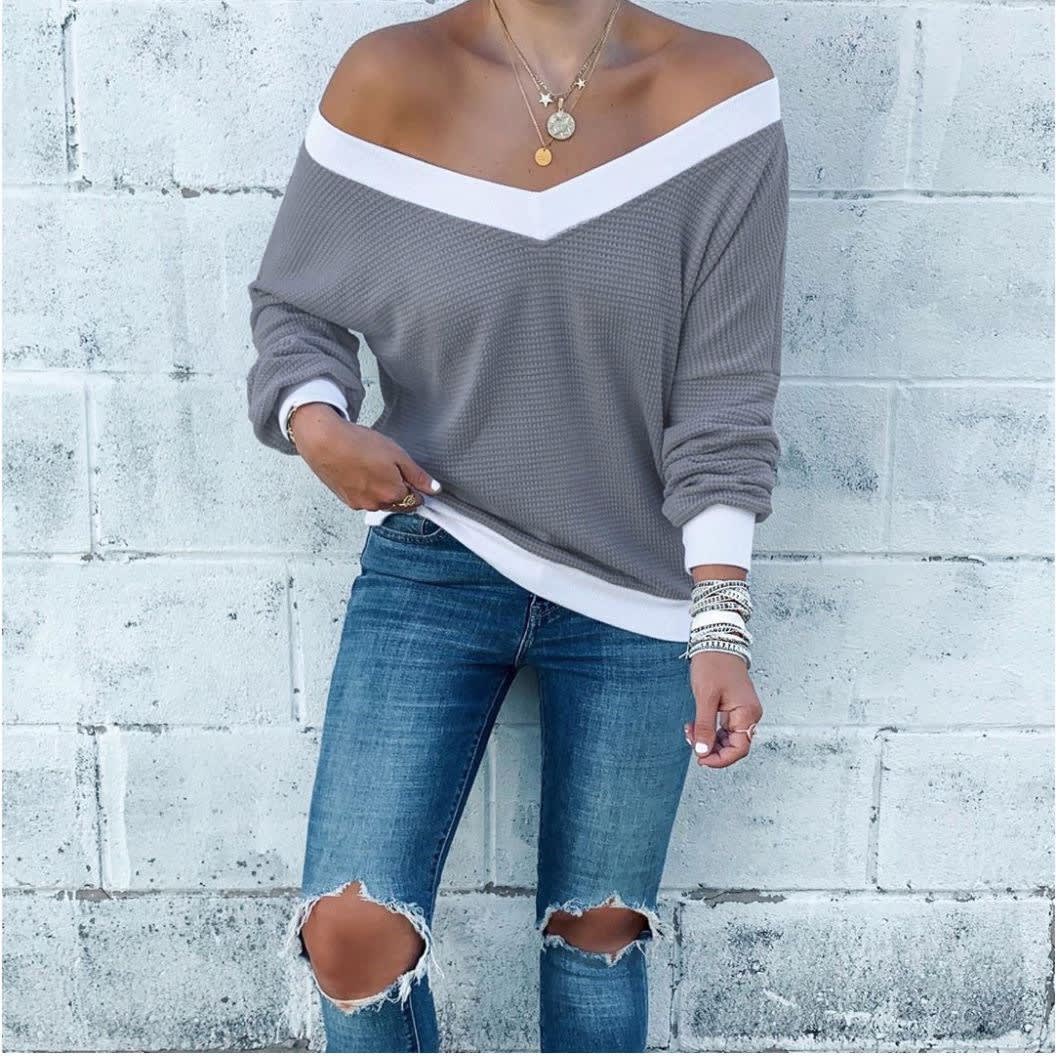 The Anna-Kaci sweater is detailed with a flirty off shoulder neck line. Features contrast piping details, long sleeves, and a loose fit. Pair it over leather pants and boots for a sexy look.