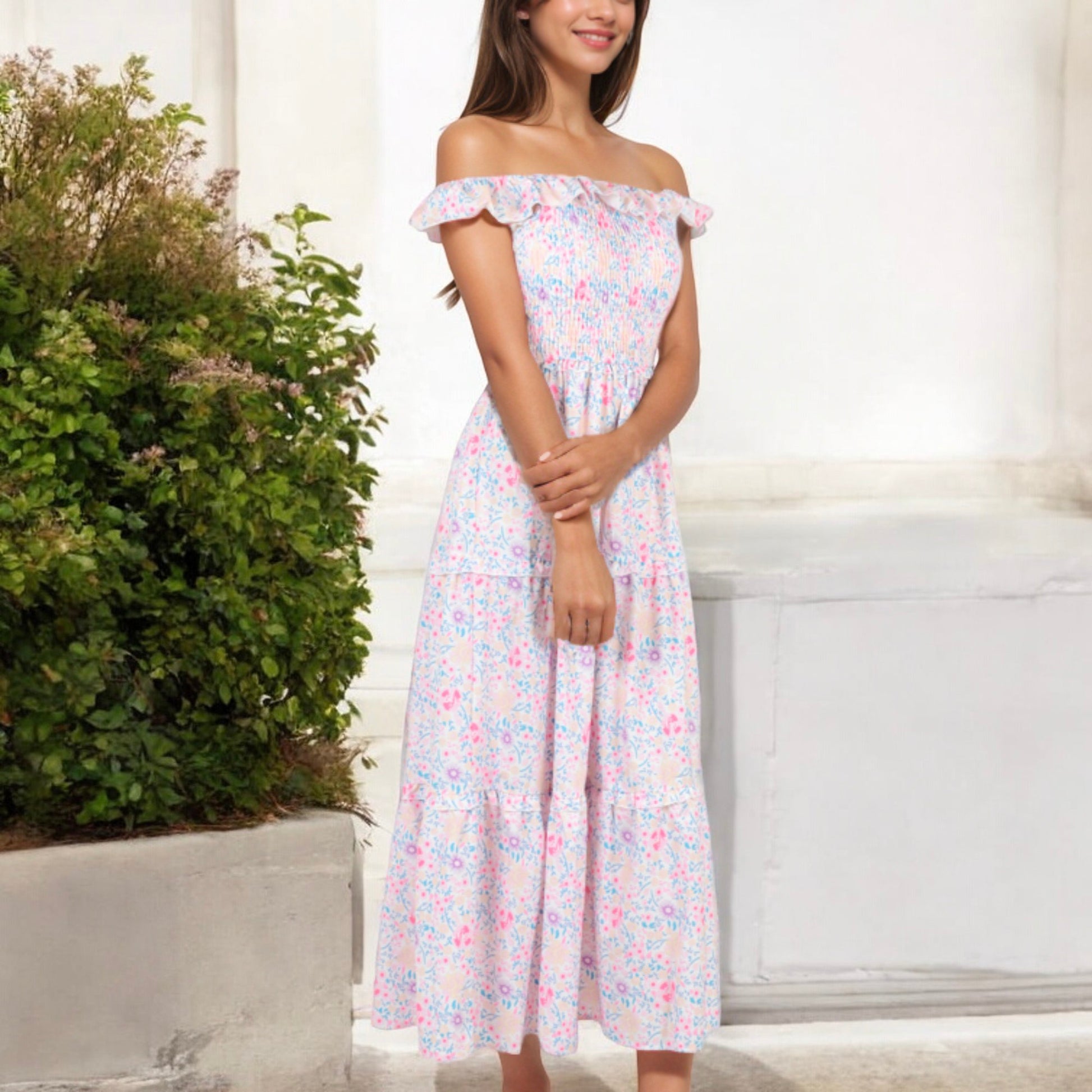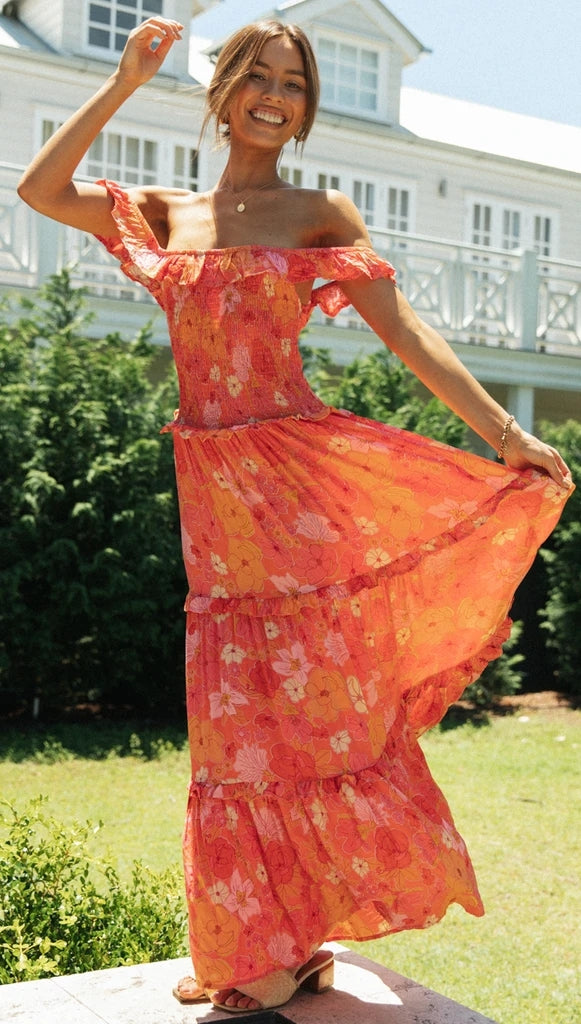 Spring is here and these maxi dresses are a must-have for comfortable easy everyday outfits! This spring maxi ruffle dress is perfect to dress up or down depending on your day. Easily pair this dress with your favorite heels, a matching belt, and a spring clutch.