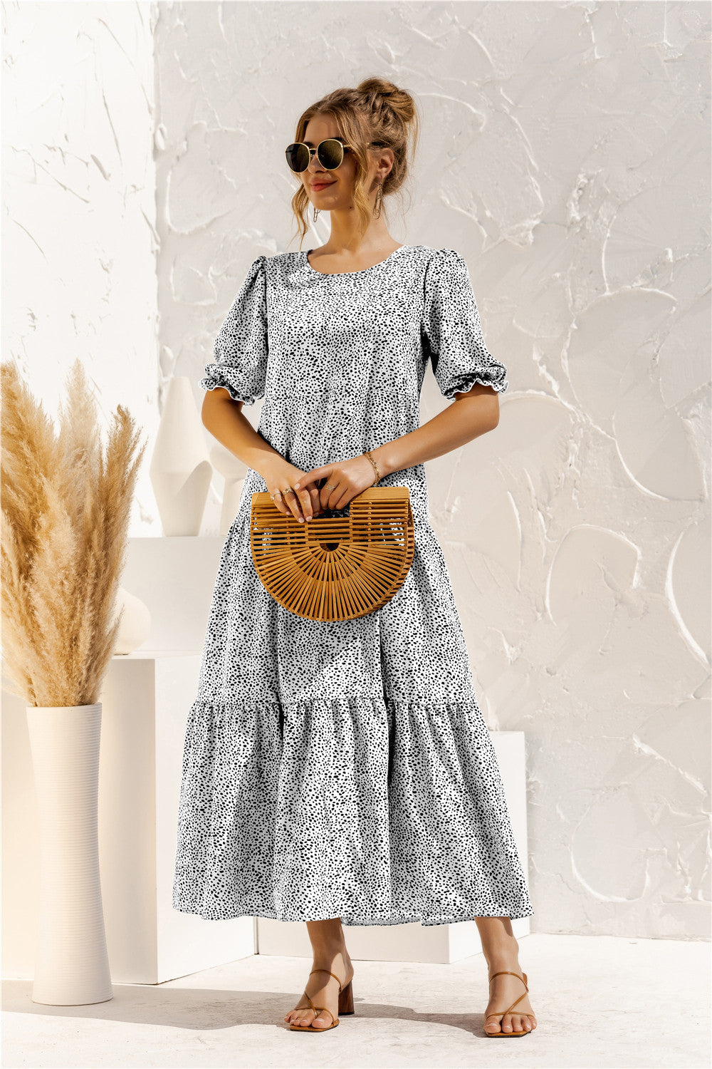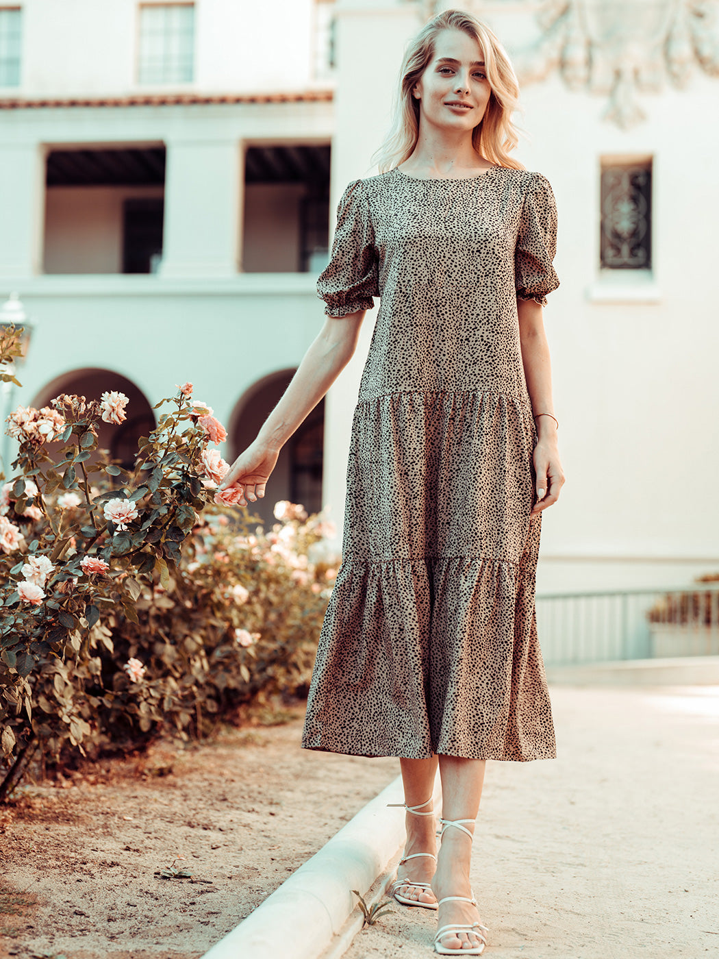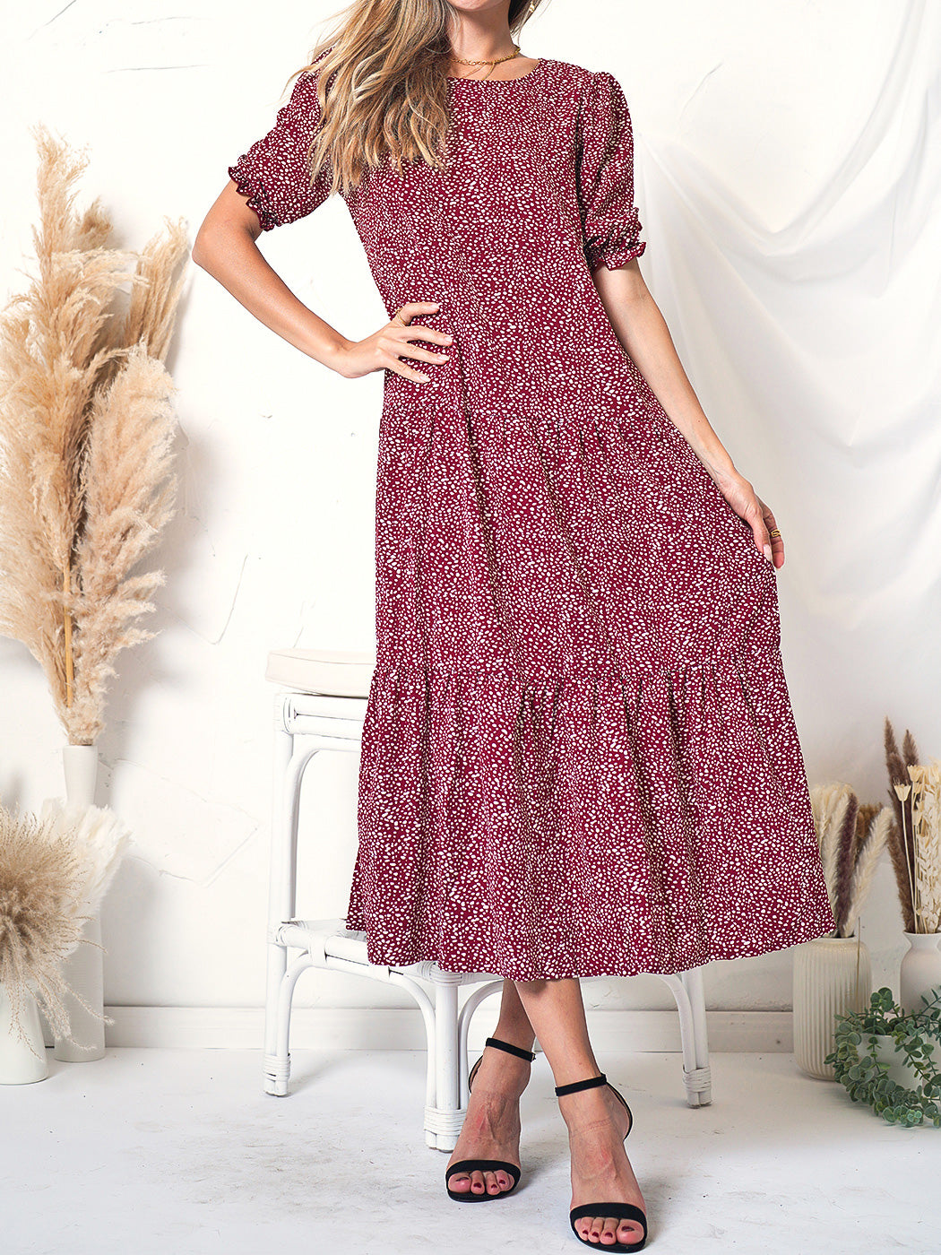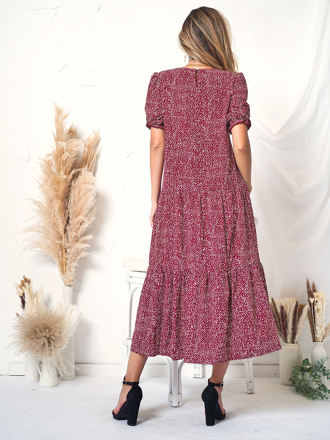 The Anna-Kaci maxi dress is detailed with a unique plaid patterns. Features a round neckline, short sleeves, ankle length hem, and ruffle layered details from top to bottom. Made with 100% soft poly that's light and breathable for casual wear at home or outside on sunny days. Easily pair this dress with your favorite heels, a matching belt, and a summer clutch.