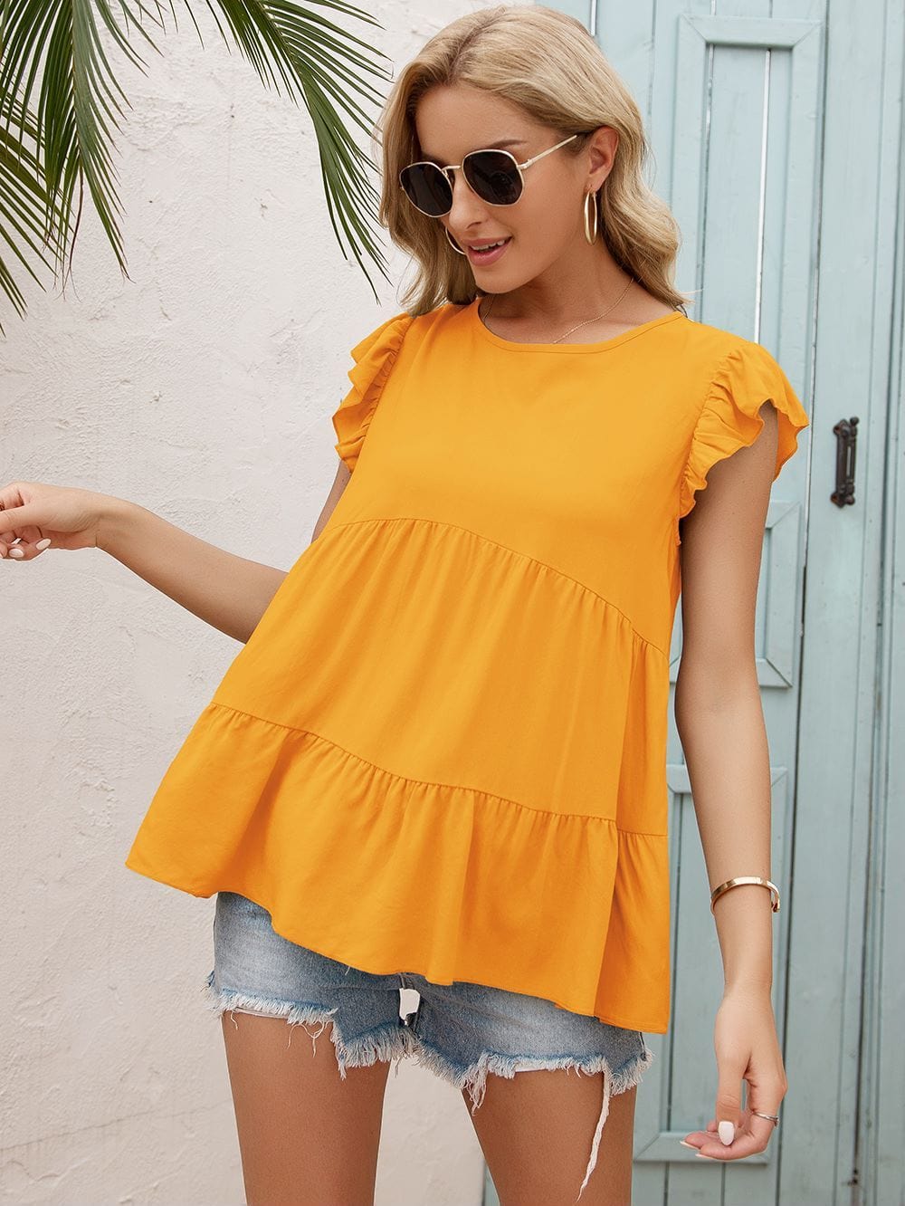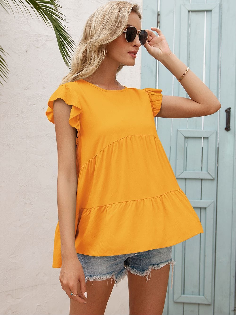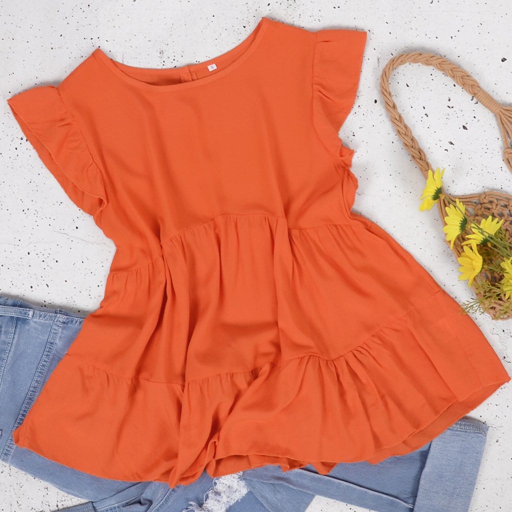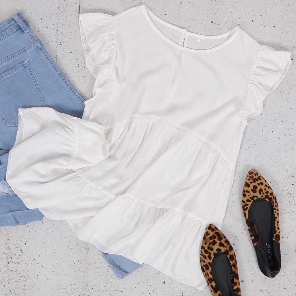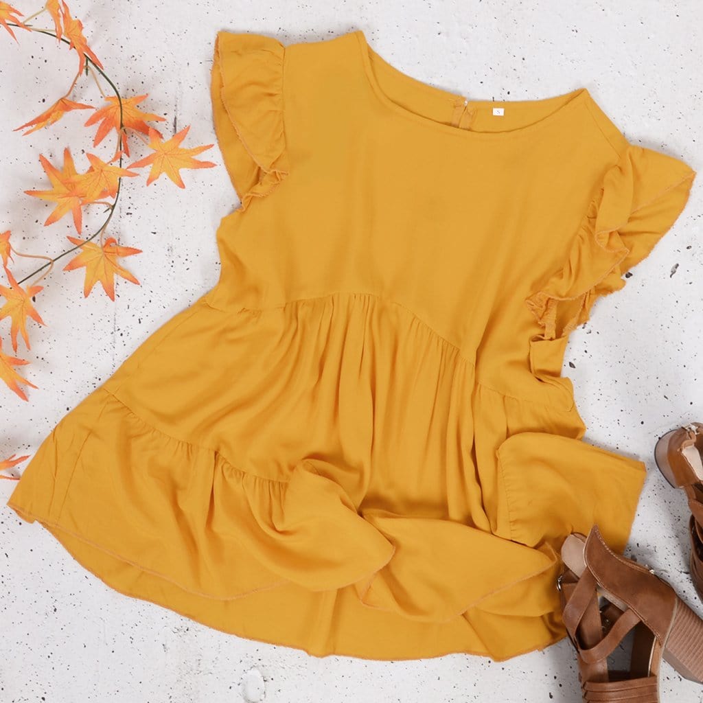 This summer ruffle blouse is perfect to dress up or down depending on your day. With all the amazing bright colors, pair this dress with your heels or sandals and your best summer accessories.