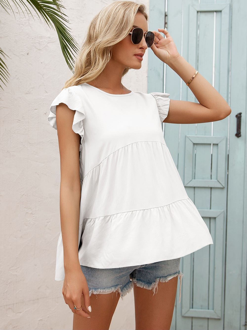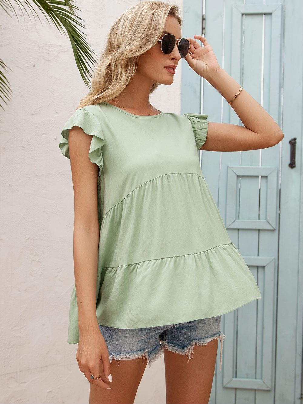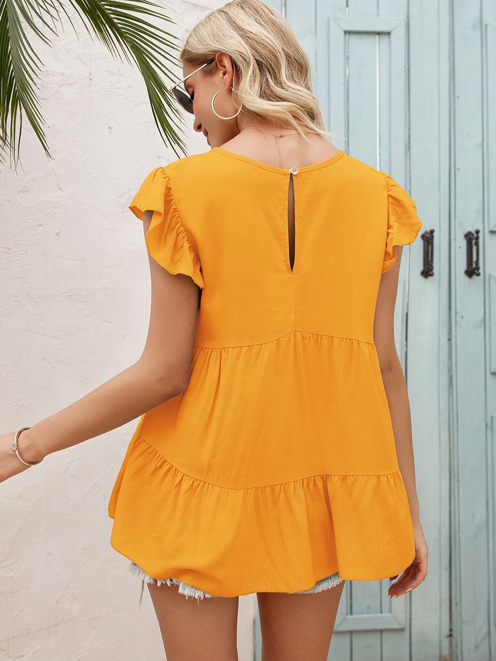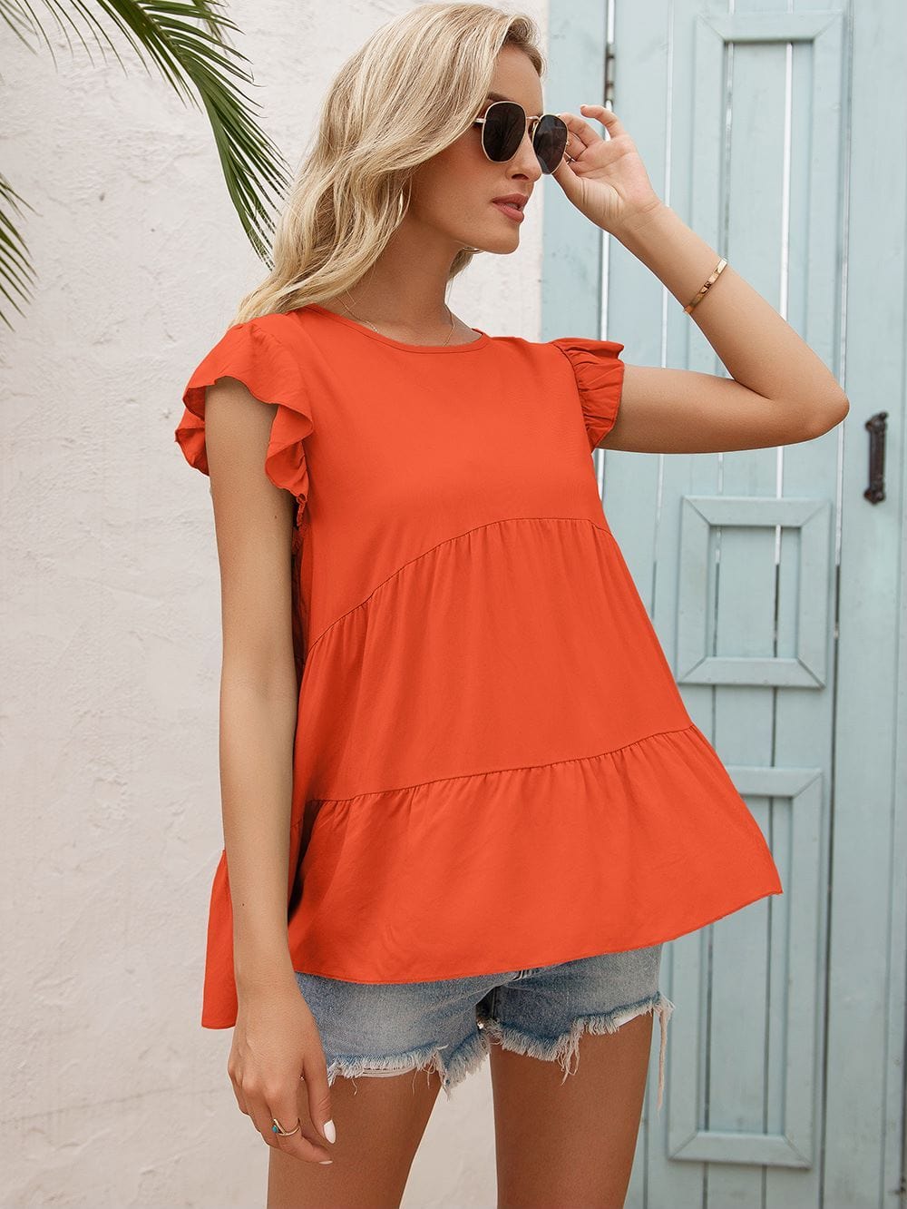 This summer ruffle blouse is perfect to dress up or down depending on your day. With all the amazing bright colors, pair this dress with your heels or sandals and your best summer accessories.