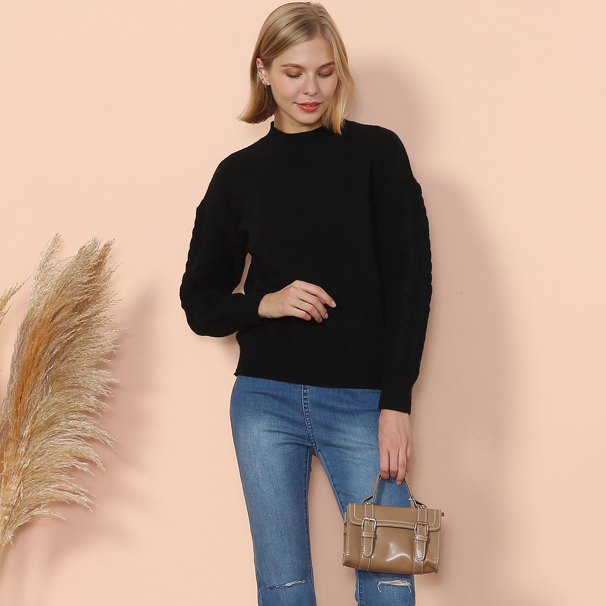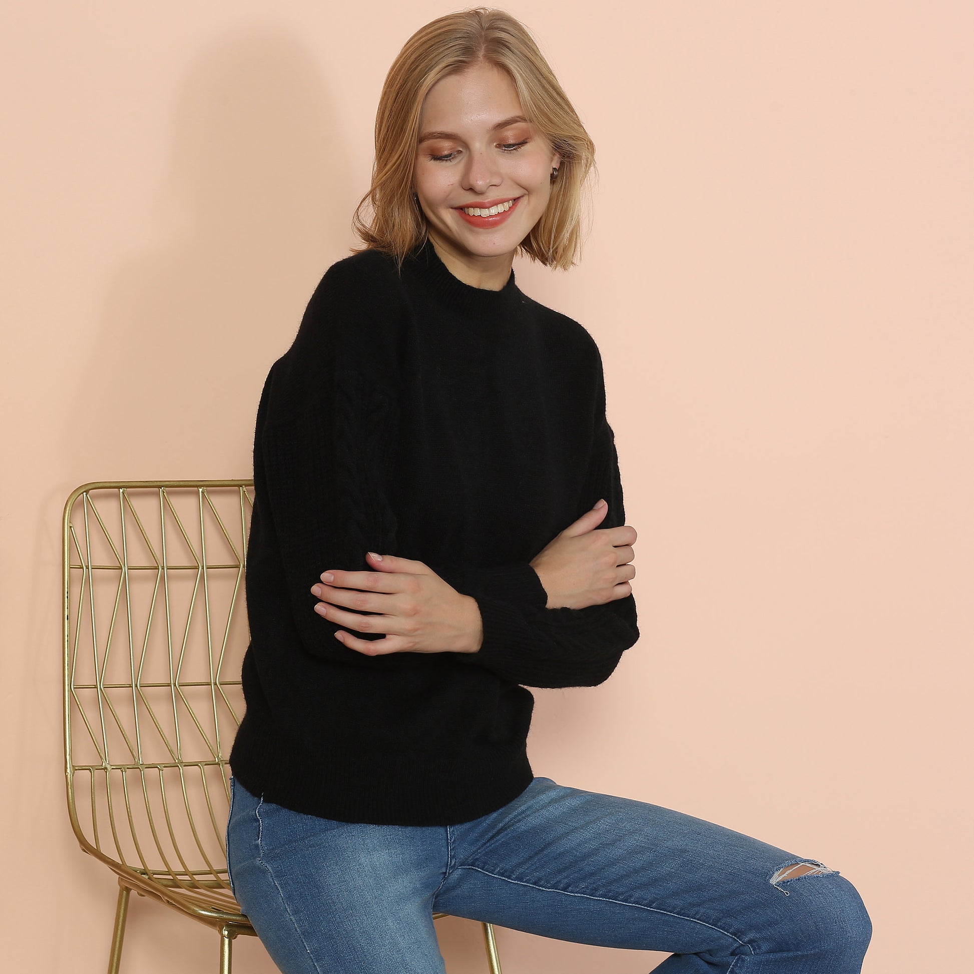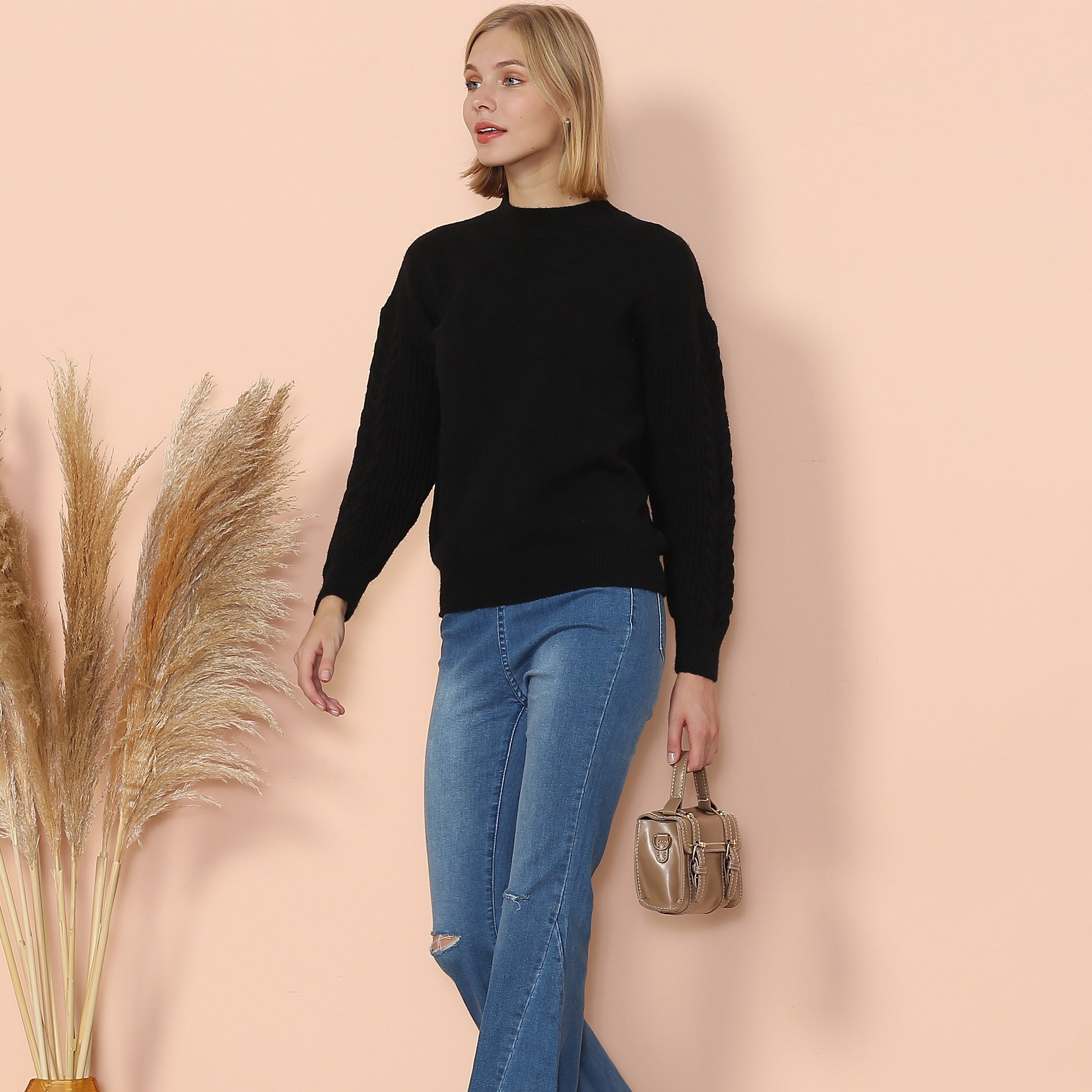 The Anna-Kaci light long sleeve is detailed with a simple solid design for the fall and winter season. Features a high round neckline, textured details along the long sleeves, and relaxed fit. Pair it with your favorite jeans and layer it with a warmer coat for an easy out the door look.