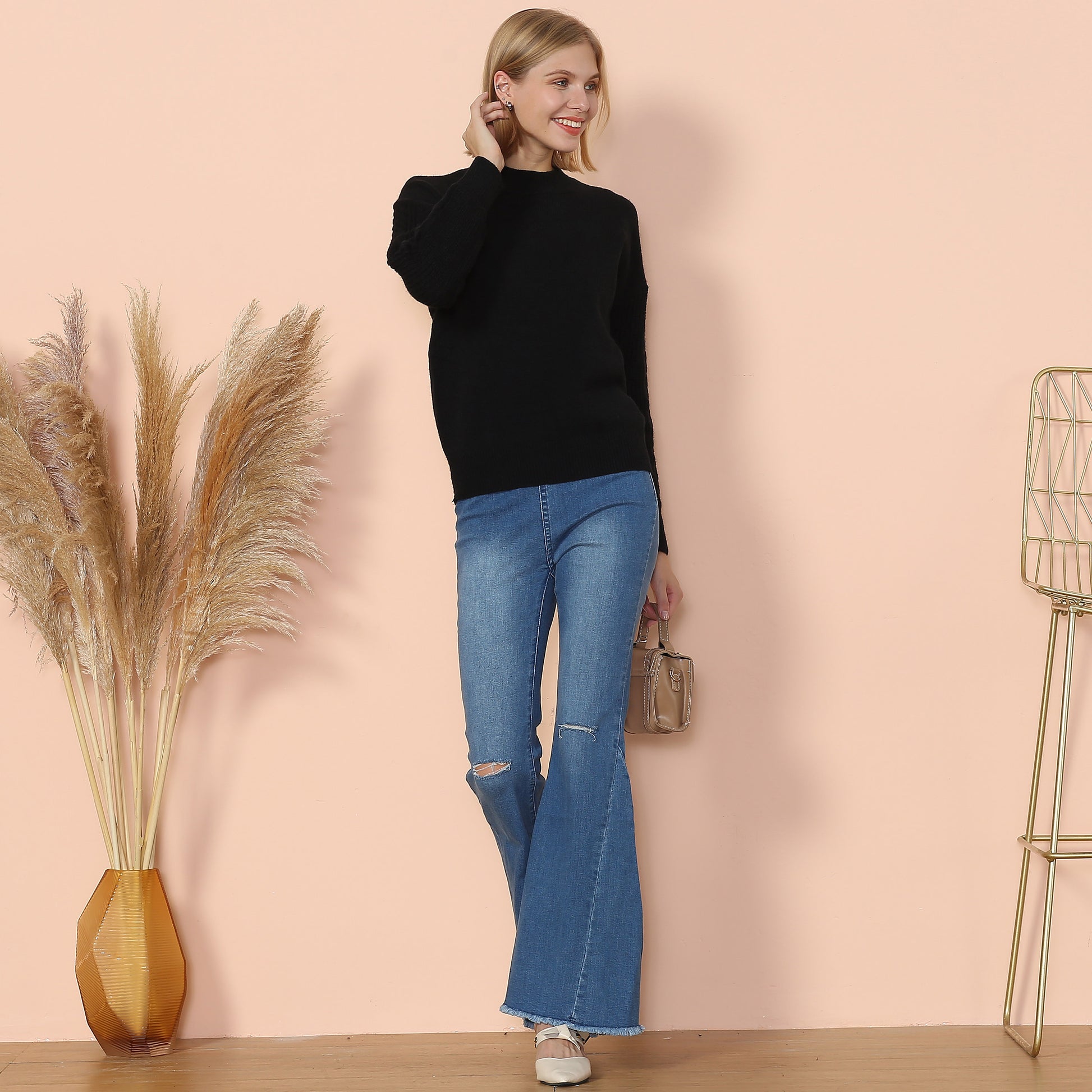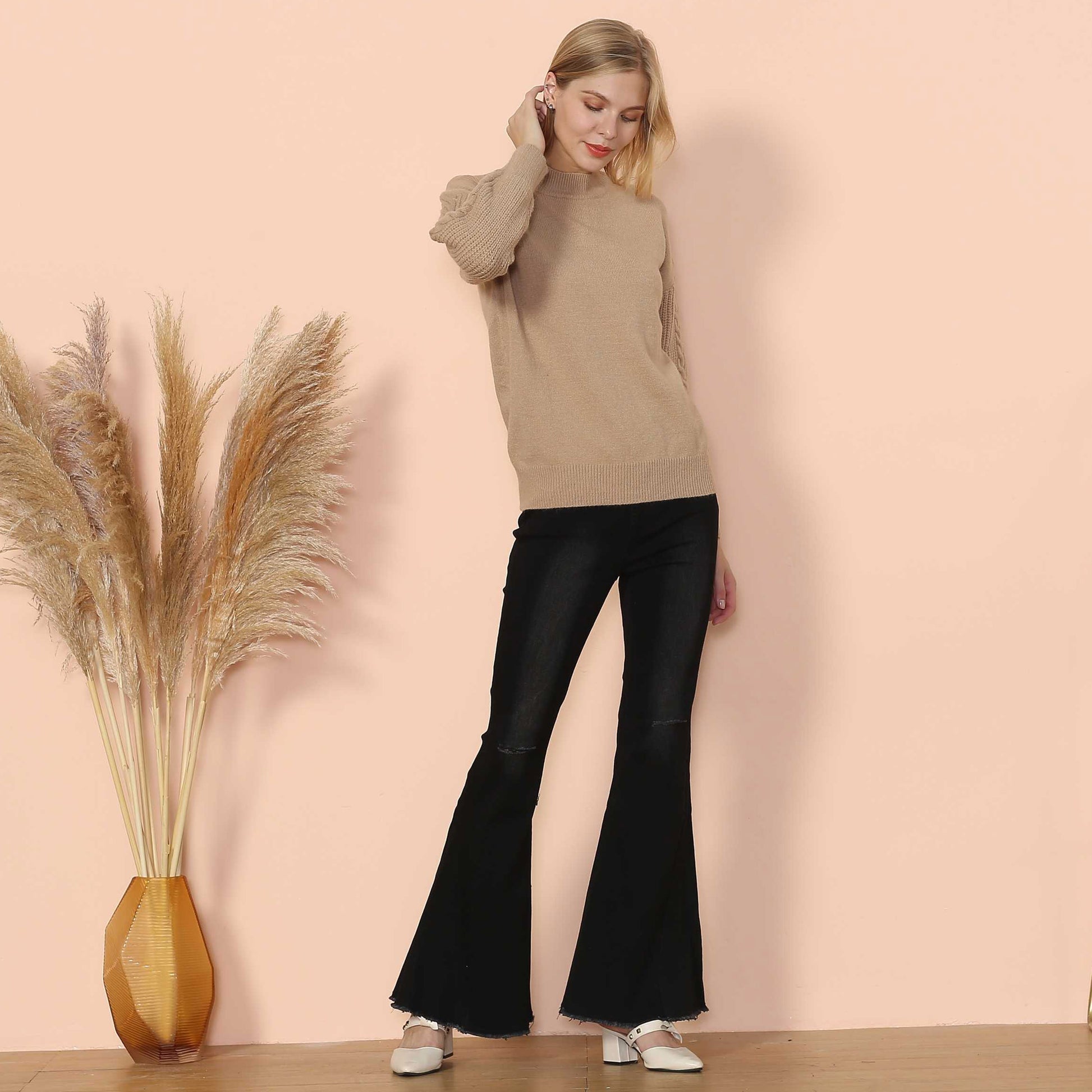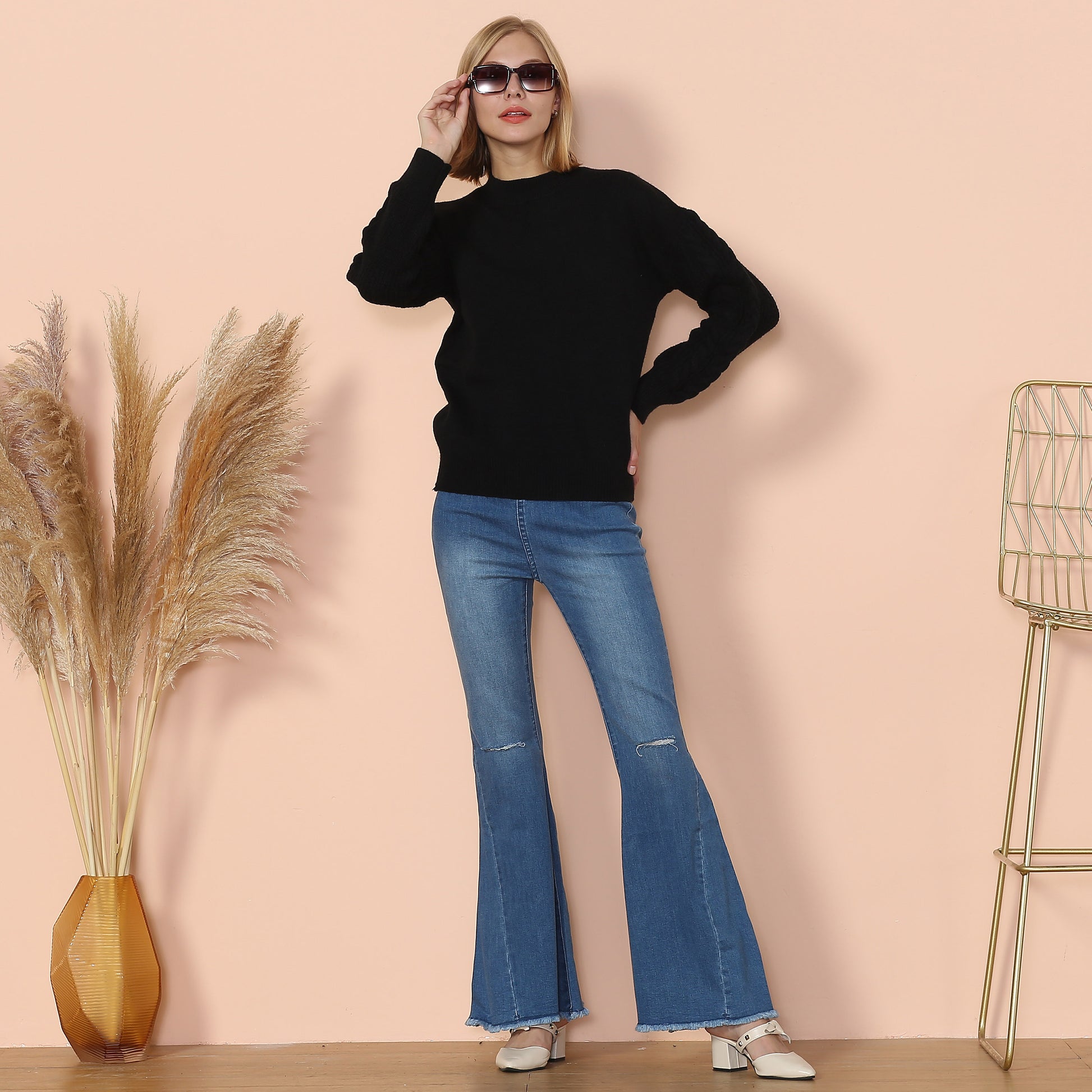 The Anna-Kaci light long sleeve is detailed with a simple solid design for the fall and winter season. Features a high round neckline, textured details along the long sleeves, and relaxed fit. Pair it with your favorite jeans and layer it with a warmer coat for an easy out the door look.