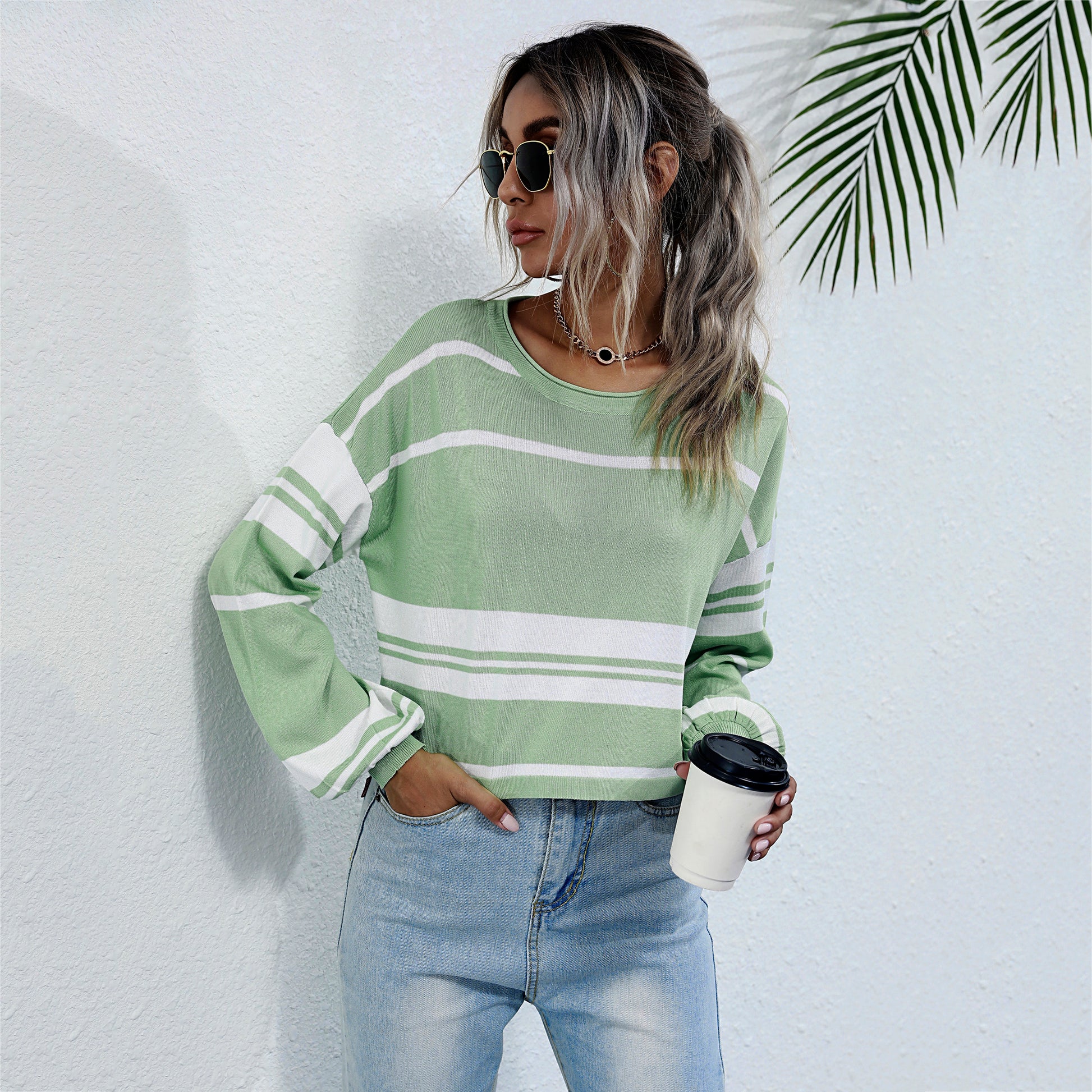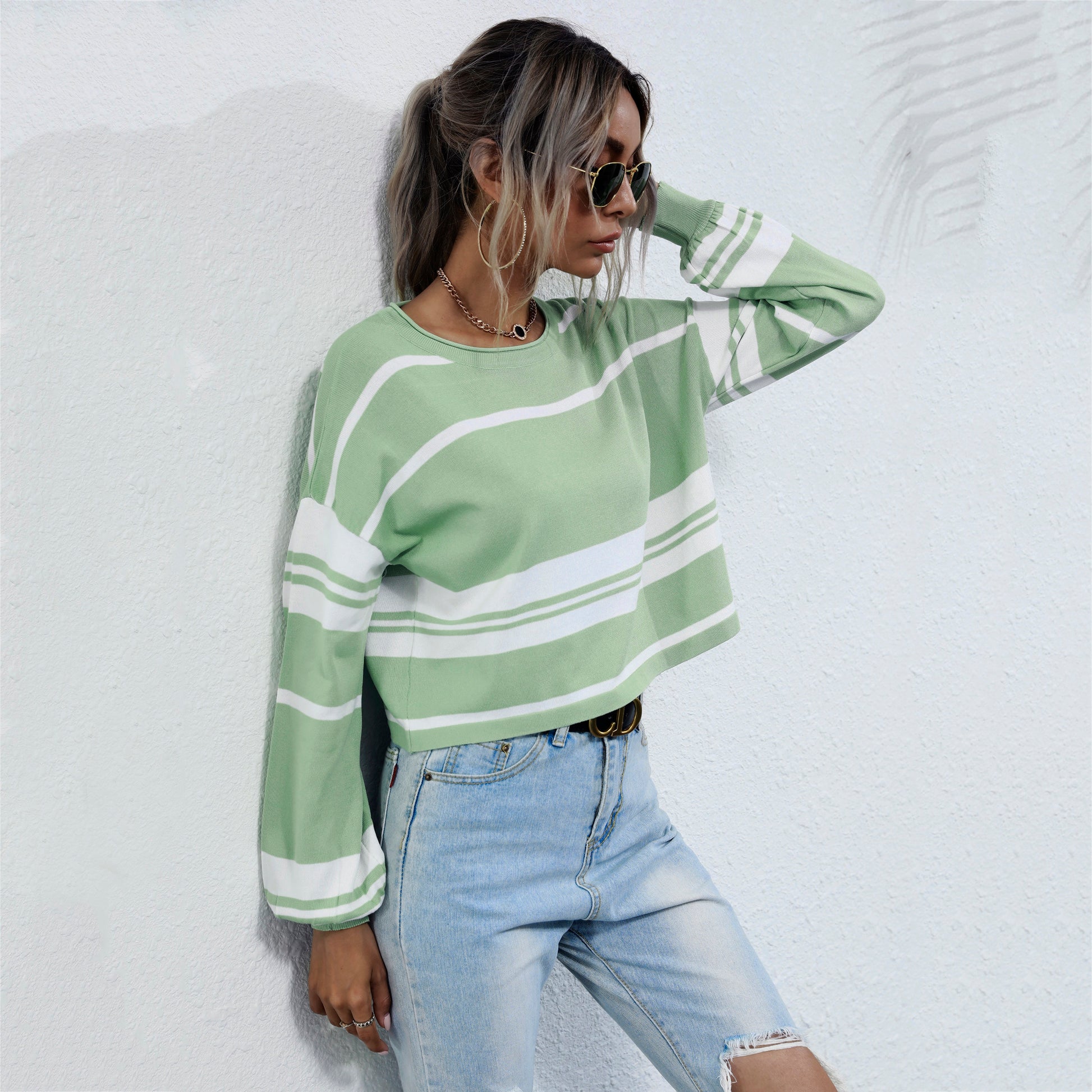 The Anna-Kaci sweater is detailed with cute striped patterns of different sizes. Features a round neck line, drop shoulder, long sleeves, and relaxed fit. Pair it with a denim mini skirt and boots for a dazzling fit.