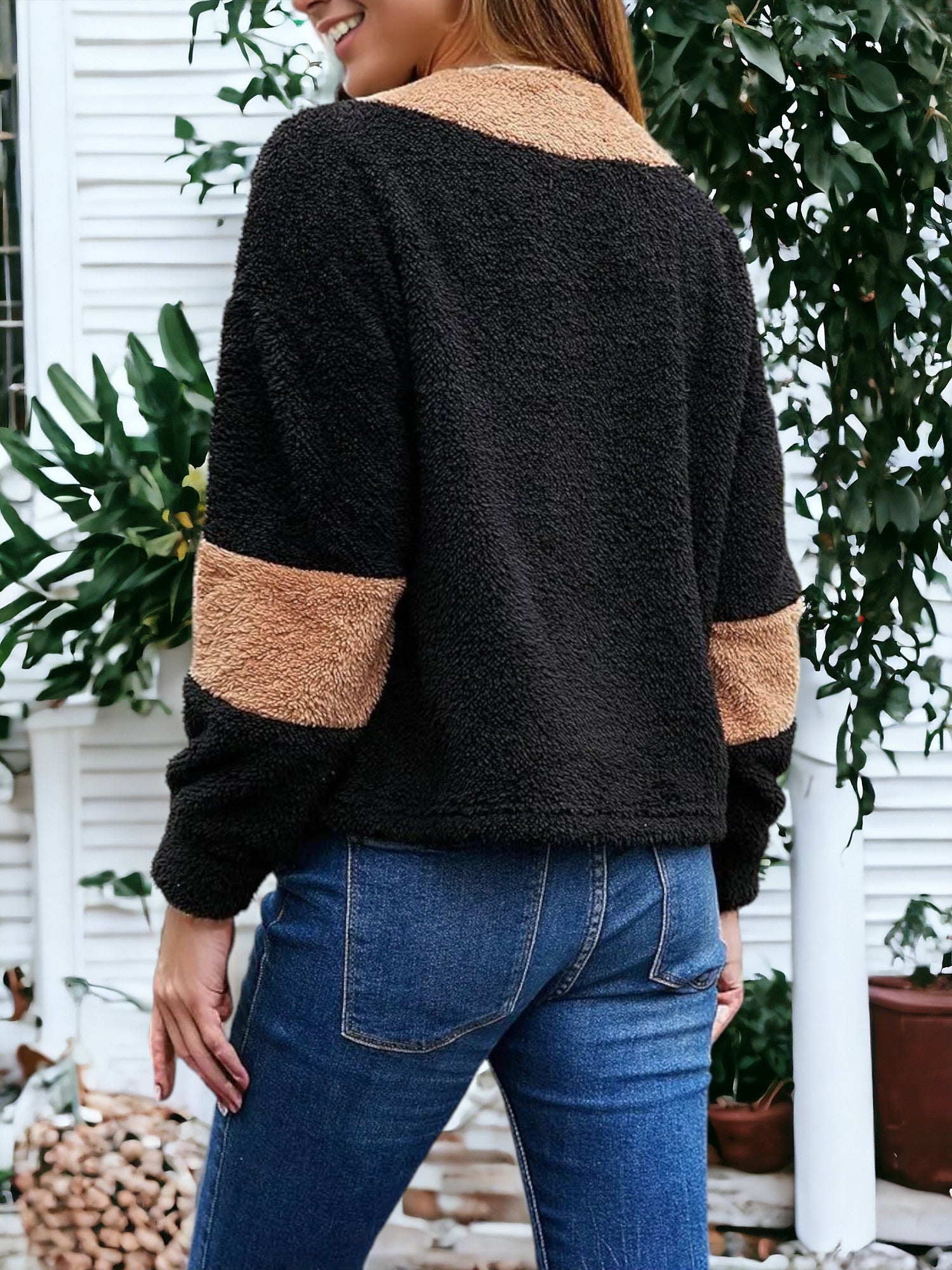 Stay cozy in style with our Color Block Teddy Zip Up Sweater. Crafted with warmth and flair, this sweater blends comfort and fashion effortlessly. Embrace the season's trends with its eye-catching color blocking design, while the plush teddy fabric ensures luxurious softness. Zip up and step out in confidence, making a statement wherever you go.