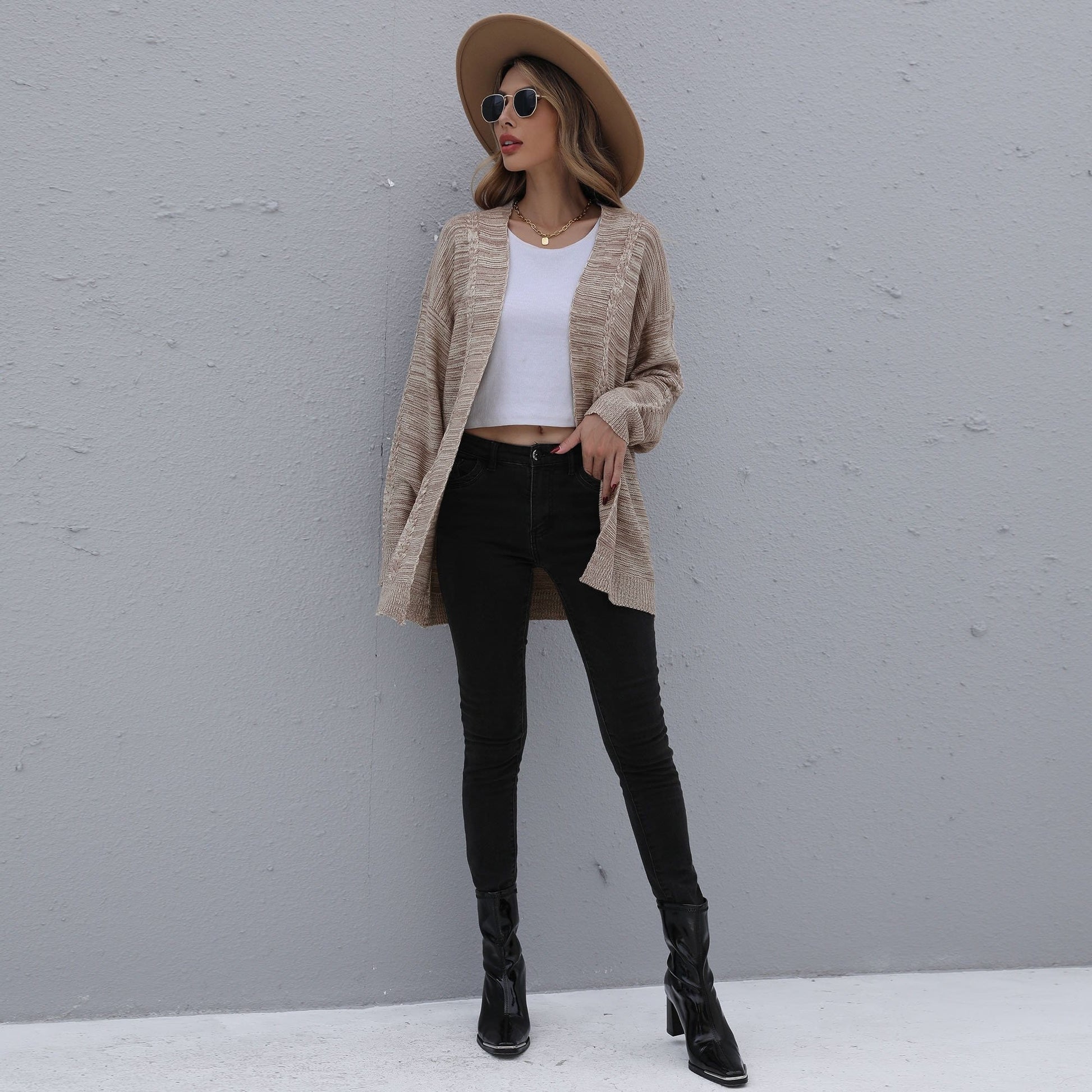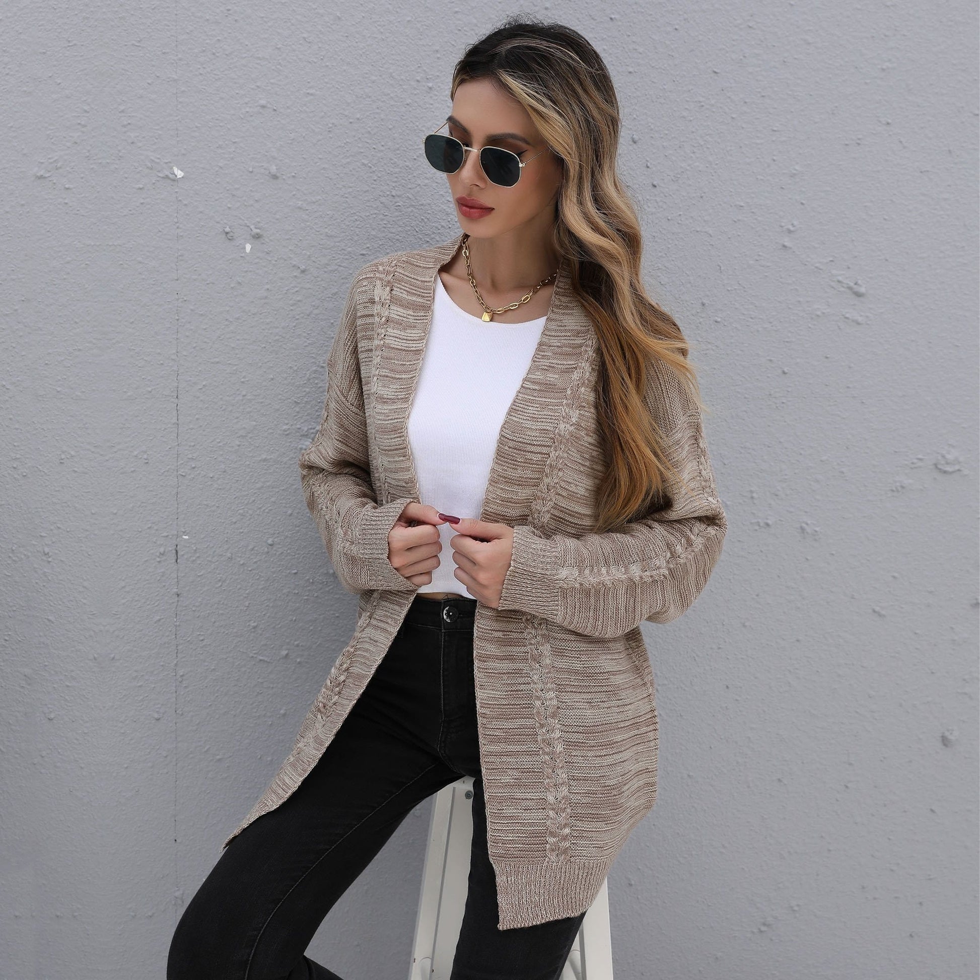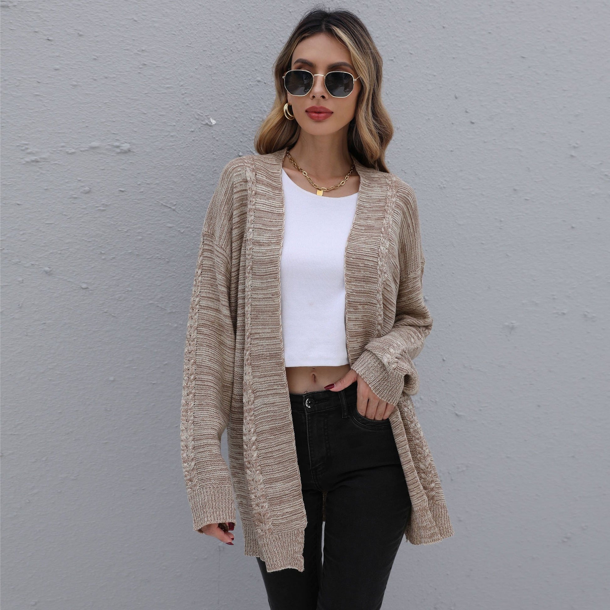 The Anna-Kaci cardigan is detailed with a gorgeous cable knit design on the sides of the cardigan. Features an open front, drop shoulder, semi-long length, and relaxed fit. Layer it over a bodycon dress and mid-thigh boots for a magnificent look.