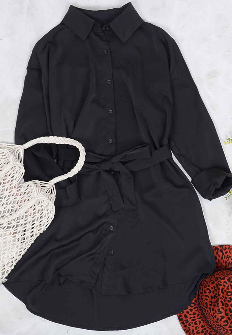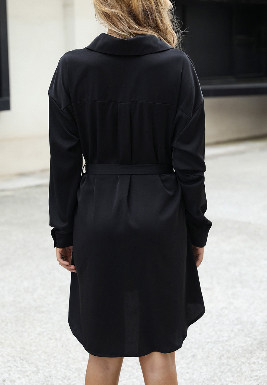 The Anna-Kaci polo dress is detailed with a classic button down closure. Features a collar, drop shoulder, long sleeves, tie waist belt, and above knee length. Pair it with black boots and sunnies for a divine look.