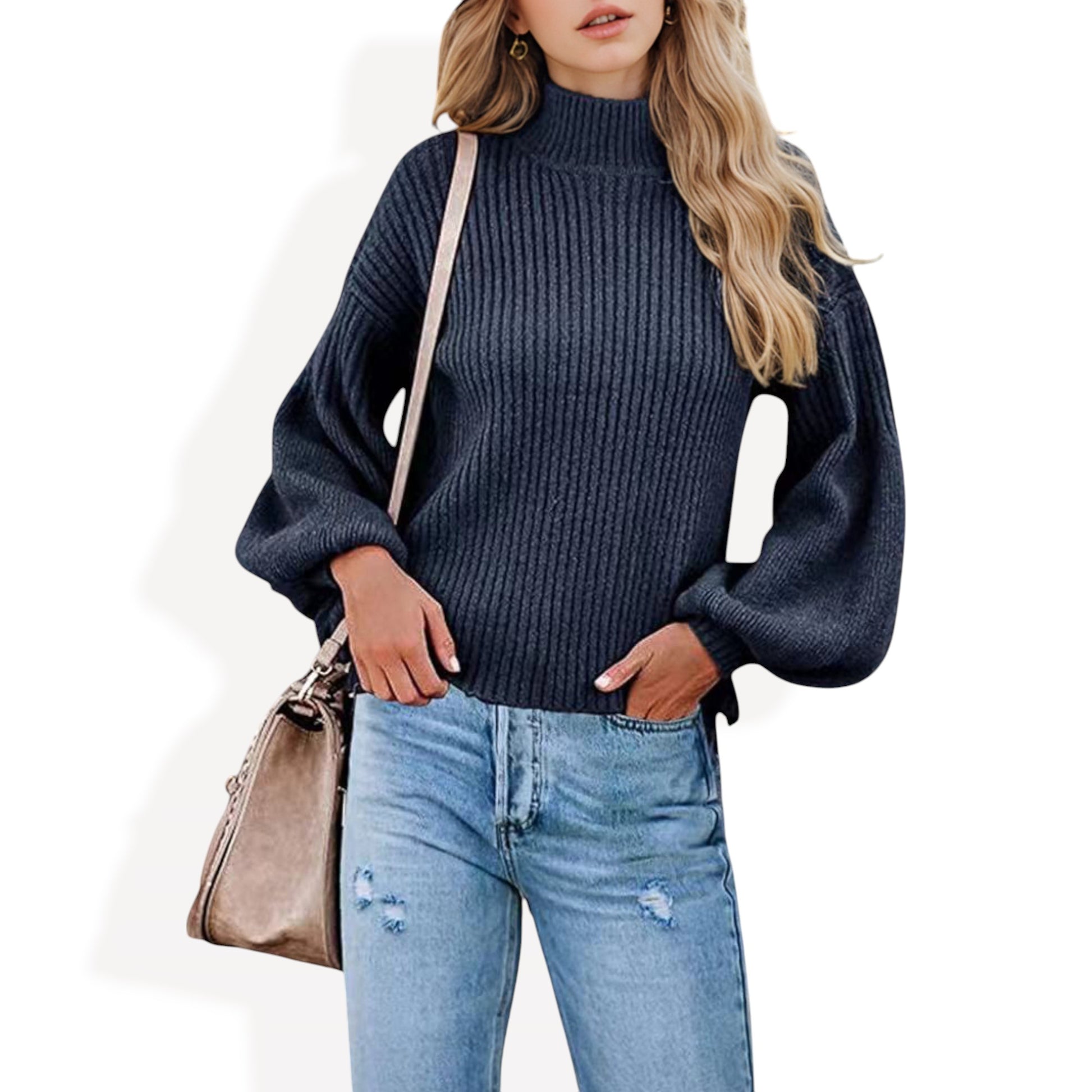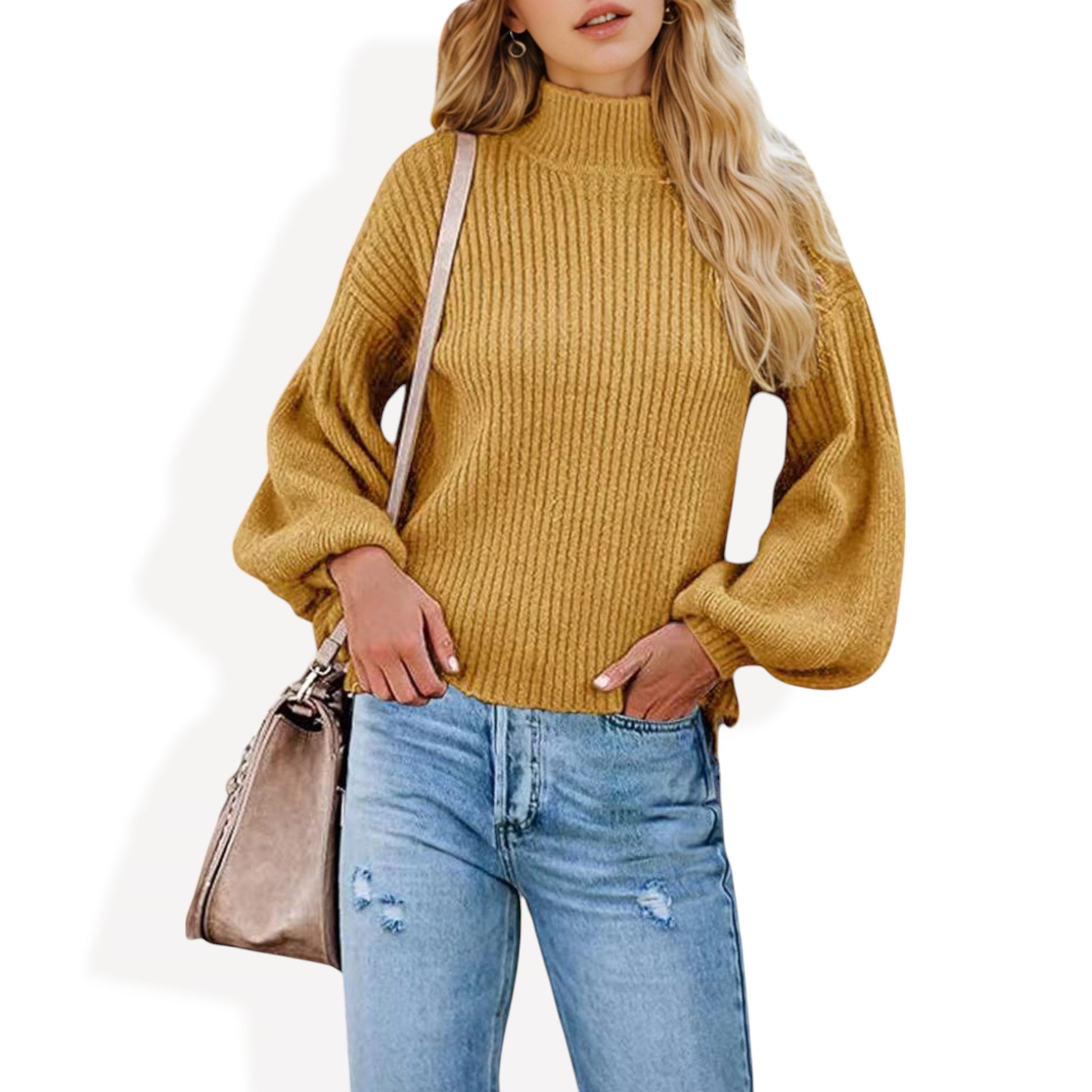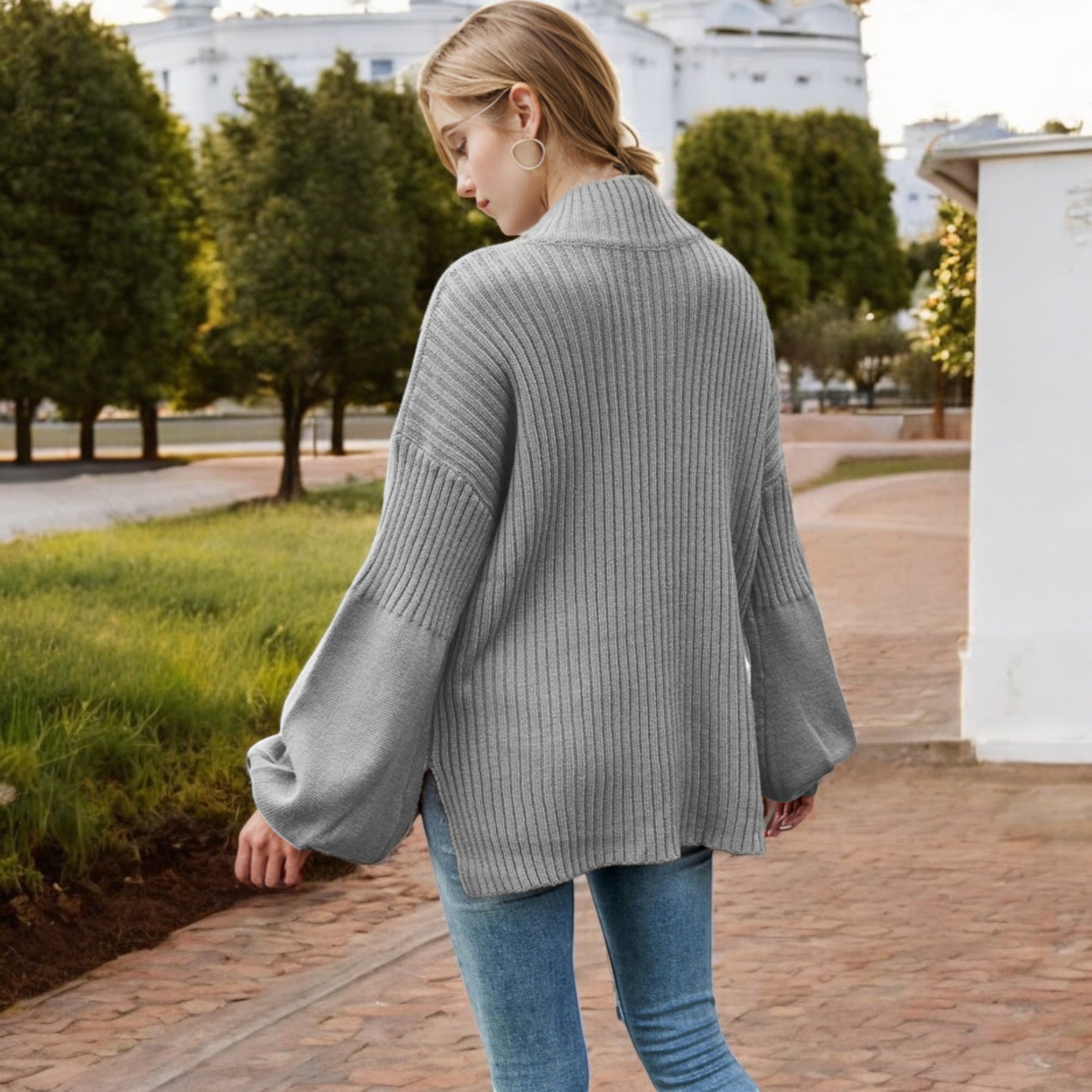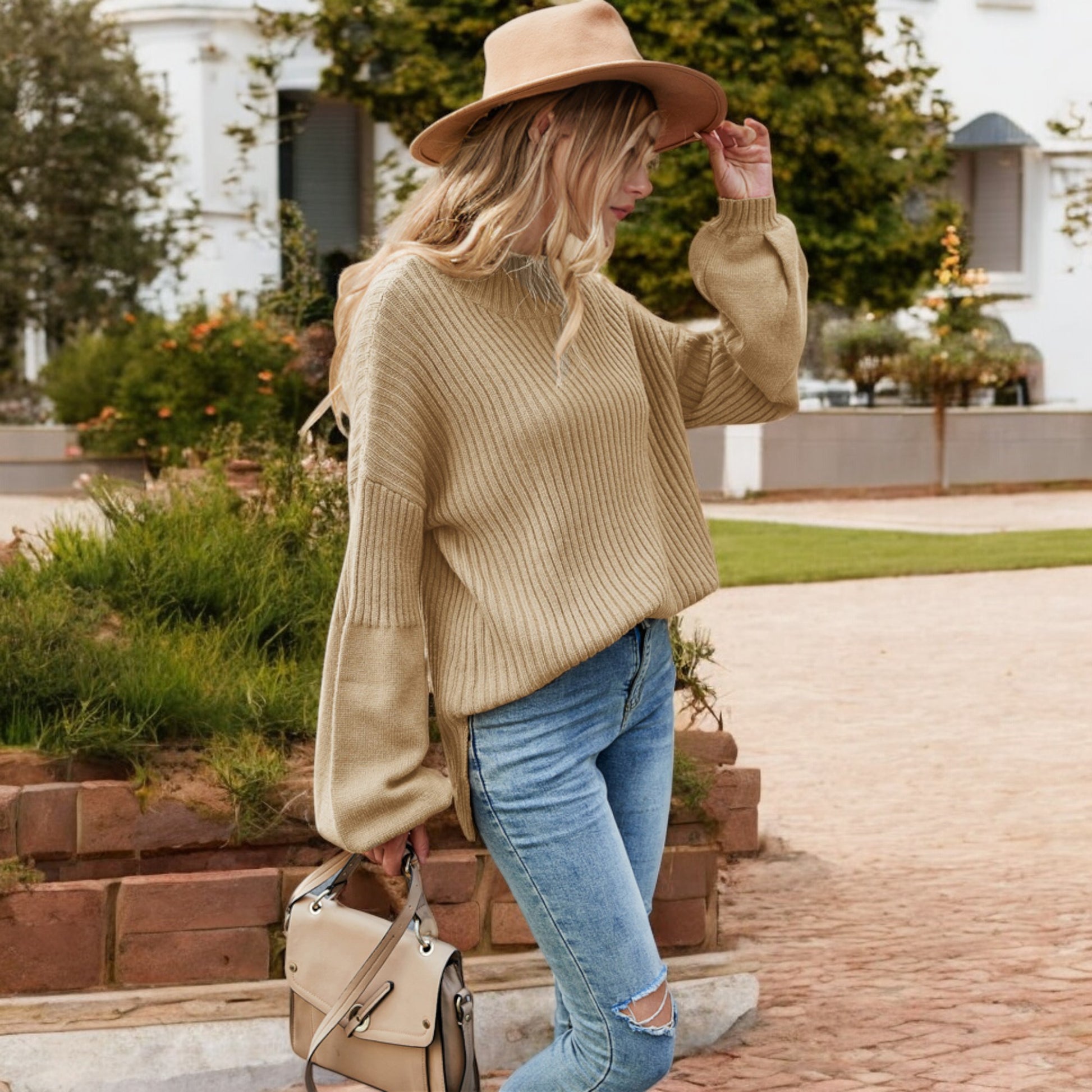 This cozy ribbed knit sweater features a relaxed drop shoulder design and a classic crew neckline for effortless style. The long sleeves are slightly puffed, adding a touch of sophistication to its casual charm. Made with soft, warm fabric, this sweater is perfect for layering or wearing on its own during cooler weather. Pair it with jeans or skirts for a versatile look that transitions seamlessly from day to night.
