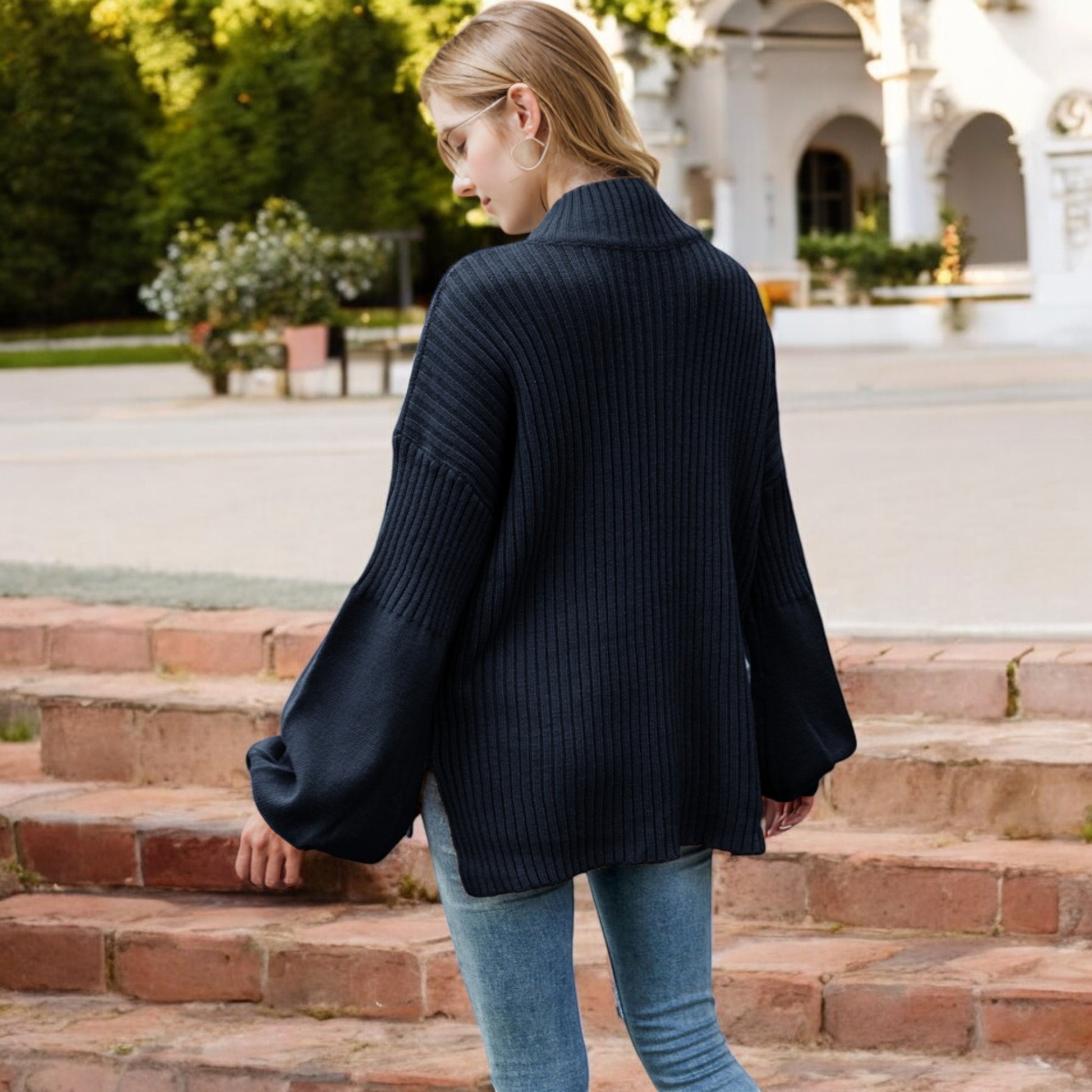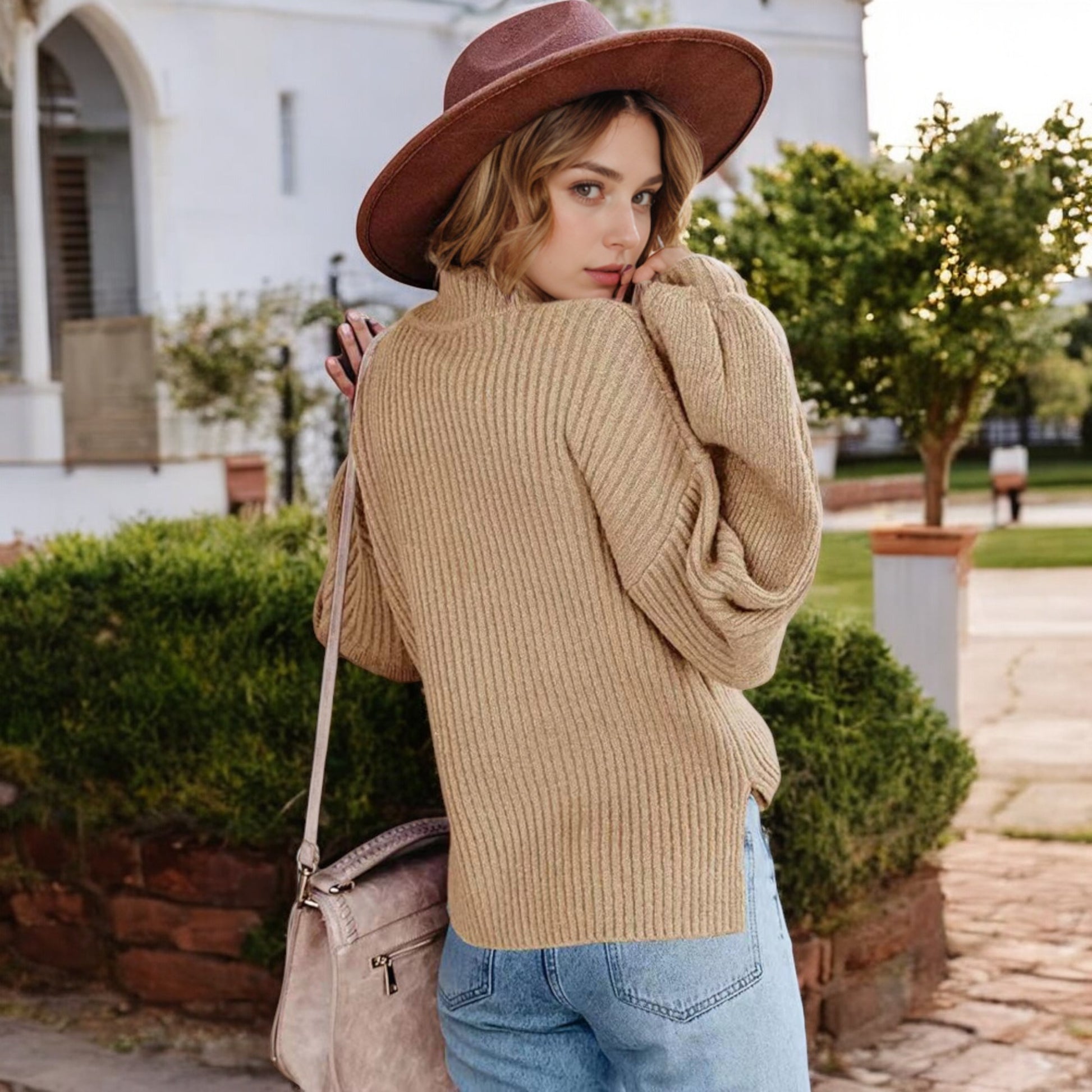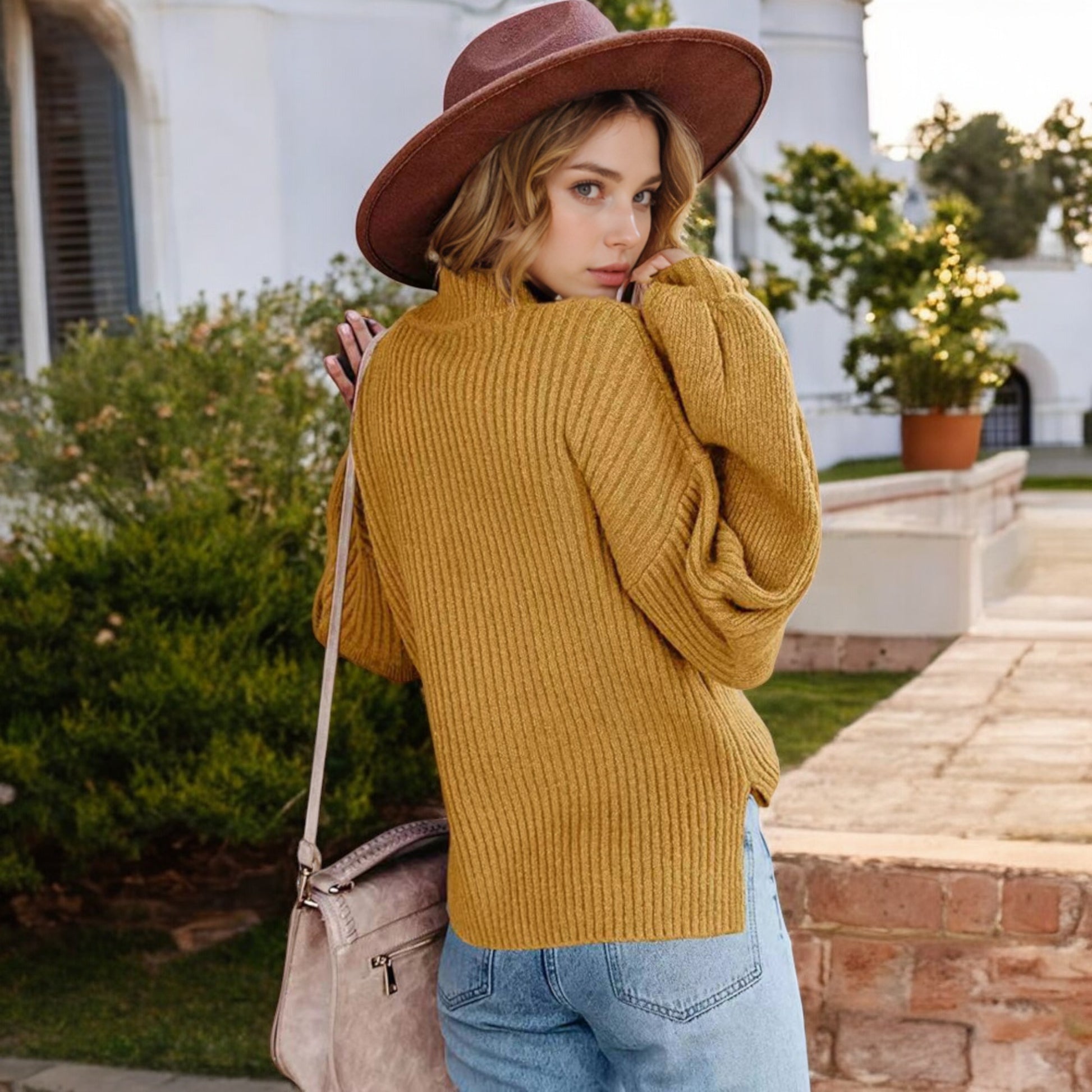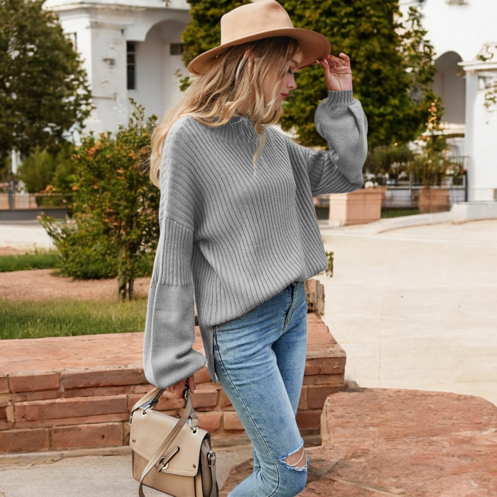 This cozy ribbed knit sweater features a relaxed drop shoulder design and a classic crew neckline for effortless style. The long sleeves are slightly puffed, adding a touch of sophistication to its casual charm. Made with soft, warm fabric, this sweater is perfect for layering or wearing on its own during cooler weather. Pair it with jeans or skirts for a versatile look that transitions seamlessly from day to night.