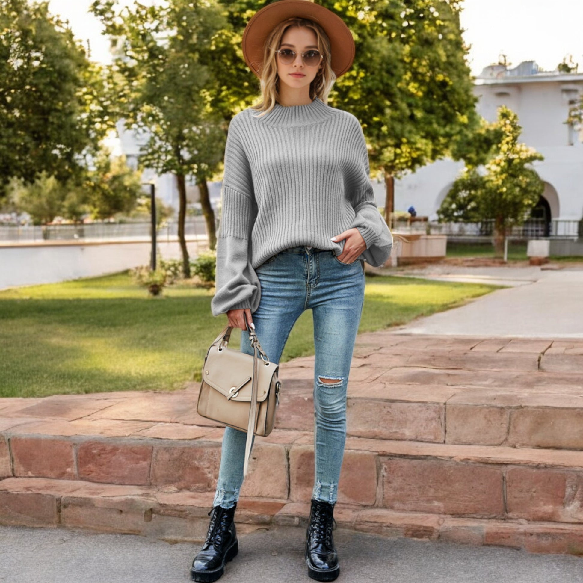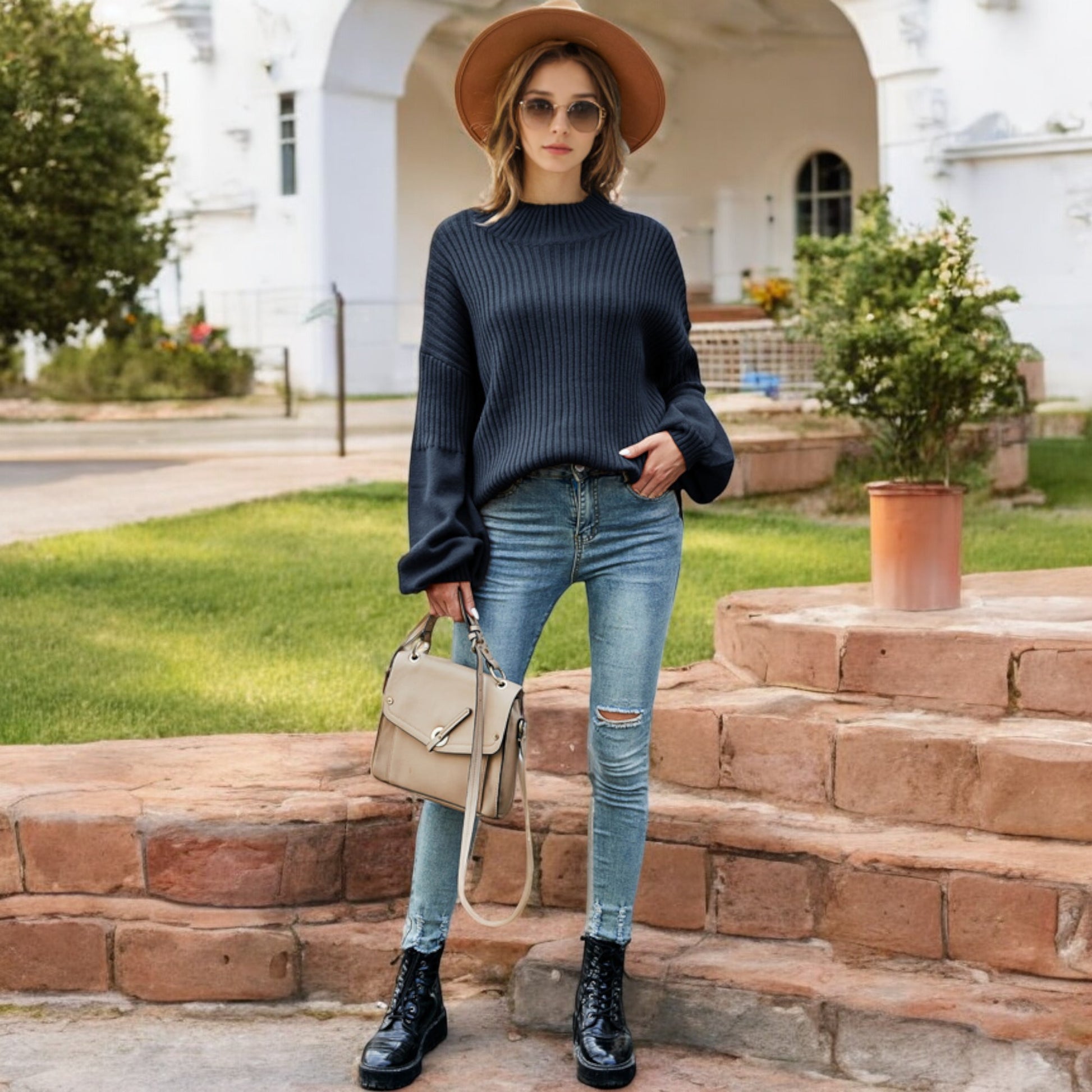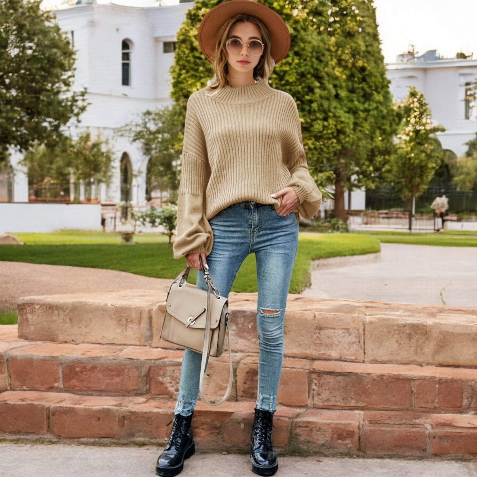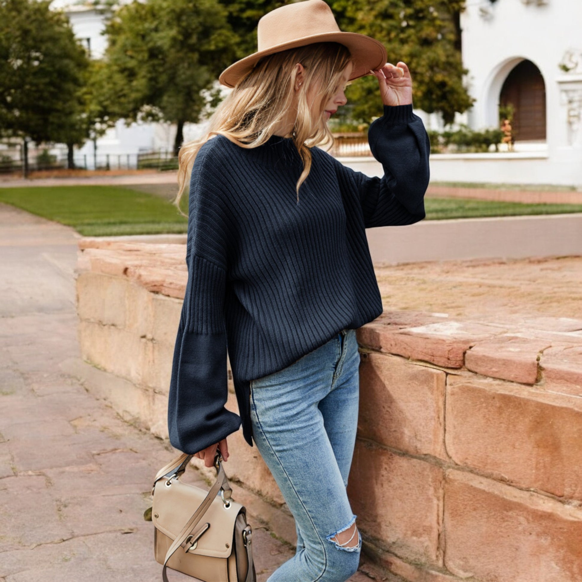 This cozy ribbed knit sweater features a relaxed drop shoulder design and a classic crew neckline for effortless style. The long sleeves are slightly puffed, adding a touch of sophistication to its casual charm. Made with soft, warm fabric, this sweater is perfect for layering or wearing on its own during cooler weather. Pair it with jeans or skirts for a versatile look that transitions seamlessly from day to night.