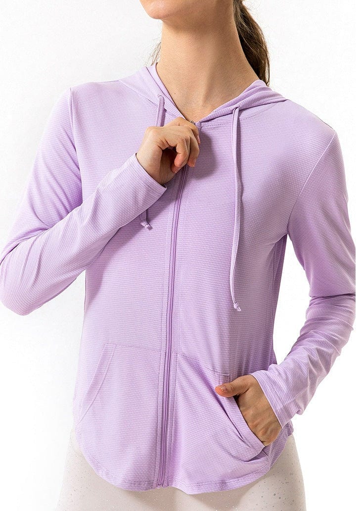Breathable Active Drawstring Zip-Up Hoodie Jacket