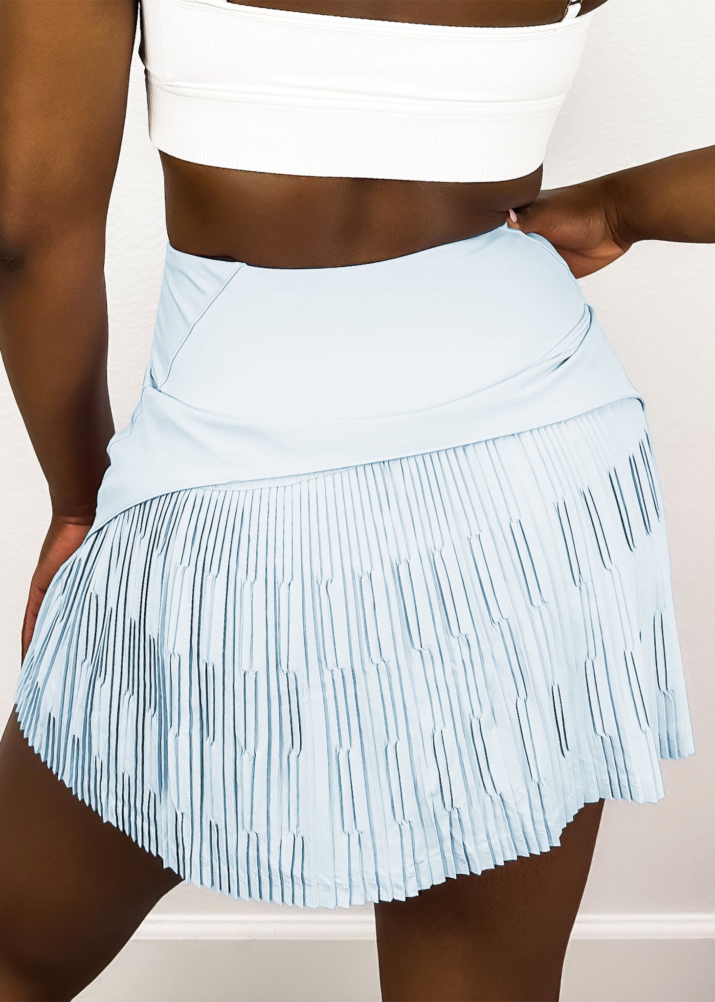 The Anna-Kaci tennis skirt details a mid rise fit with a thick and comfortable waistband. Features inner linings with pockets and a mini ruffles on the back of the skirt. Pair this either with your favorite sports bra for a fun tennis match or a sweater for a cute street fit.