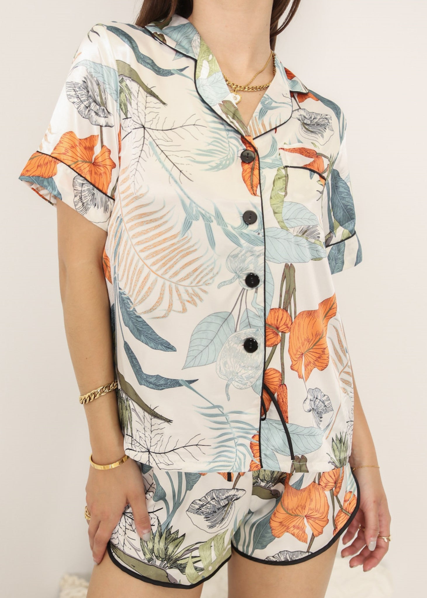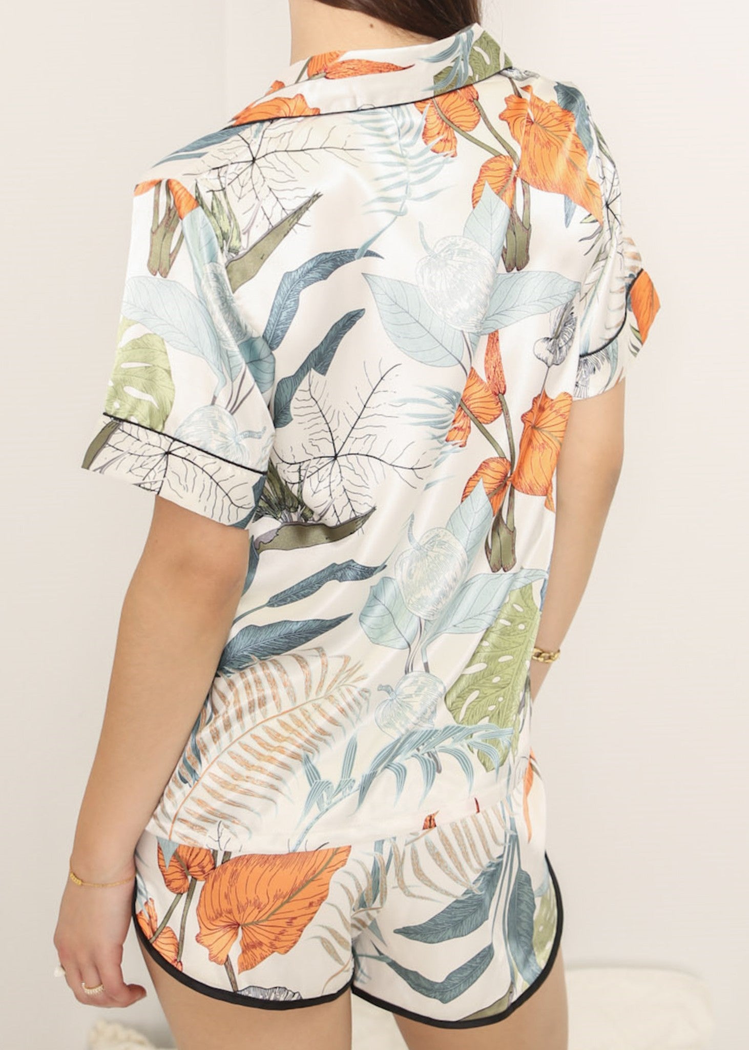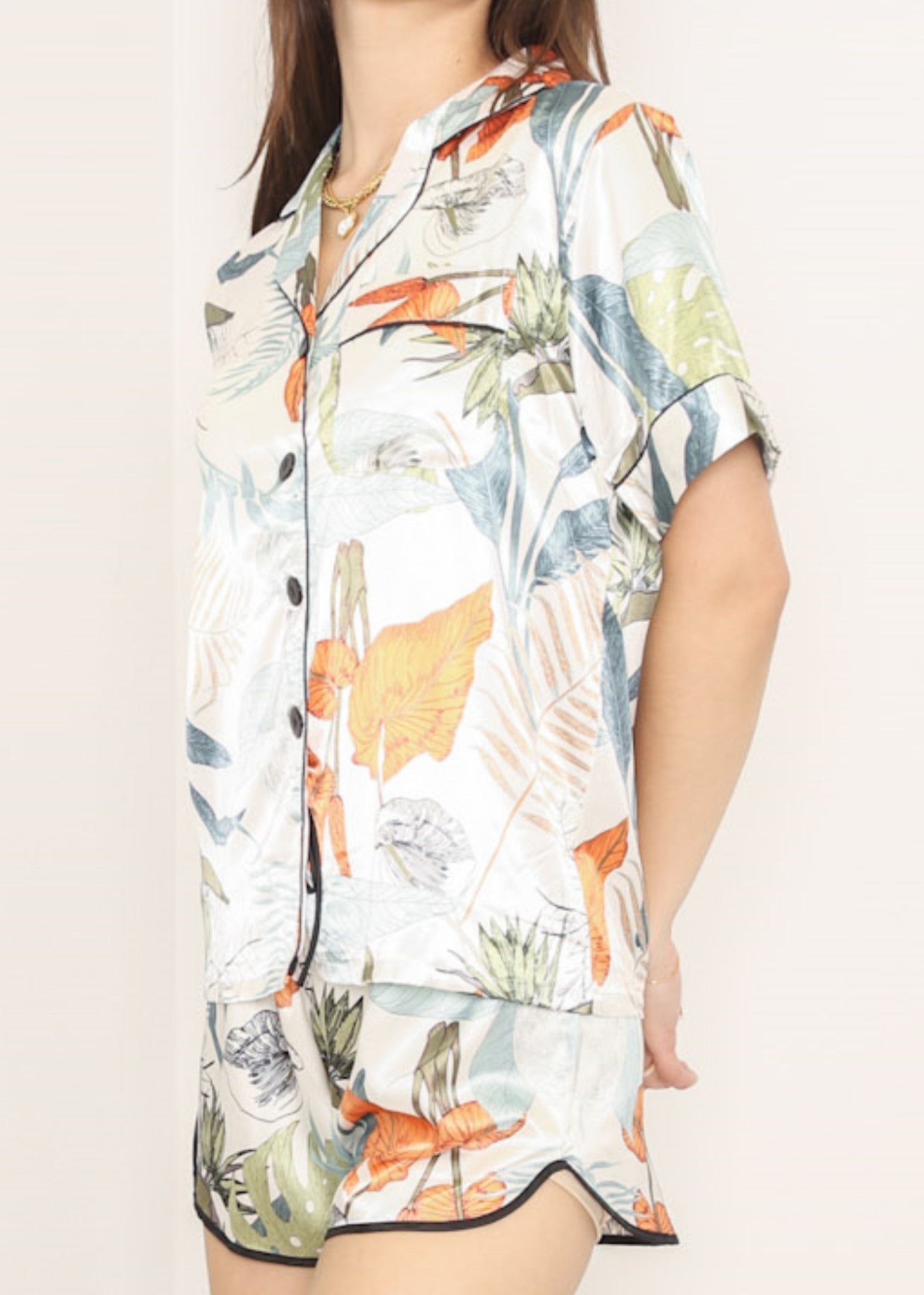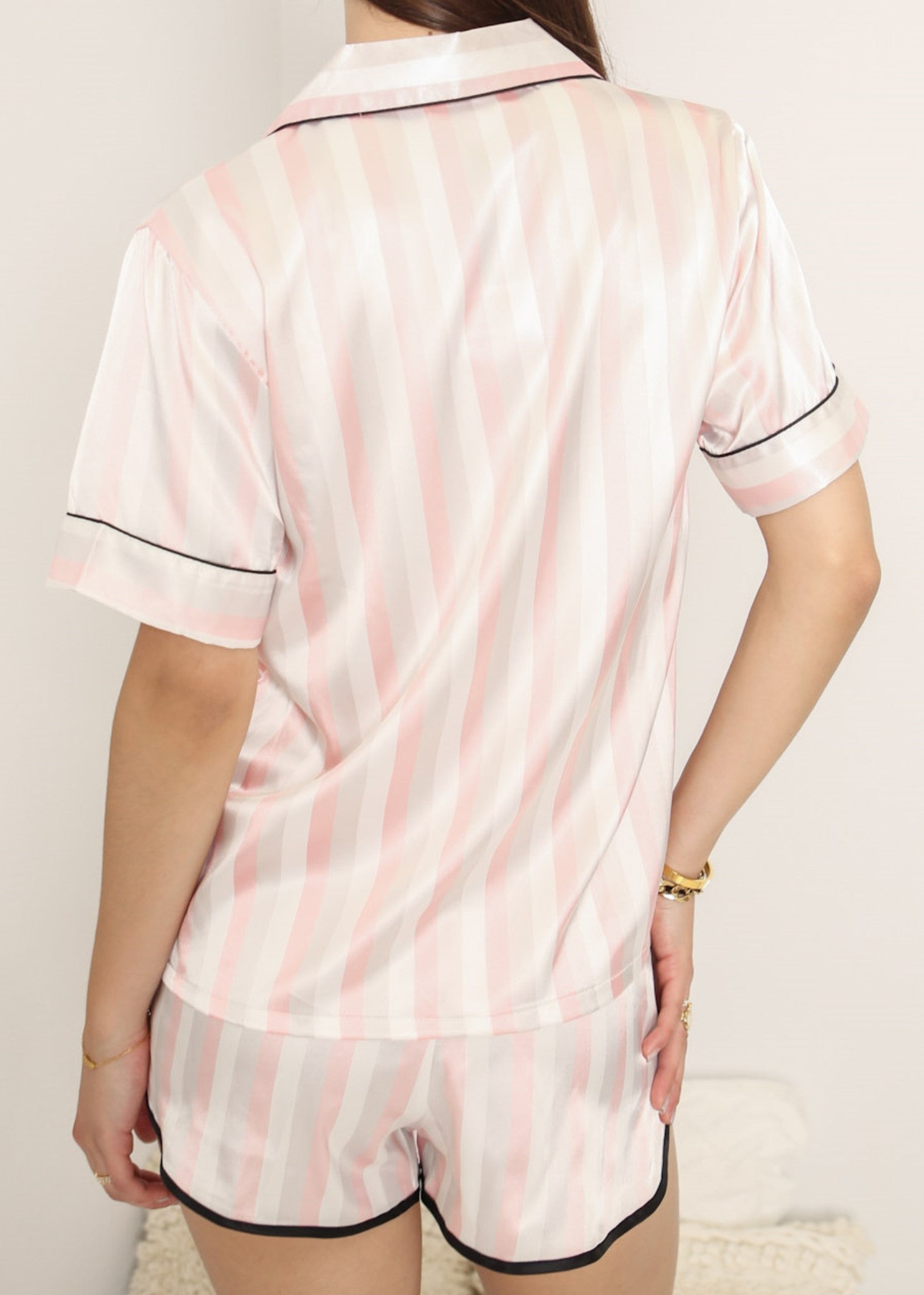 Anna-Kaci Lounge Women's Polka Dot Satin Pajama Set with Short Sleeve Button Top and Drawstring Shorts