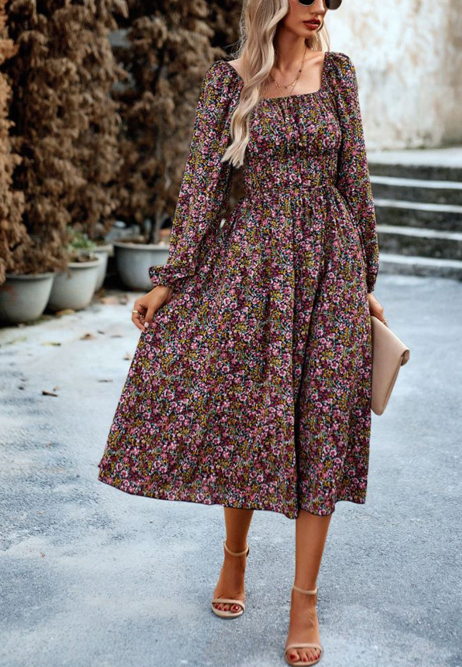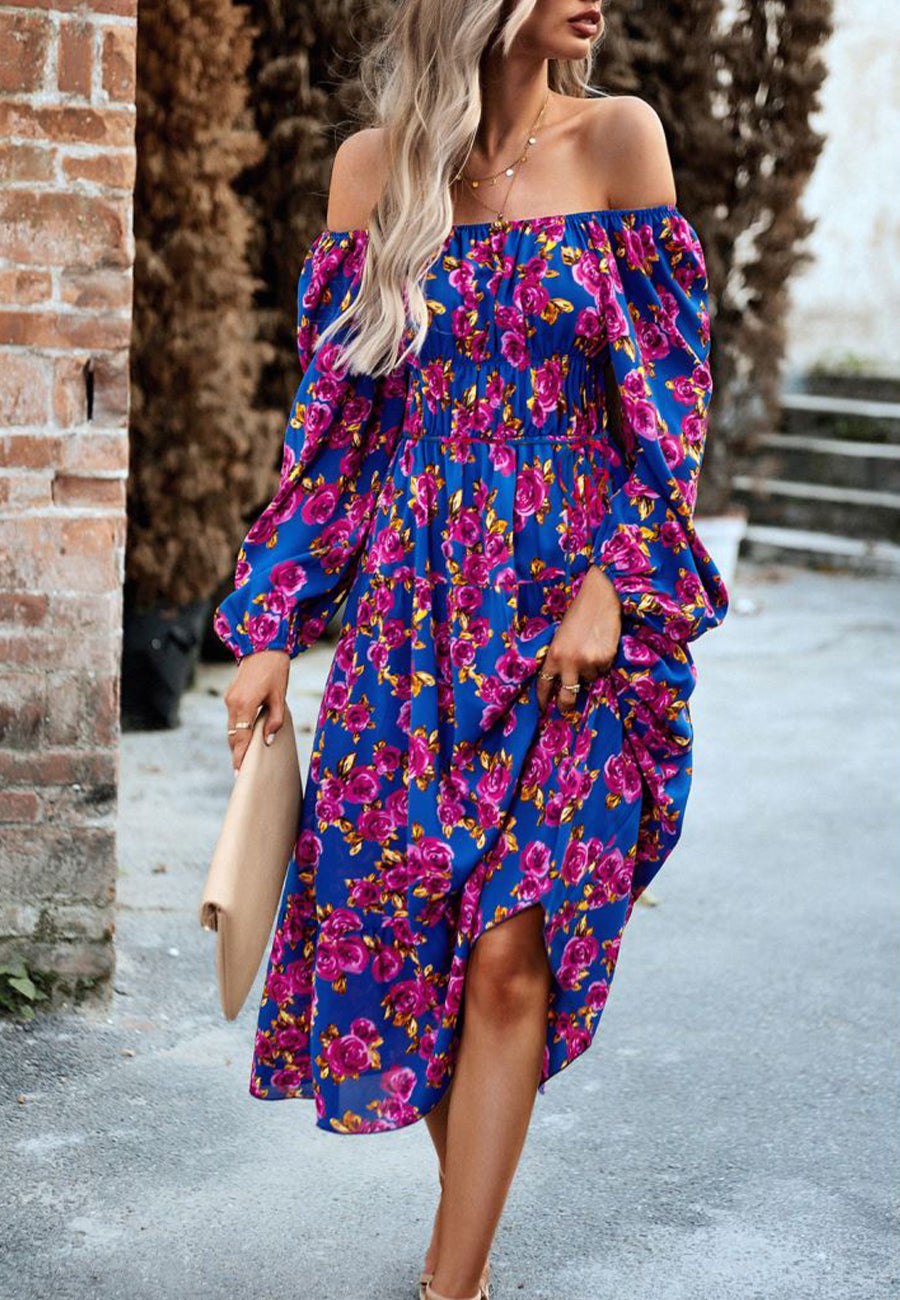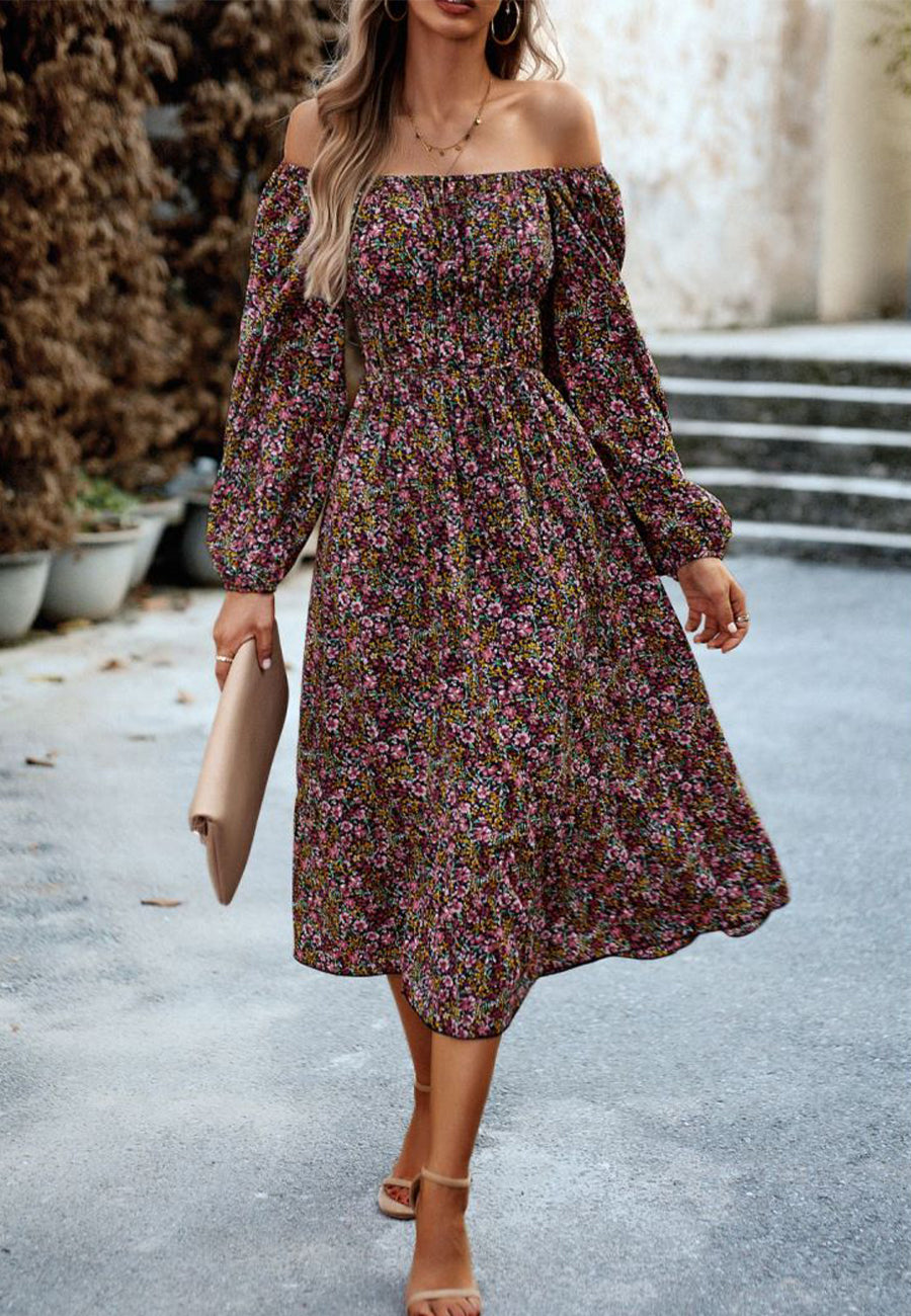 The Anna-Kaci dress is detailed with a flirty off-shoulder. Features a floral print, long sleeves, side pockets, flowy skirt, and mid-calf length. Pair it with a headband and sandals for a cute look.