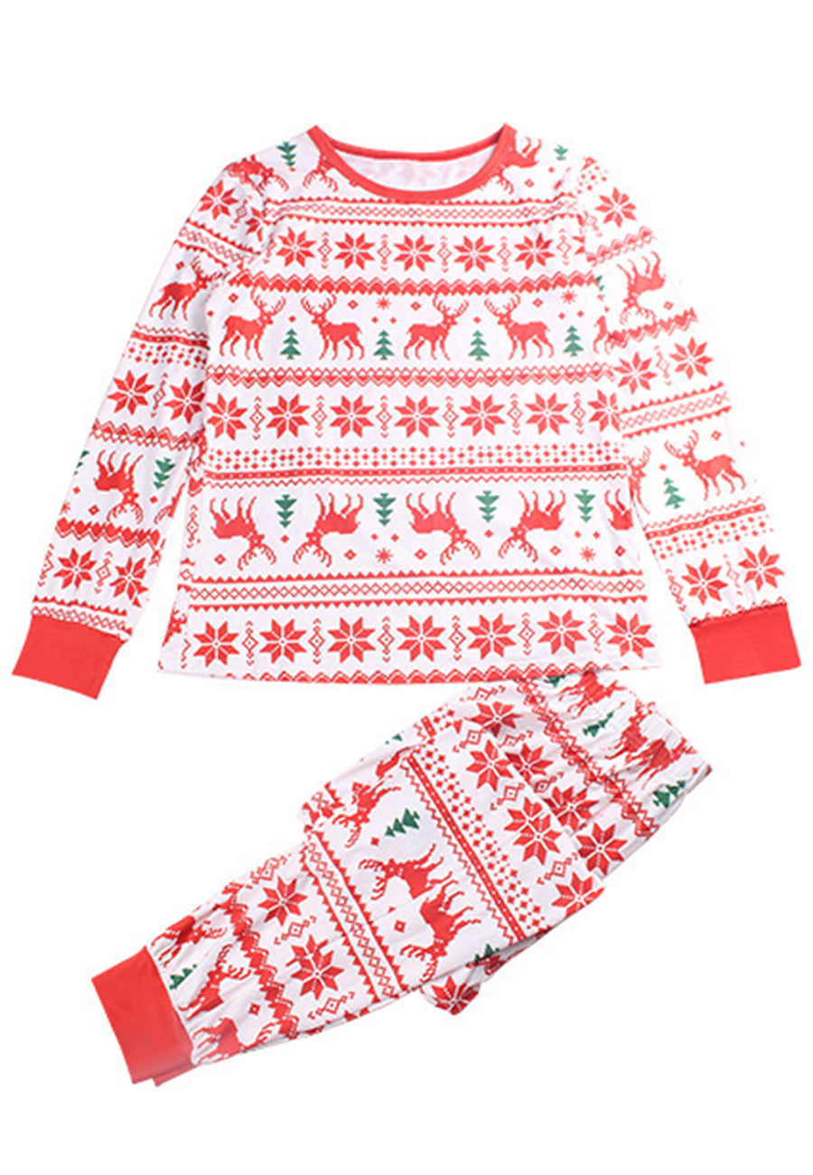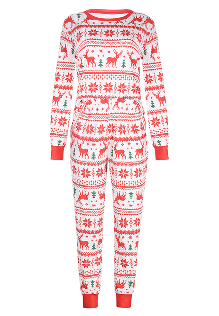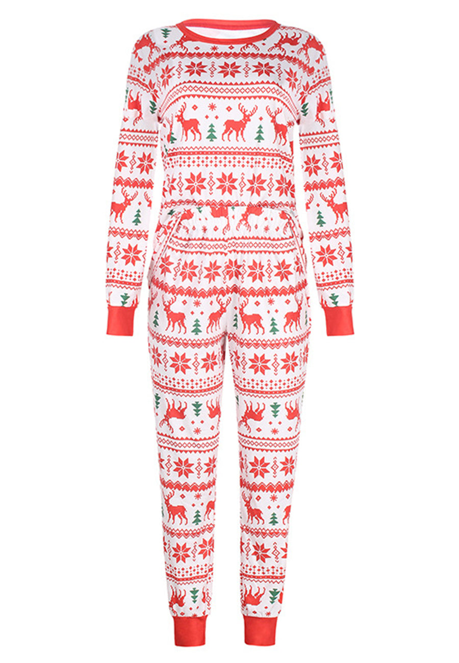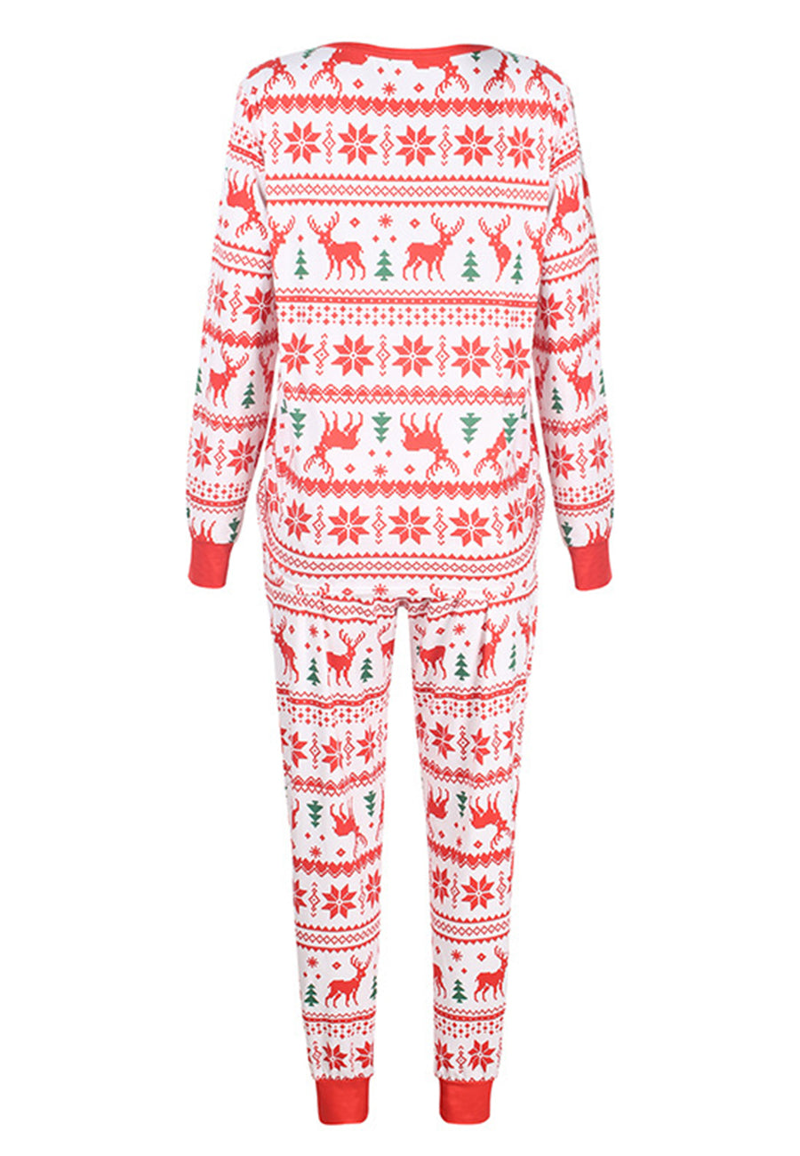The pajama set is detailed with cute multi-patterns. Features a round neck line, long sleeves shirt and matching high waist pajama pants.