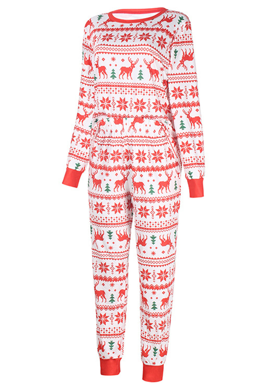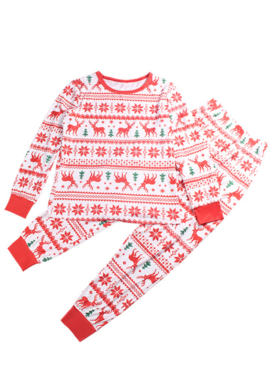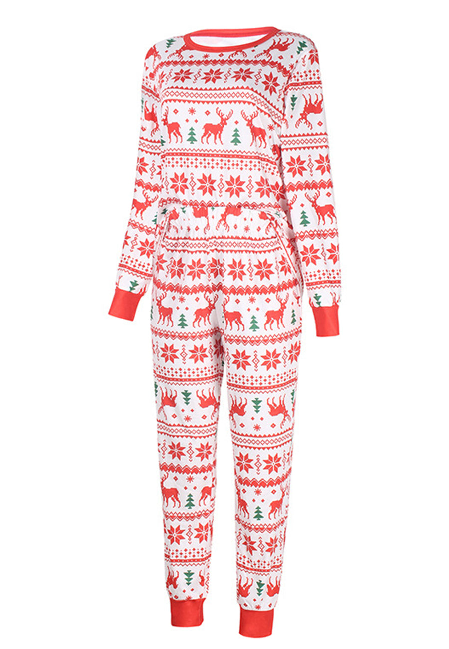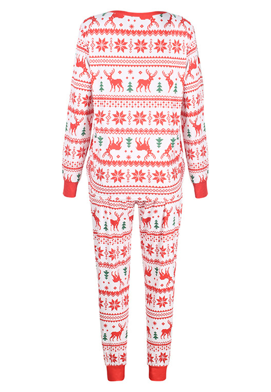 The pajama set is detailed with cute multi-patterns. Features a round neck line, long sleeves shirt and matching high waist pajama pants.
