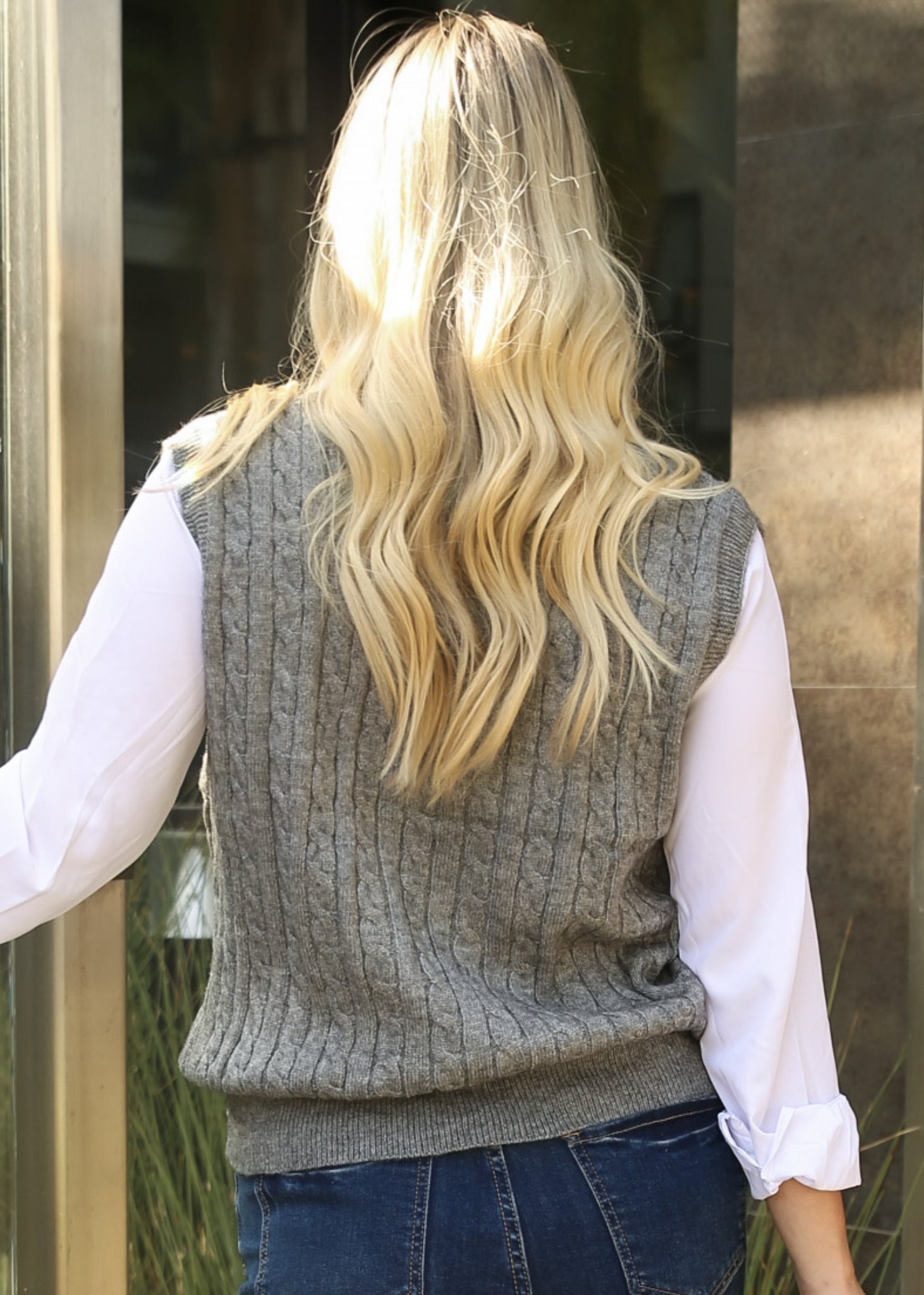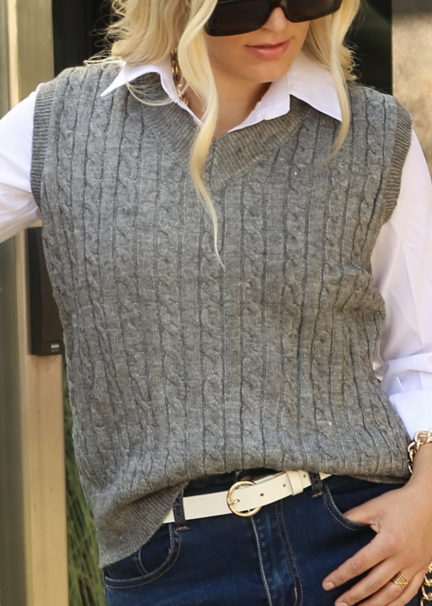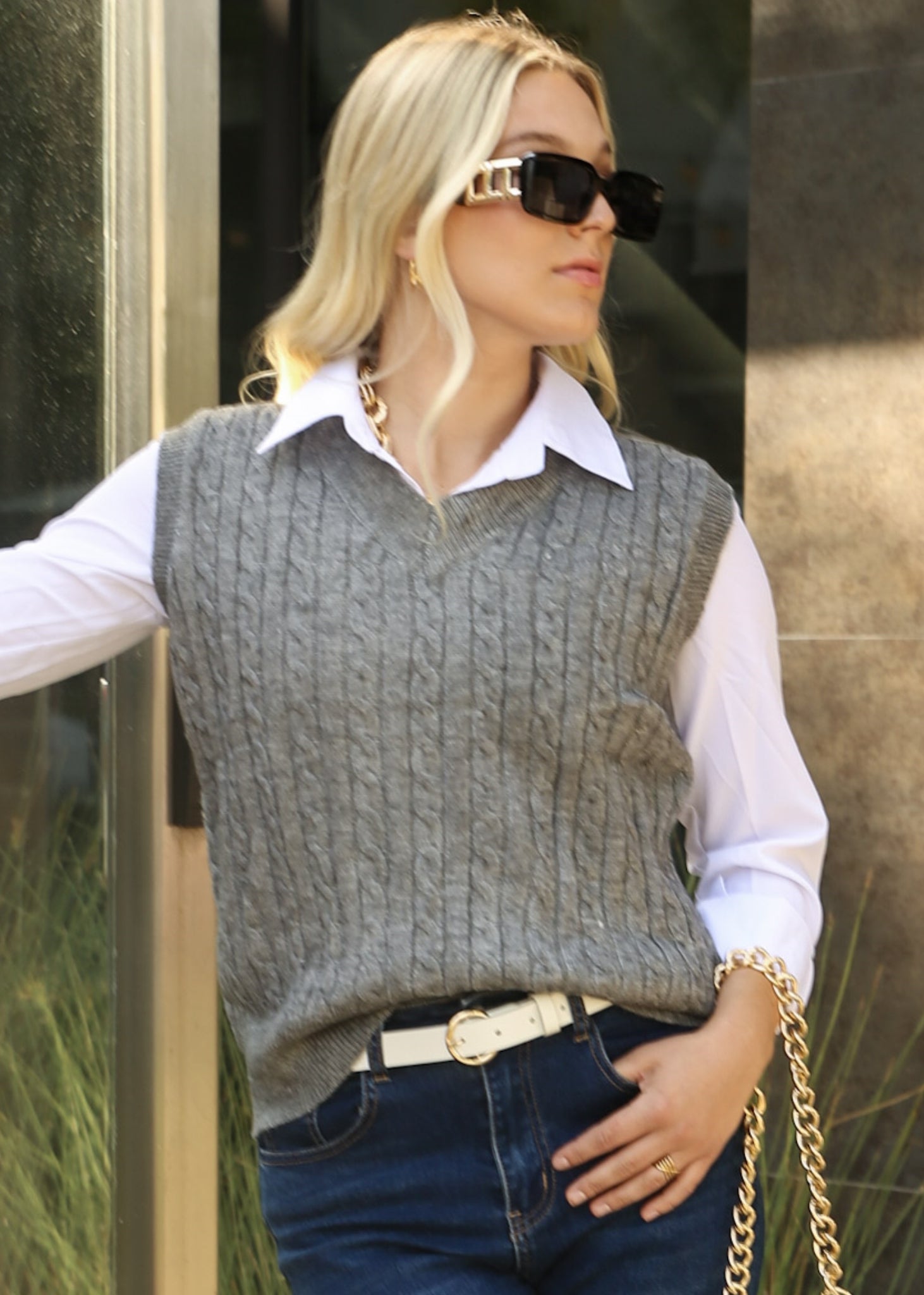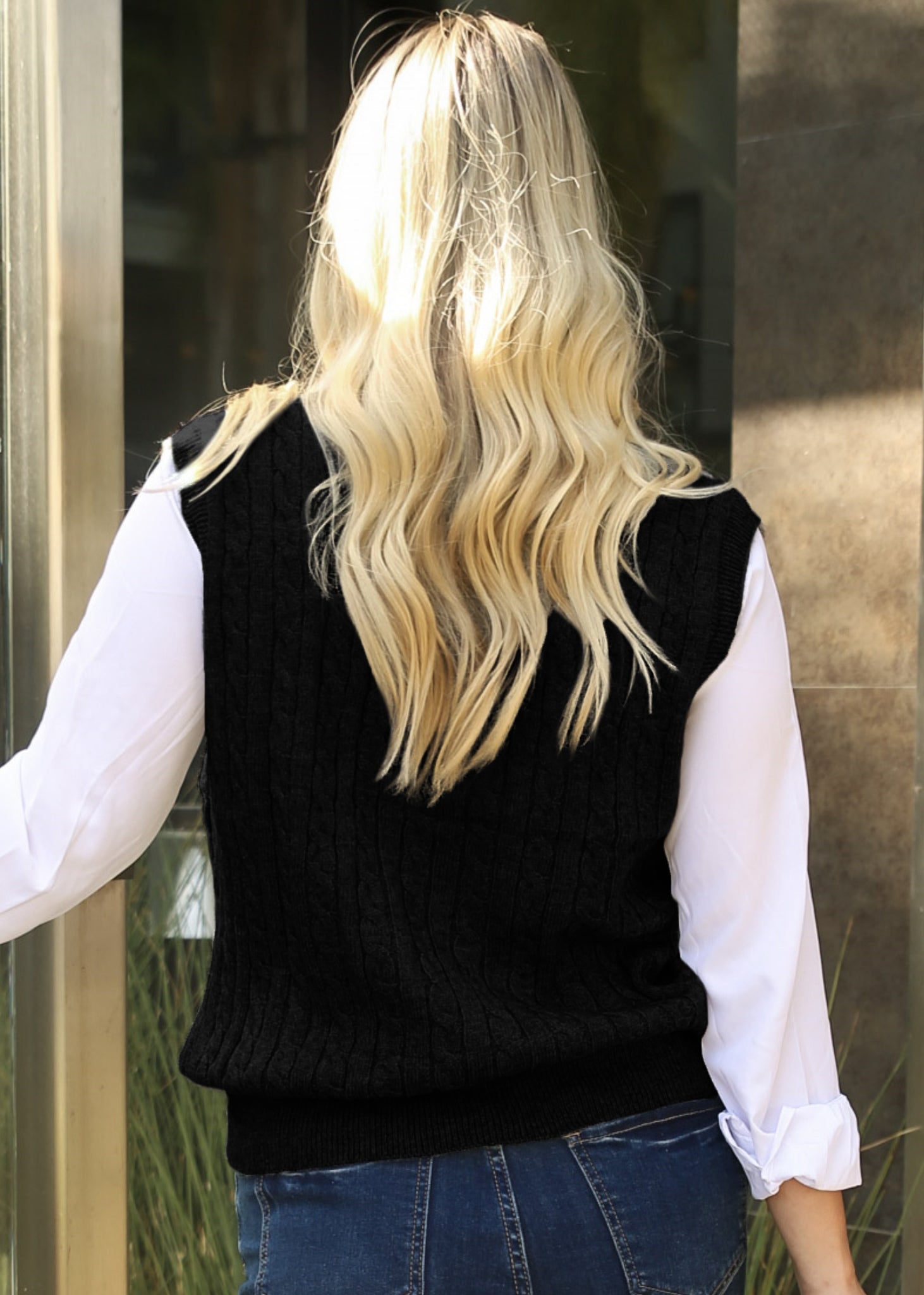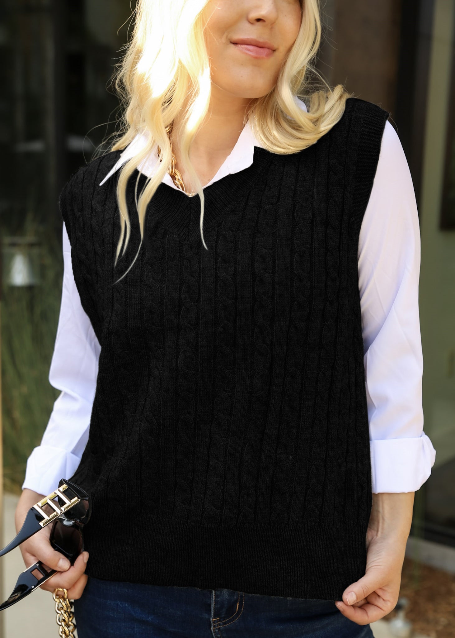 The sweatervest is detailed with a fancy cable knit pattern. Features solid color, v neck line, sleeveless, and regular fit. Layer it over a shirt and jeans for a laidback look.